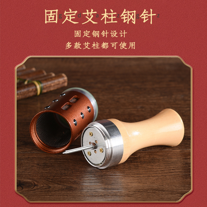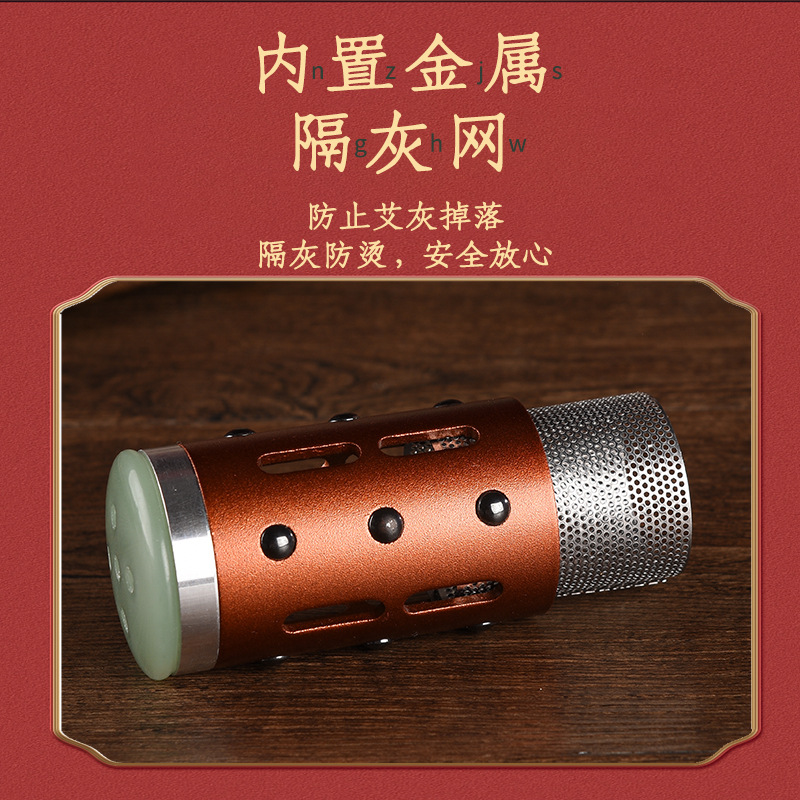 玉石艾灸棒滚轮手持按摩温灸器雷火棒美容院脸部面部随身灸温灸棒