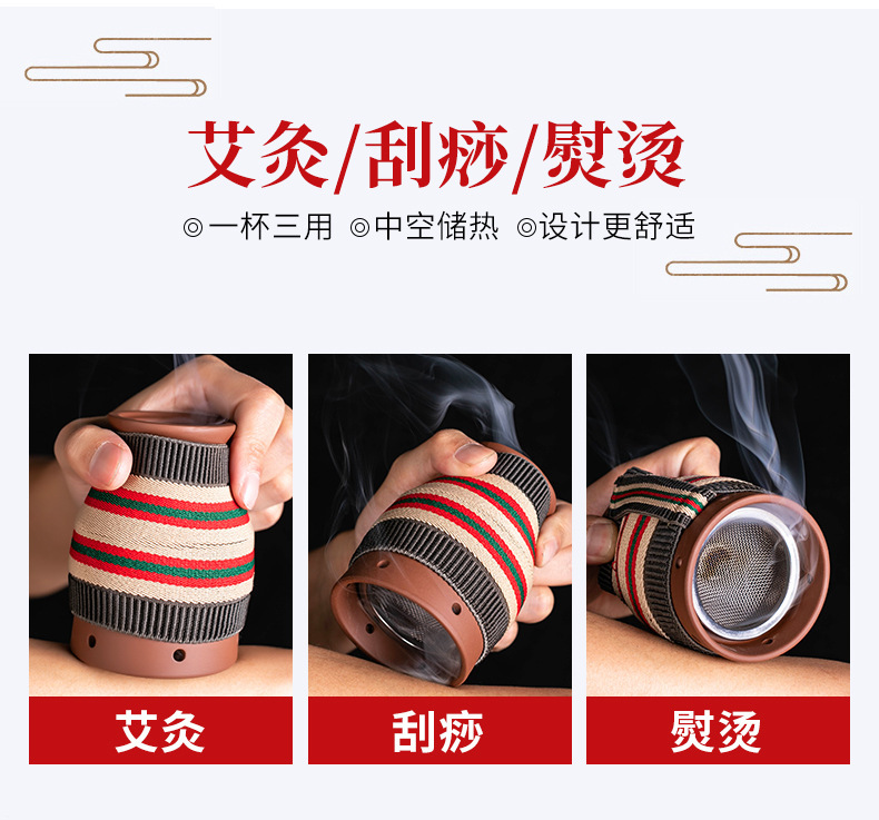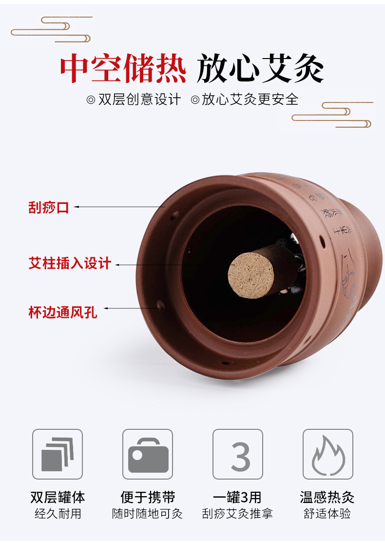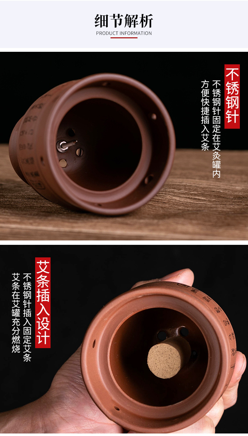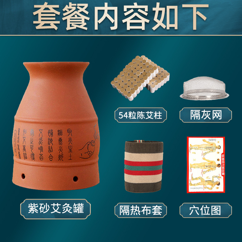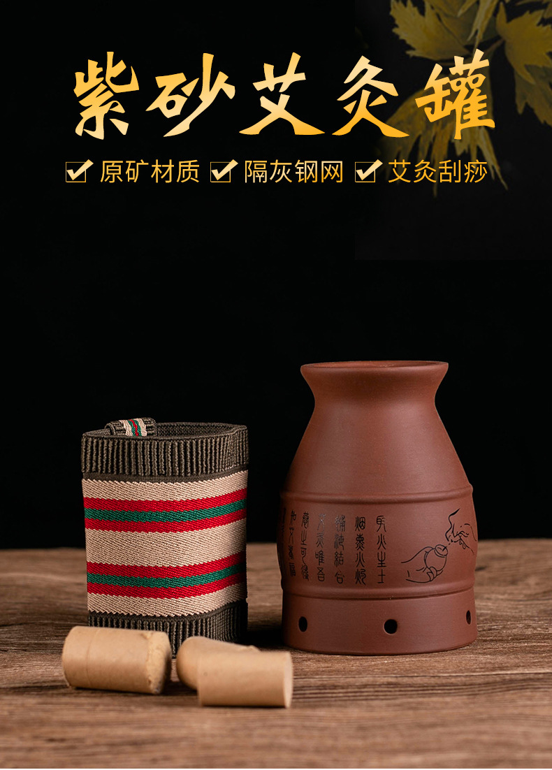艾灸罐批发 陶瓷盒随身灸家用多功能艾灸刮痧罐 紫砂杯全身艾灸盒