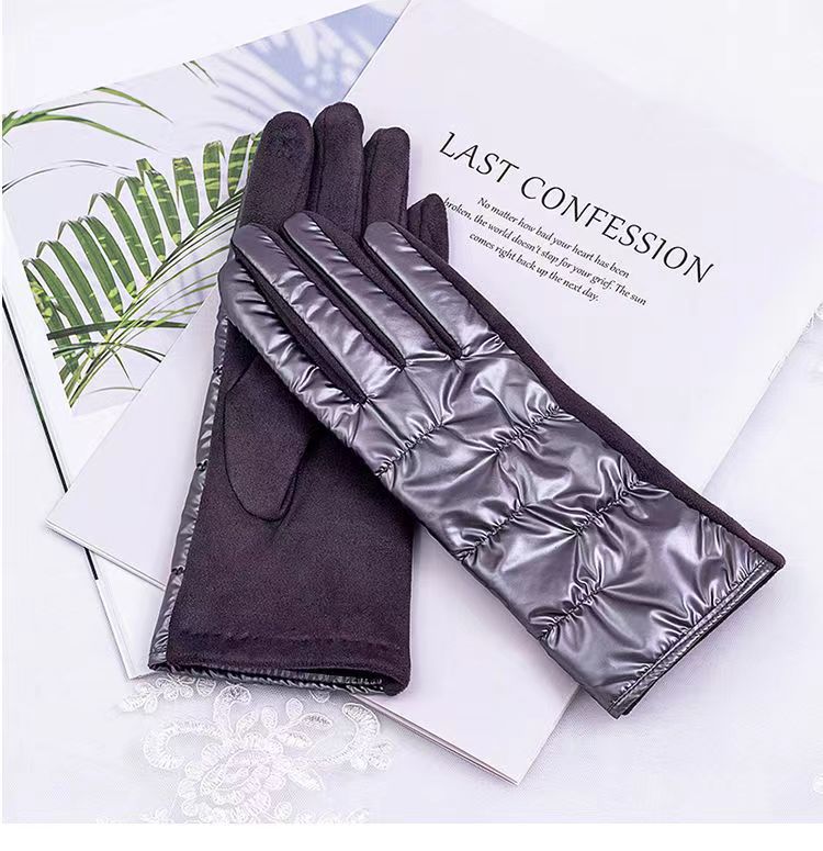 外贸跨境免洗羽绒棉布骑行保暖加绒防寒刺绣秋冬季韩版触屏手套
