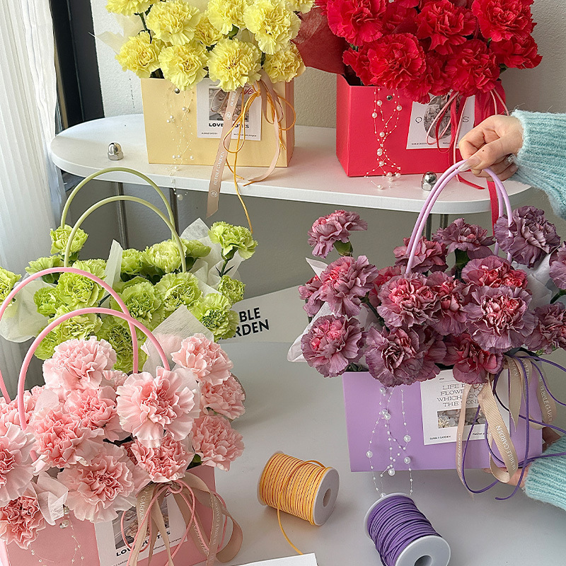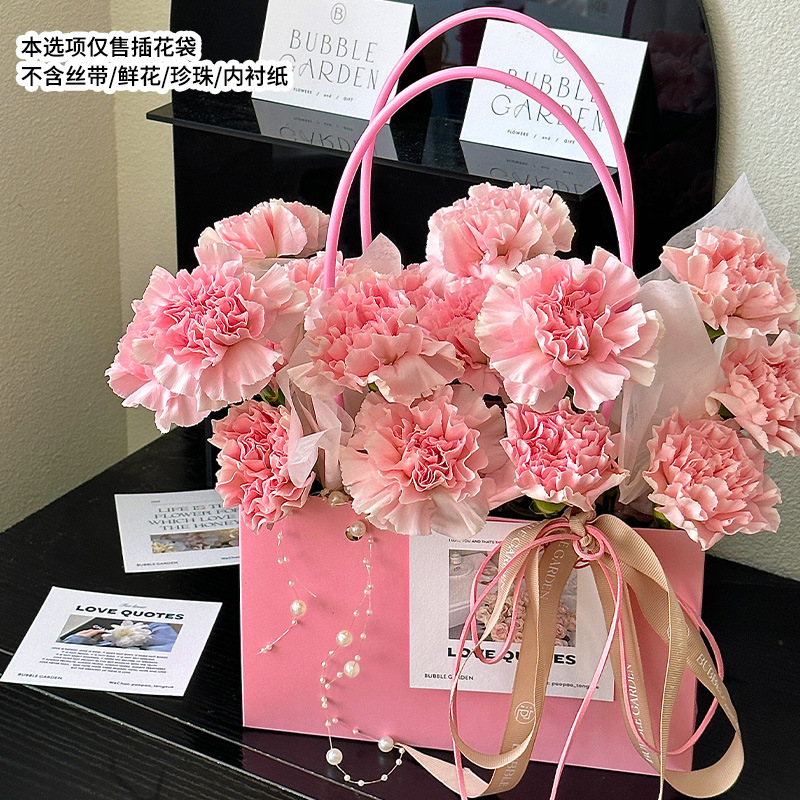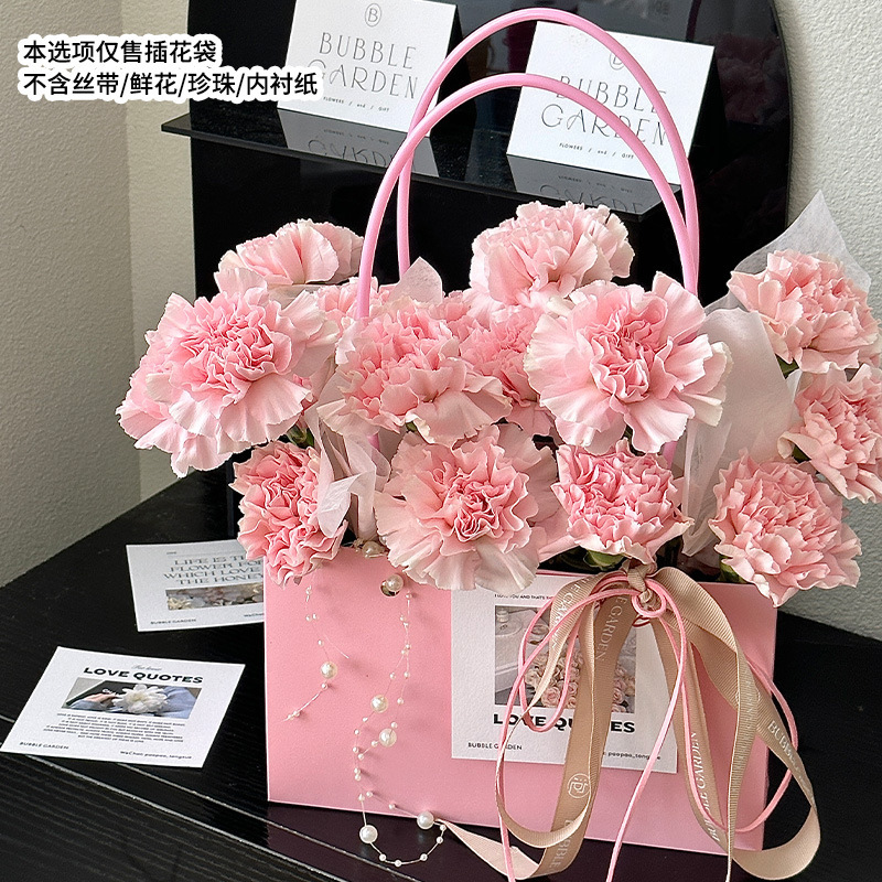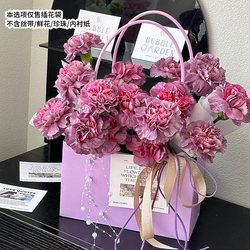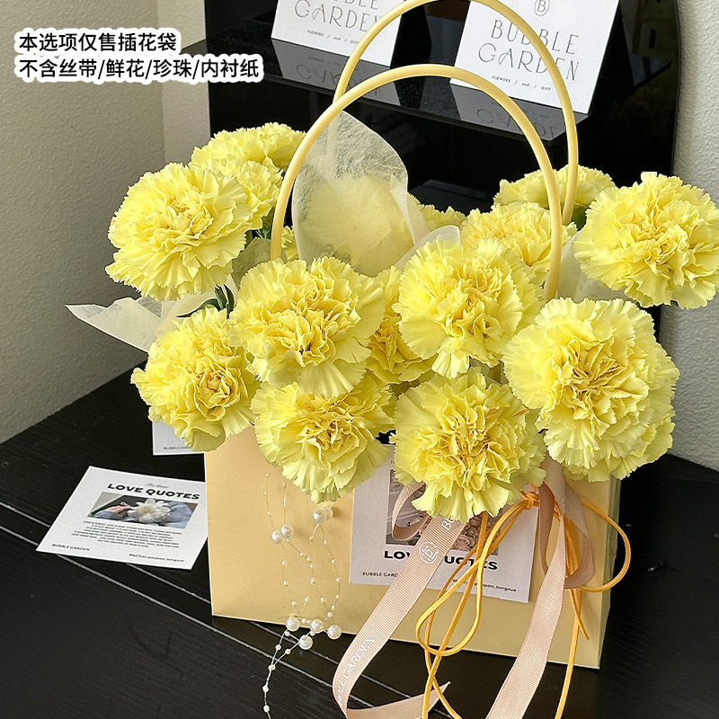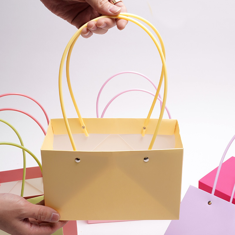 牛皮纸花束装饰防水包装纸袋插花手提袋批发鲜花包装马卡龙纸袋