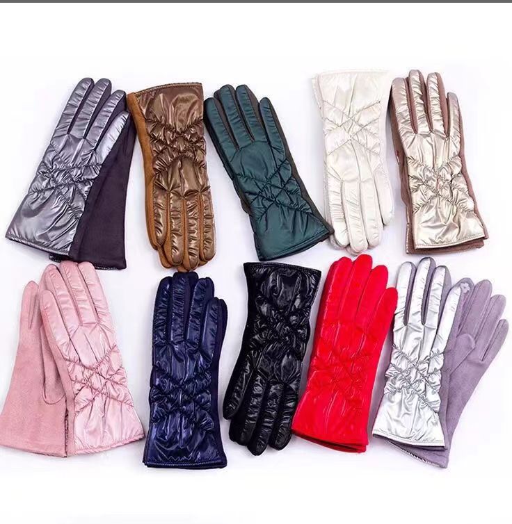 外贸批发韩版秋冬季女士免洗羽绒棉亮色防风保暖麂皮绒触屏手套