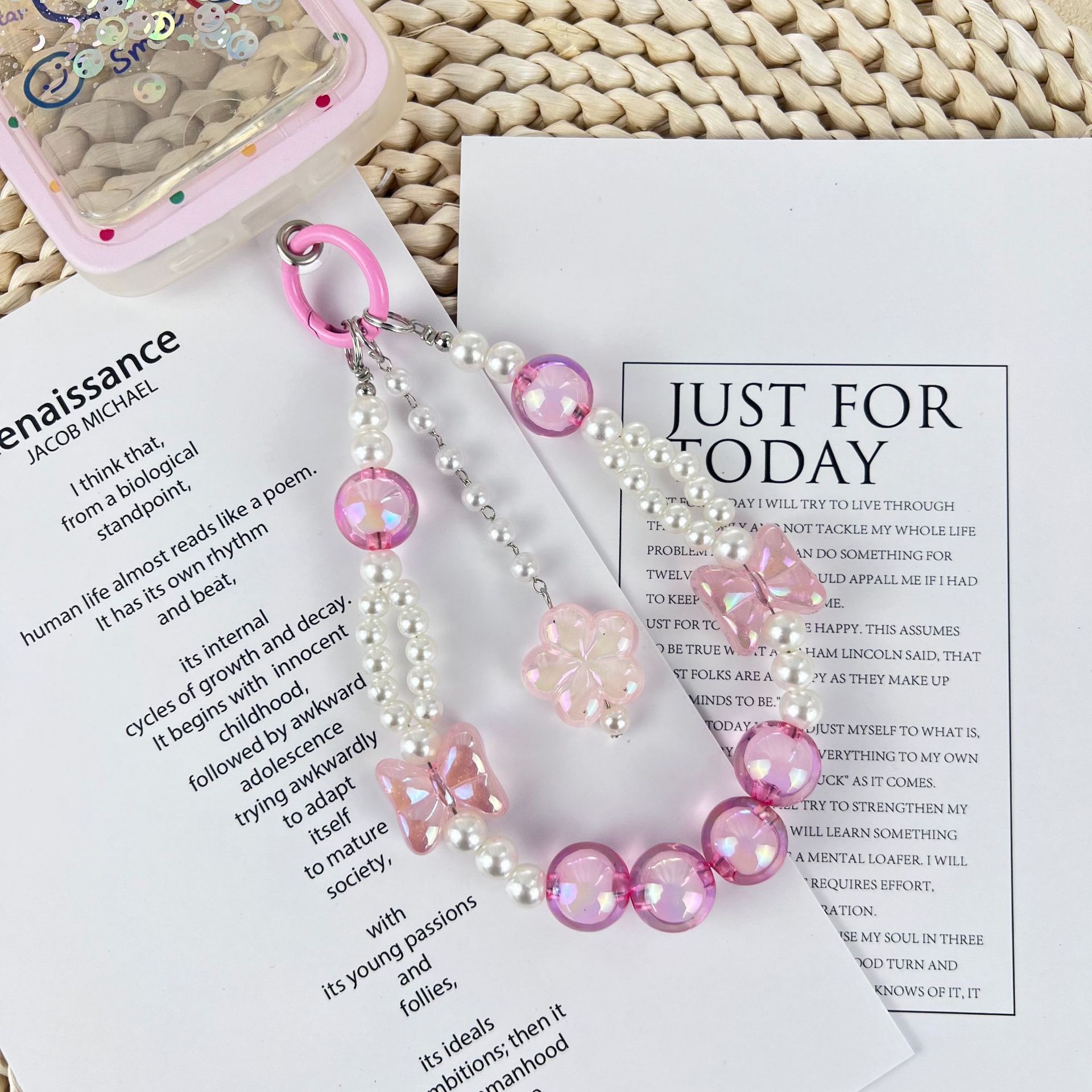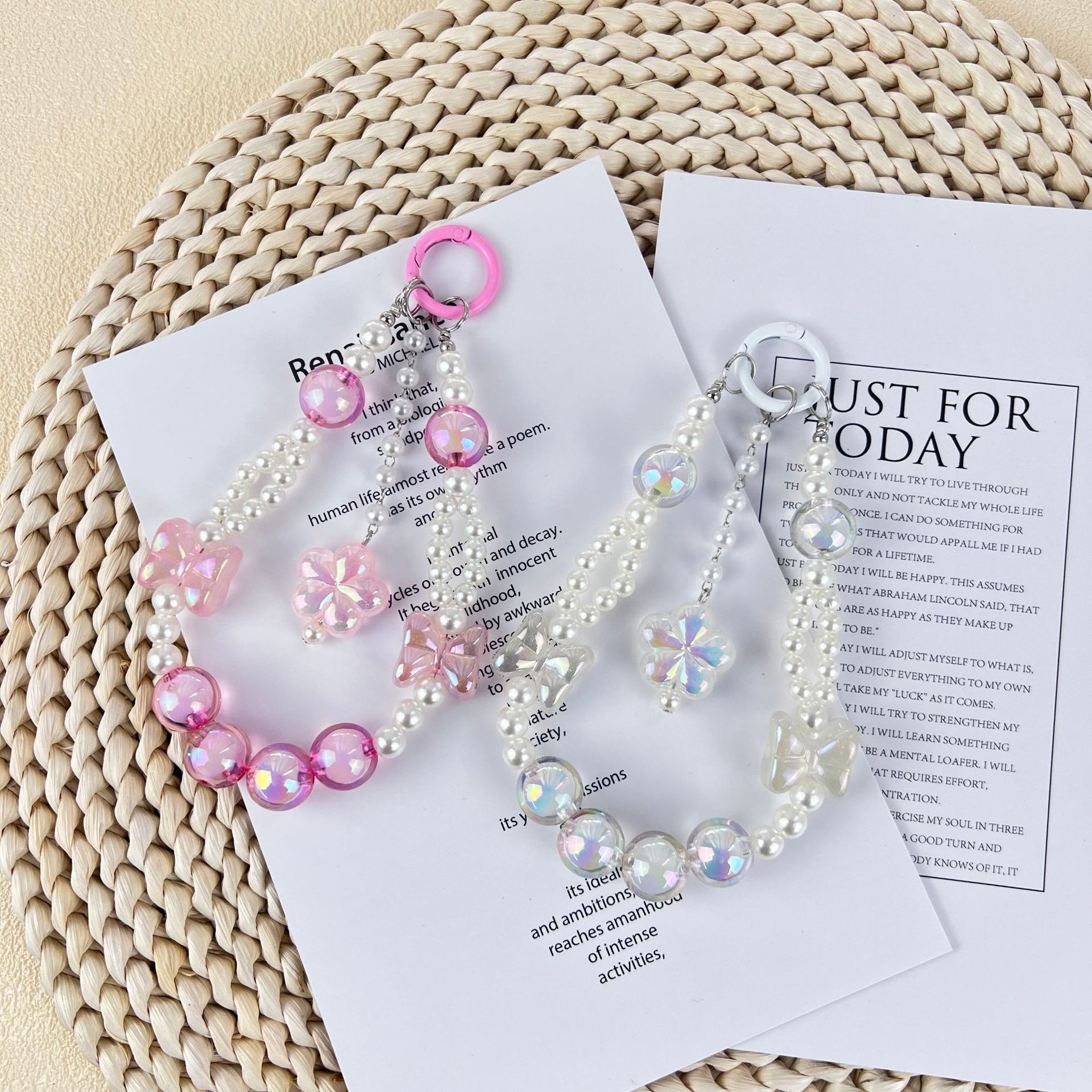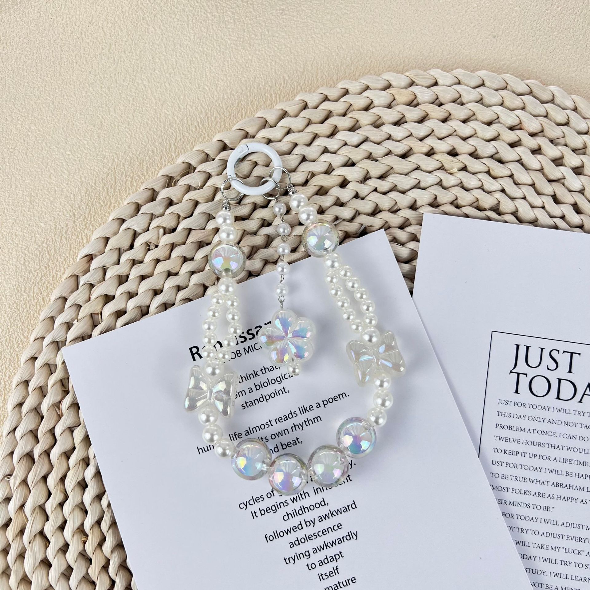 新款珍珠汽车钥匙扣挂件可爱卡通小花配件耳机套包装饰时尚手机链