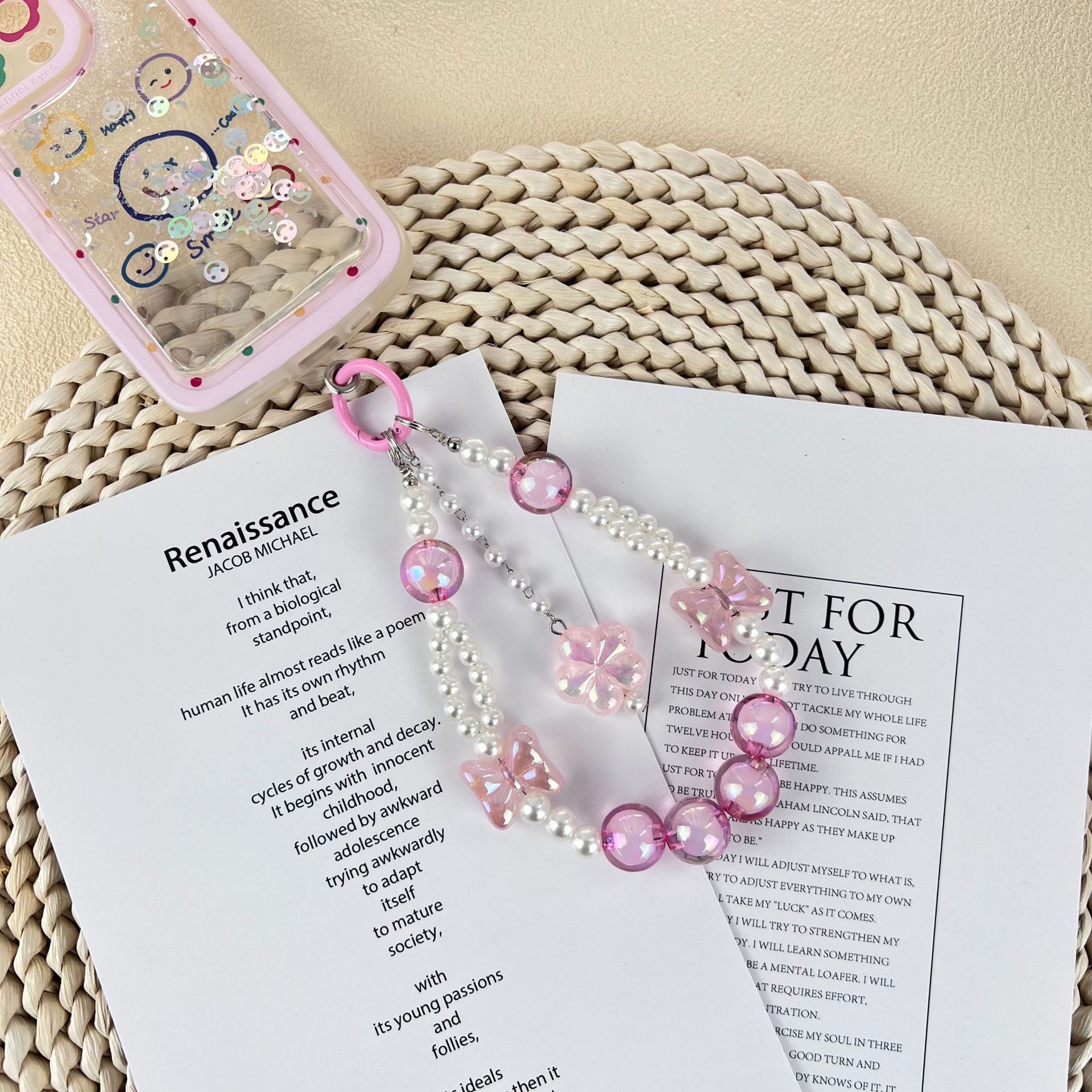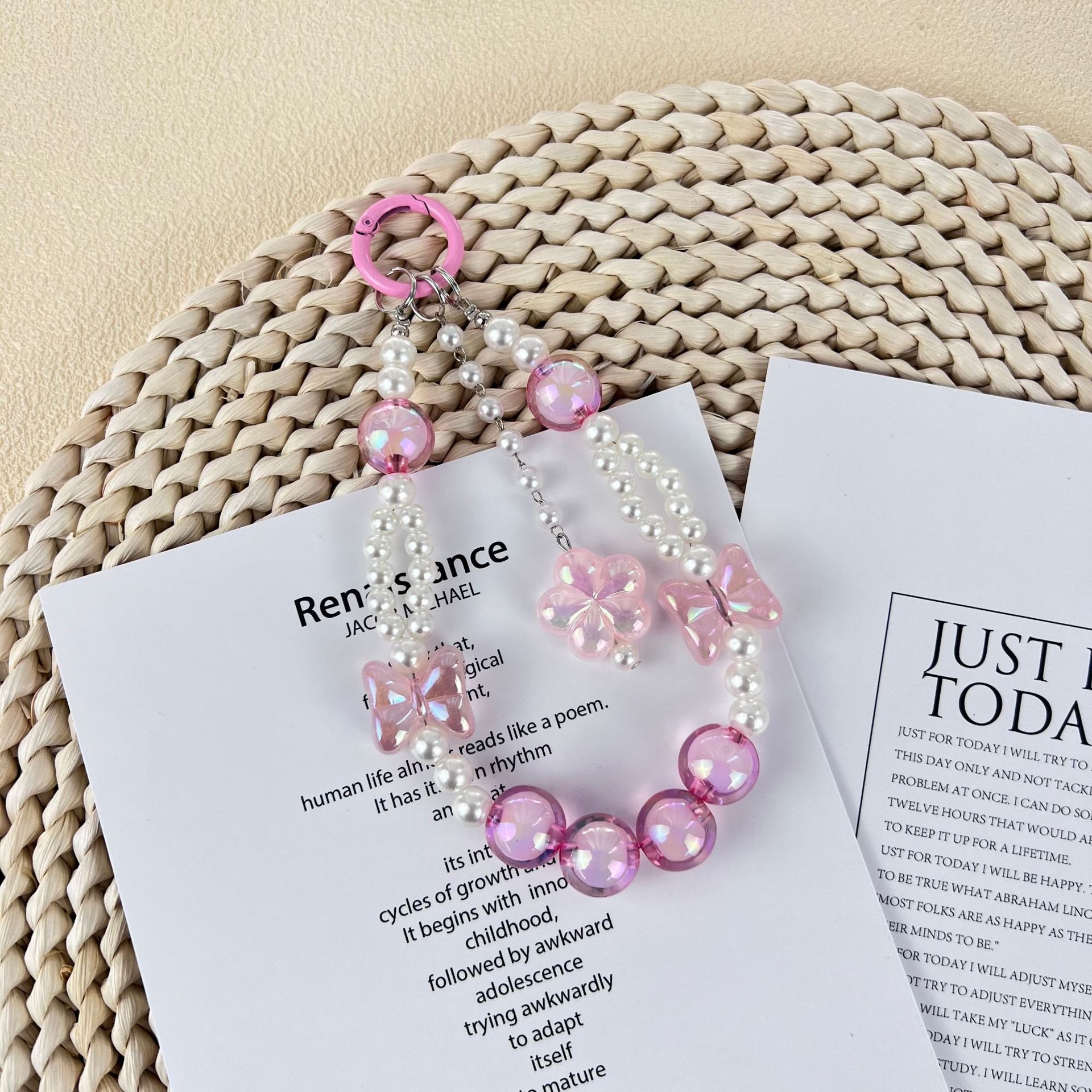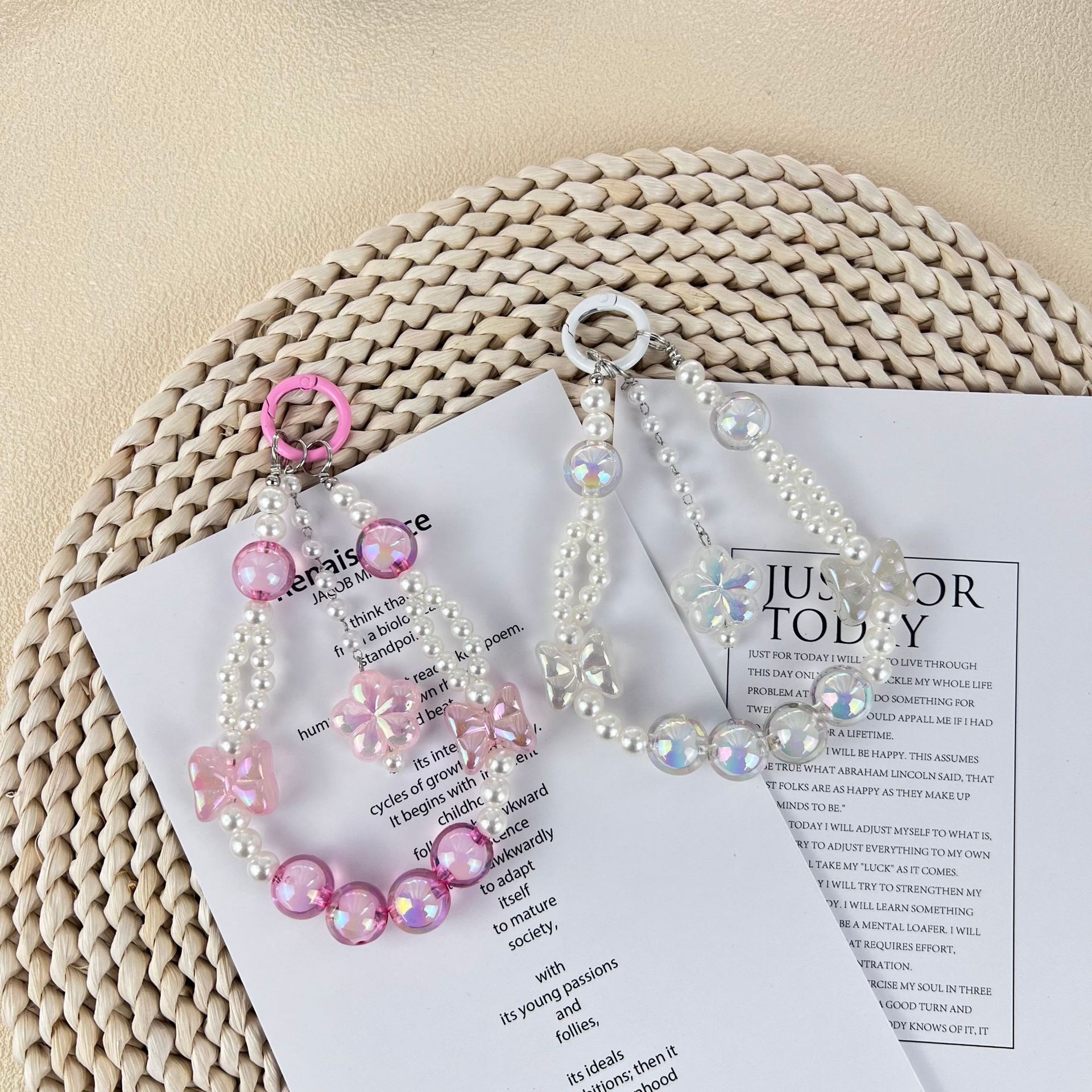 新款珍珠汽车钥匙扣挂件可爱卡通小花配件耳机套包装饰时尚手机链