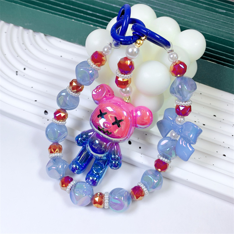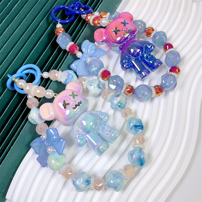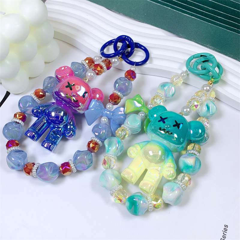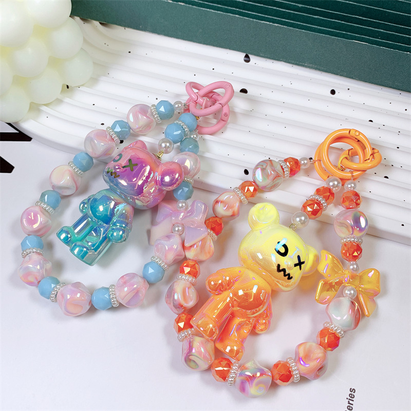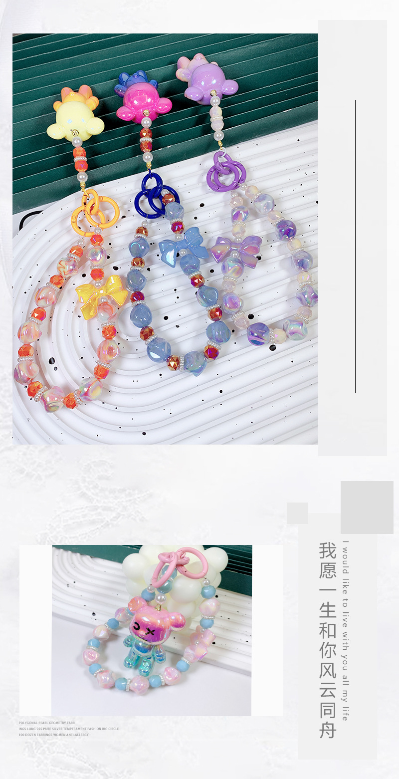 韩国东大门小红书爆款串珠卡通AB彩小熊手机链手机壳挂绳包包挂饰