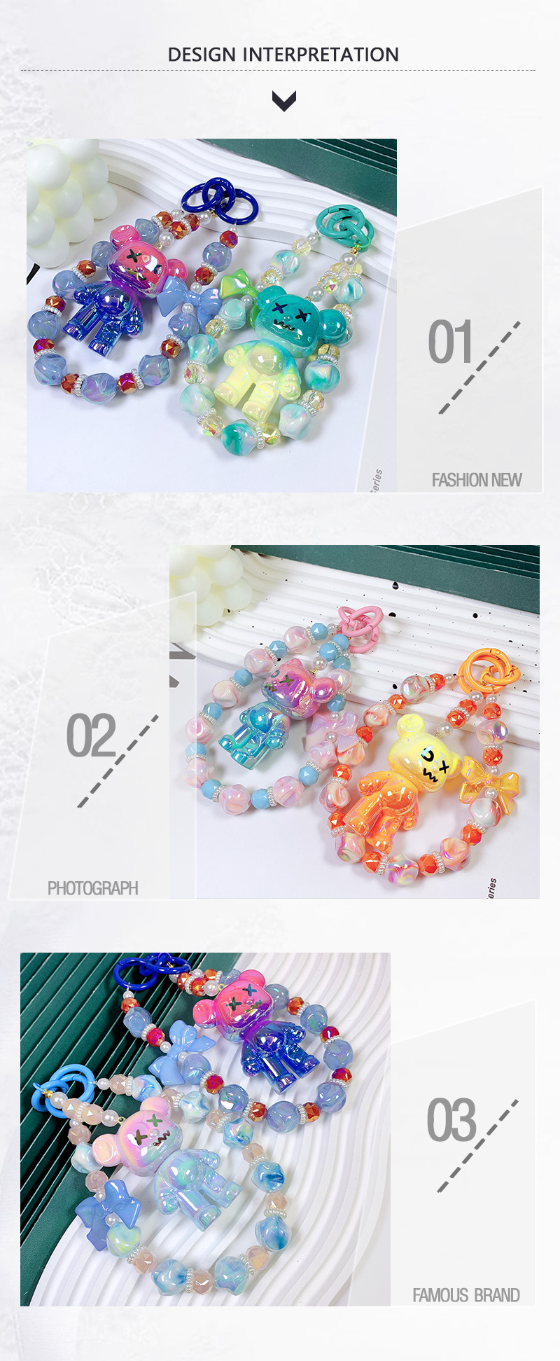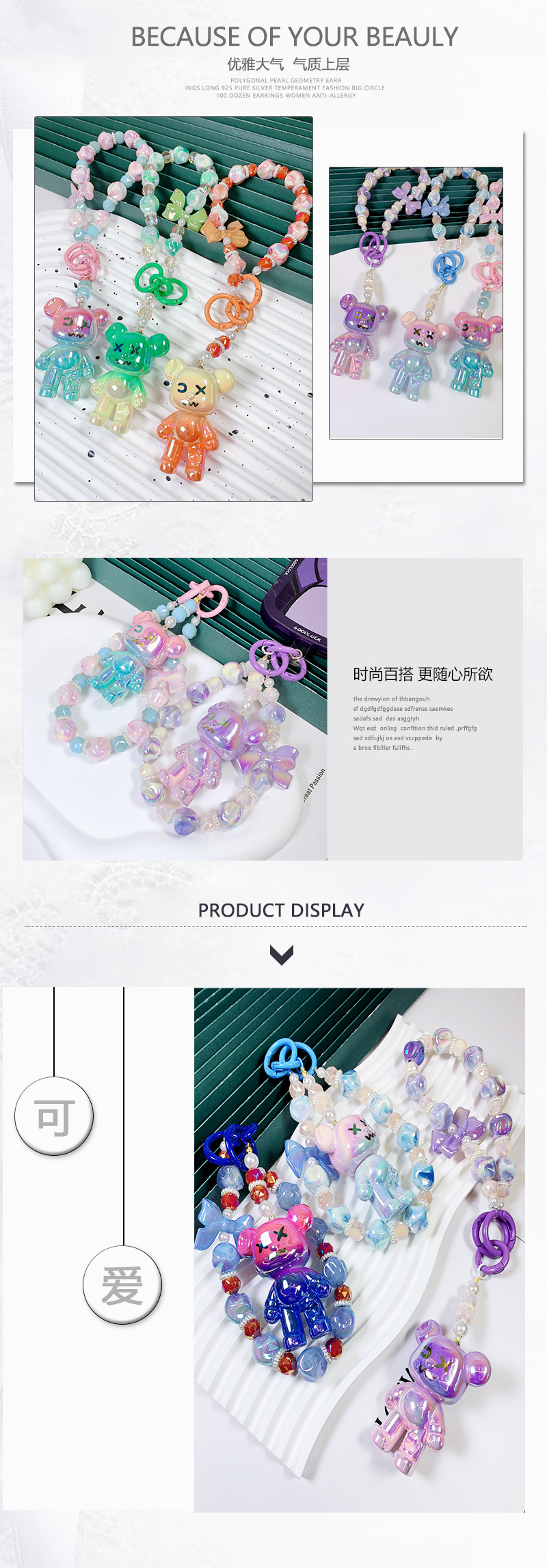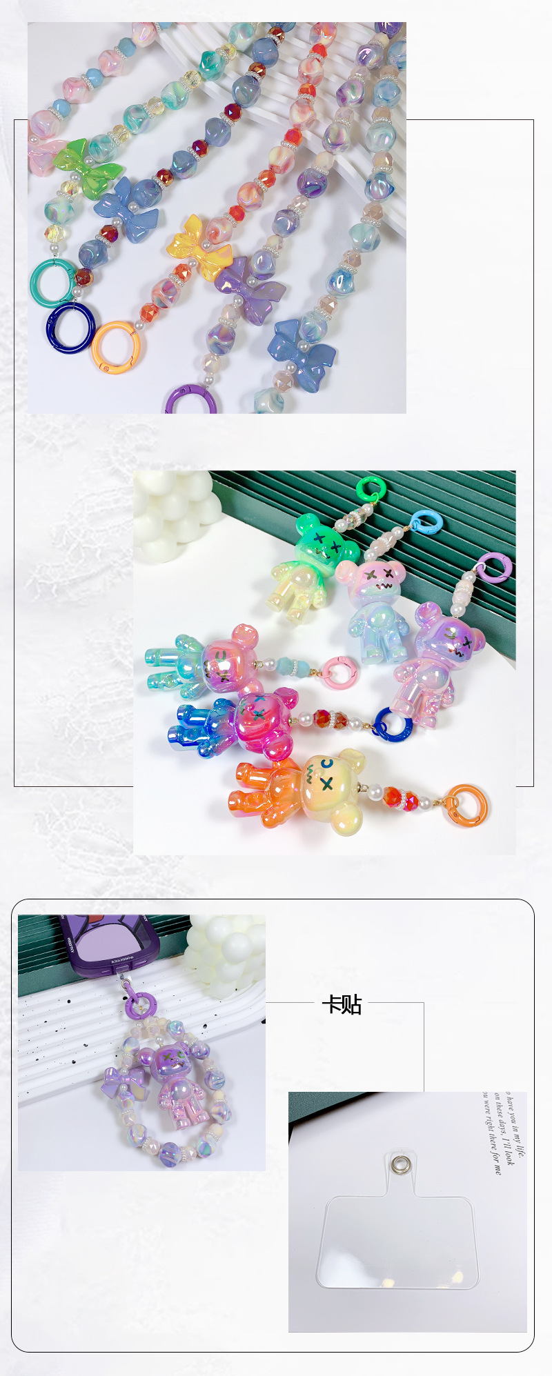 韩国东大门小红书爆款串珠卡通AB彩小熊手机链手机壳挂绳包包挂饰