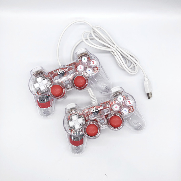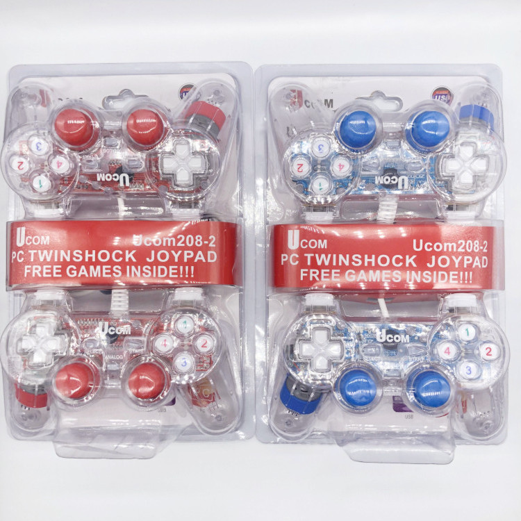 208UCOM包装USB游戏手柄 PS2外形透明手柄 PC电脑 双人双打手柄