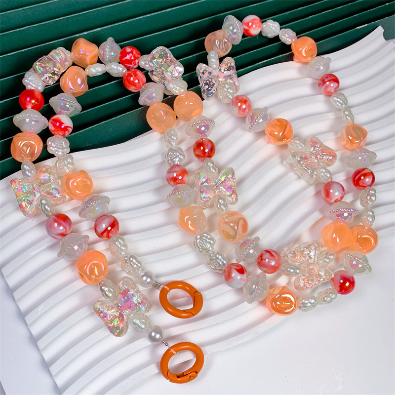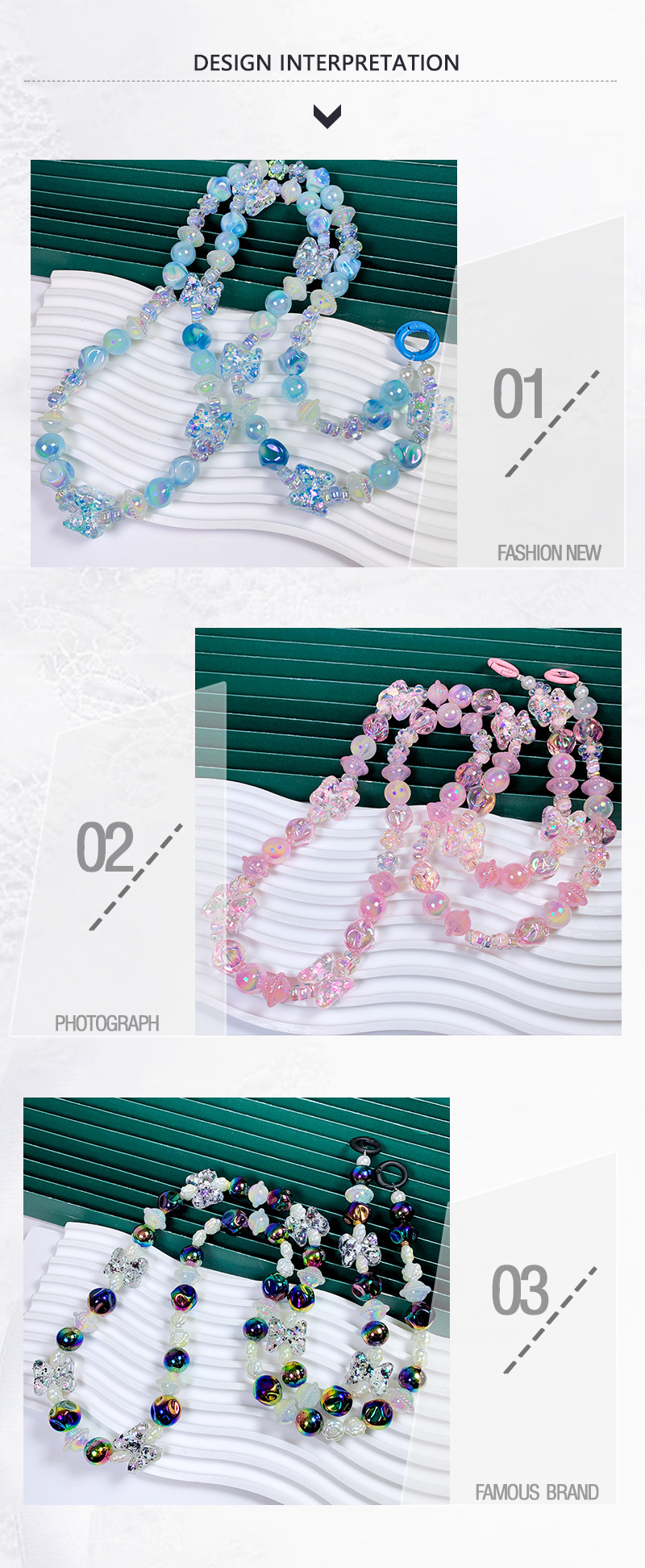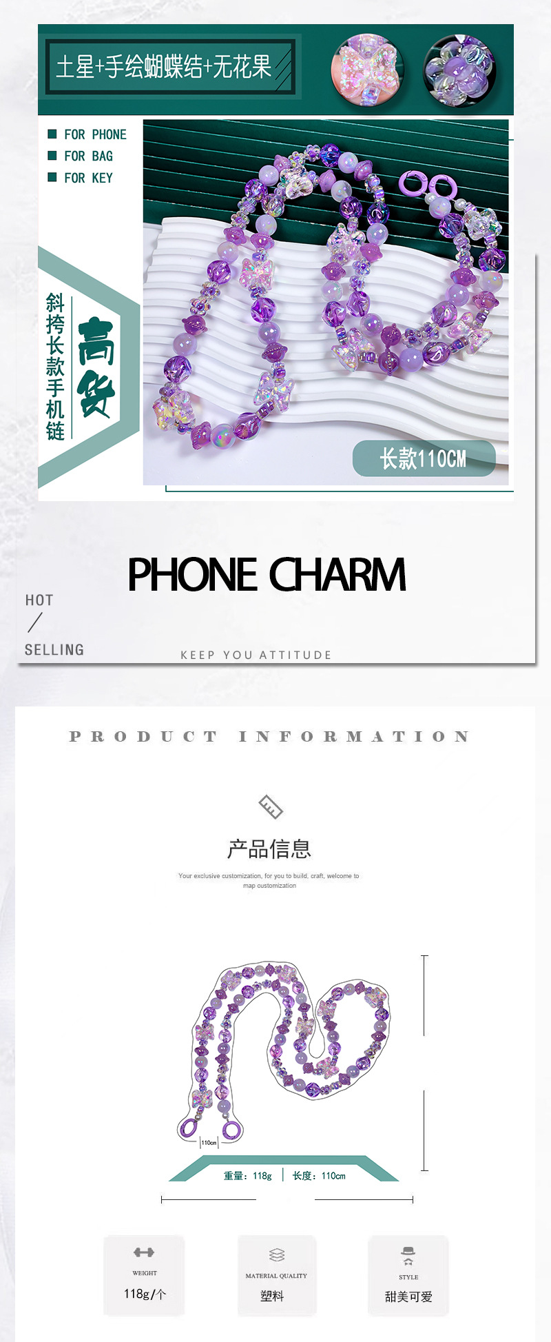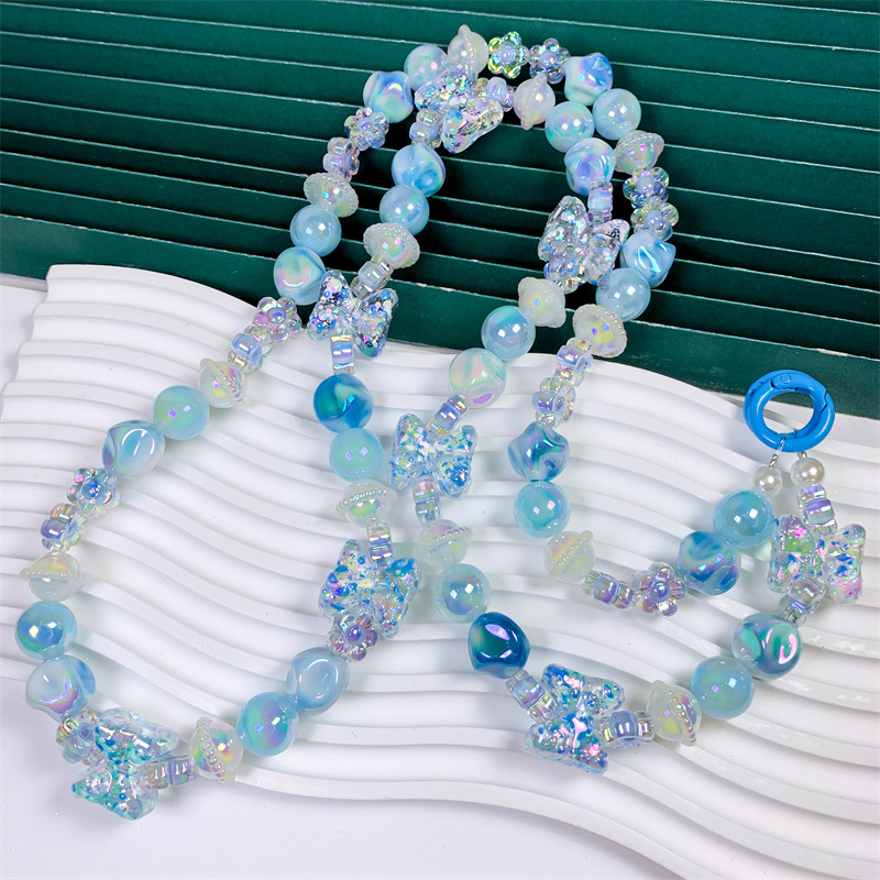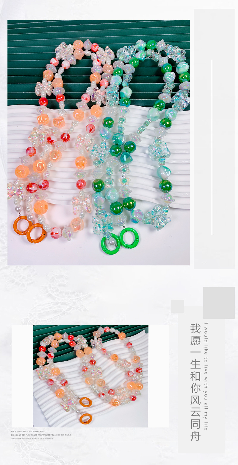 韩国东大门小红书串珠手绘珠蝴蝶结土星手机链手机壳挂绳包包挂件