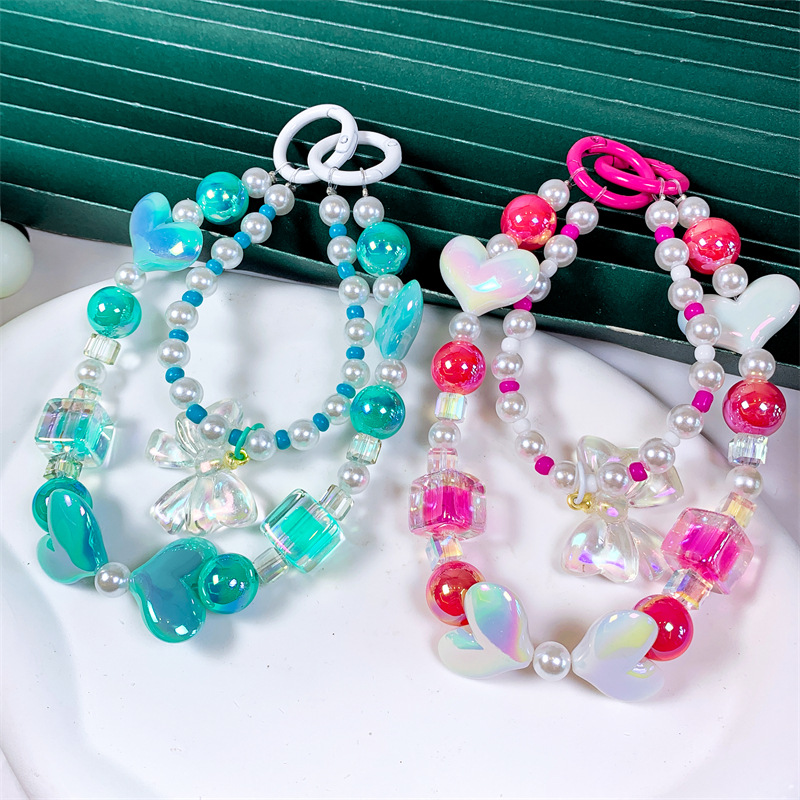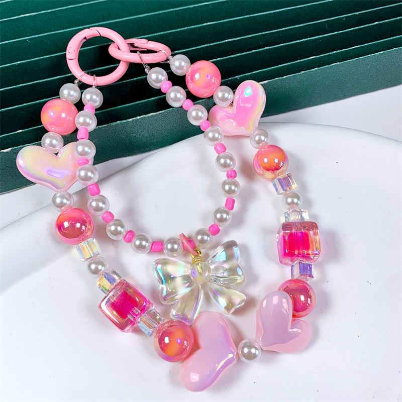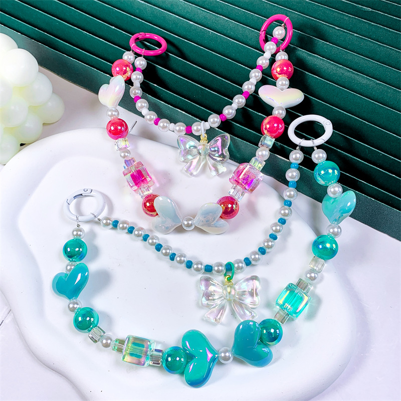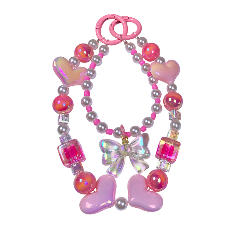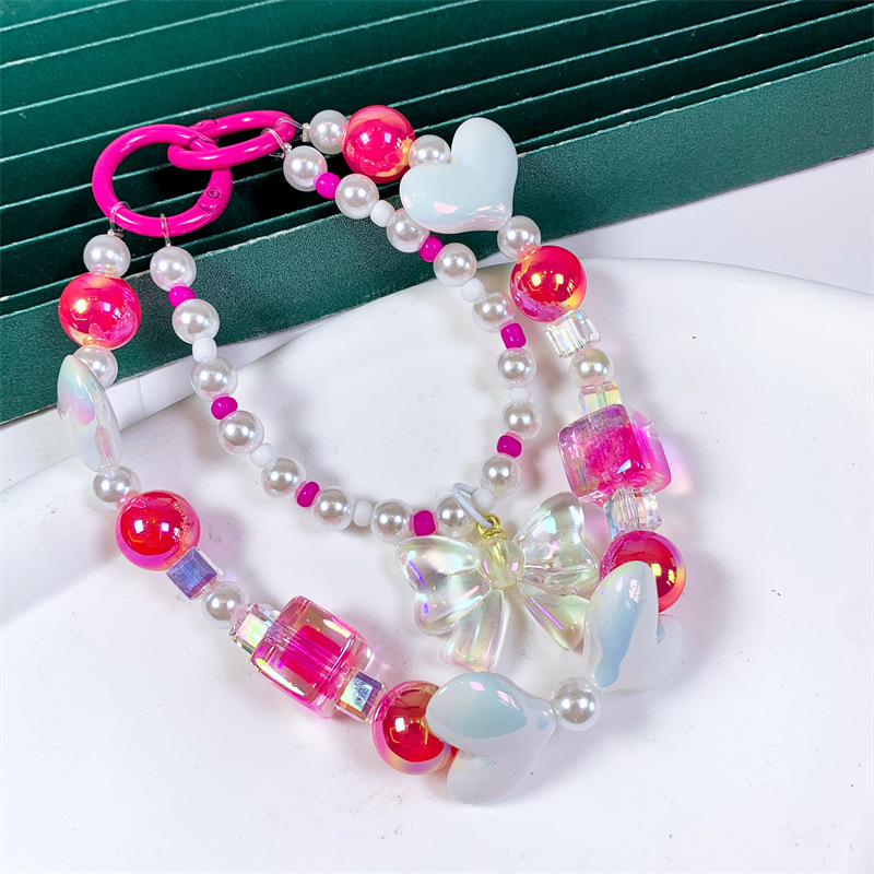 韩国东大门小红书手工串双层爱心蝴蝶结手机链手机壳挂绳包包挂件