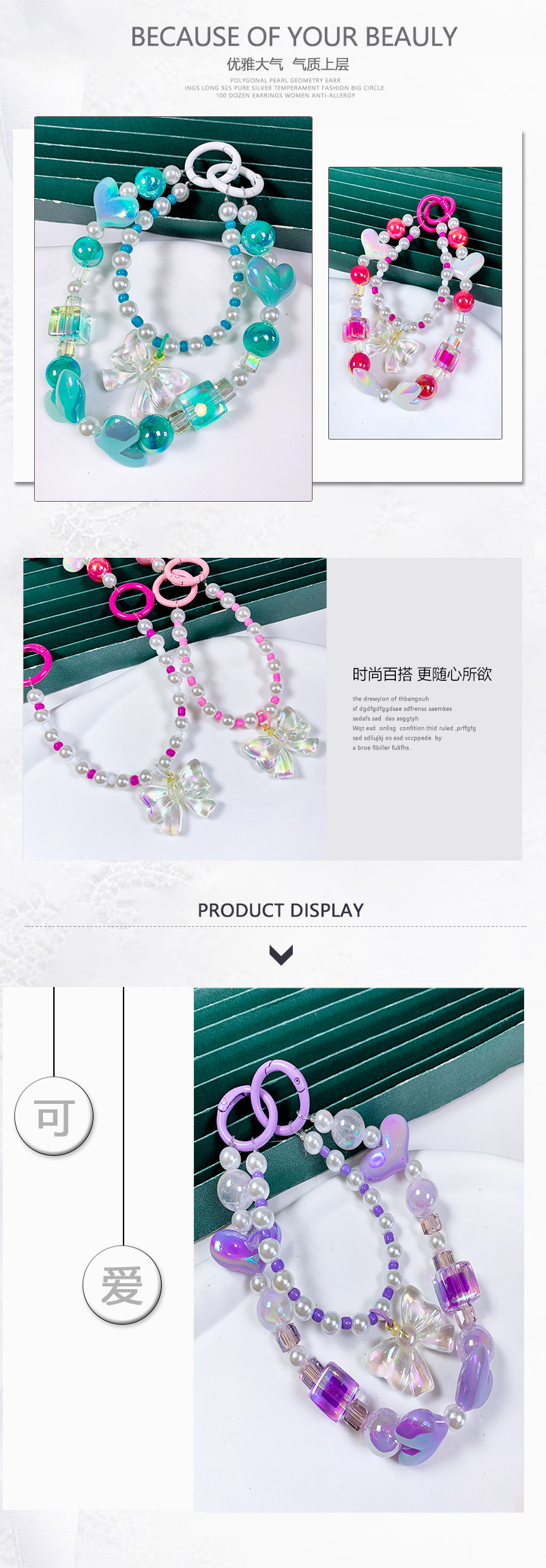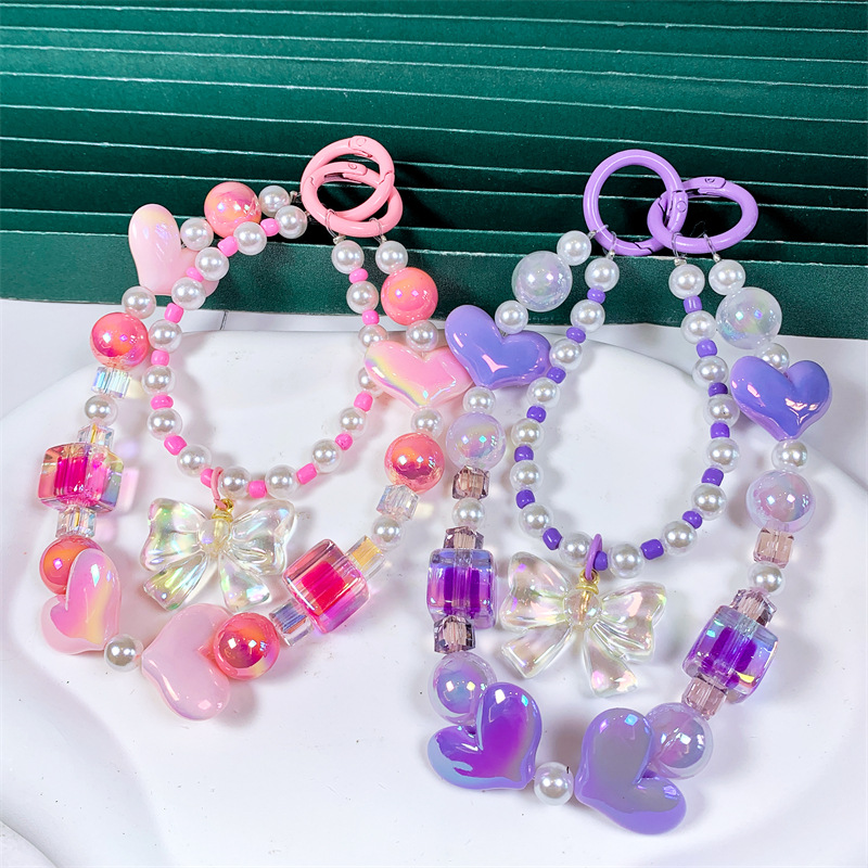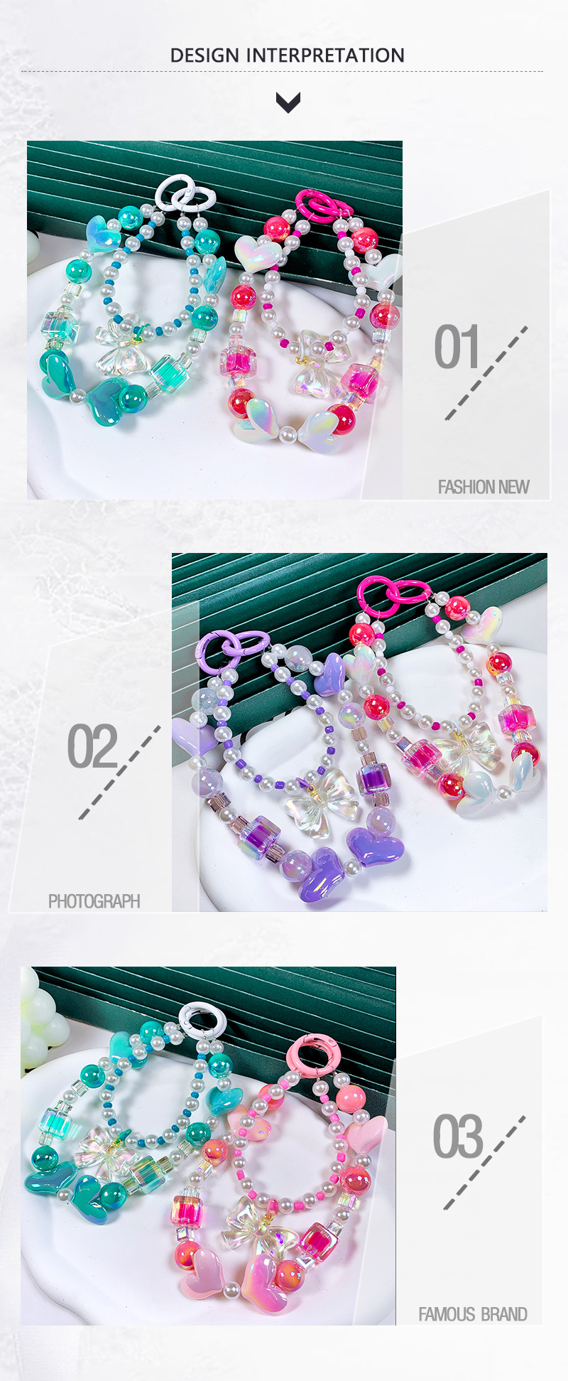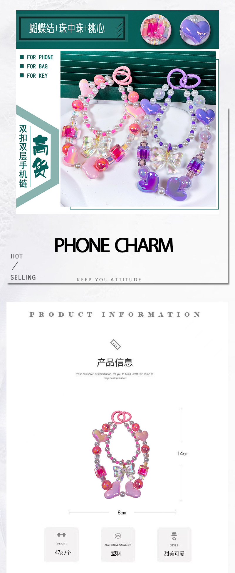 韩国东大门小红书手工串双层爱心蝴蝶结手机链手机壳挂绳包包挂件