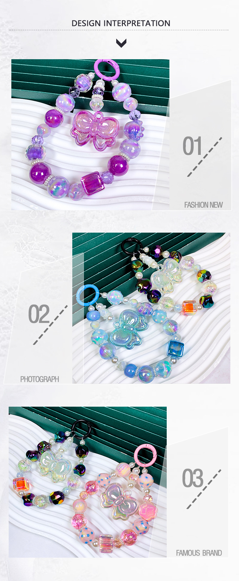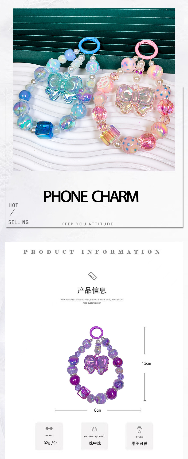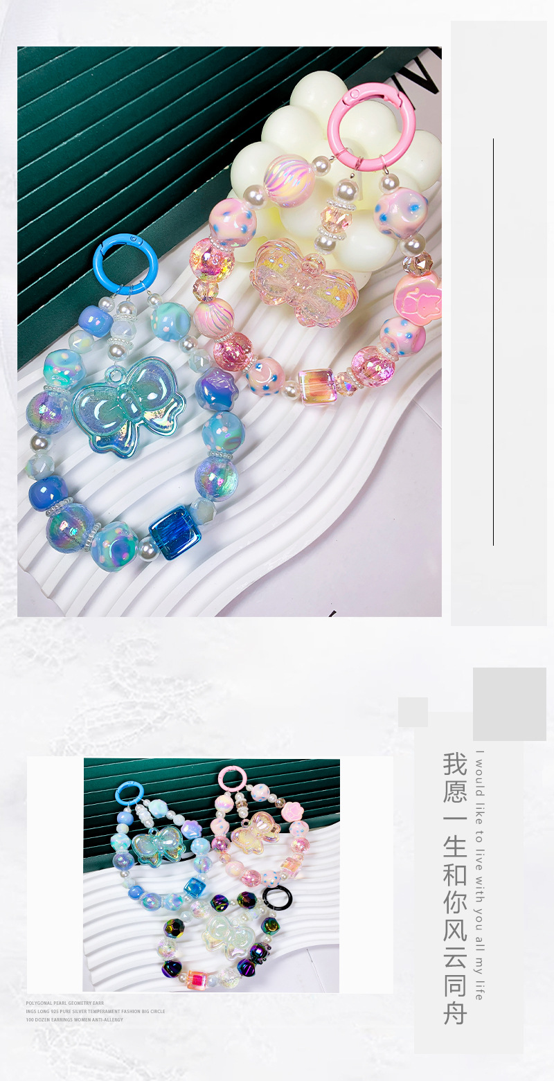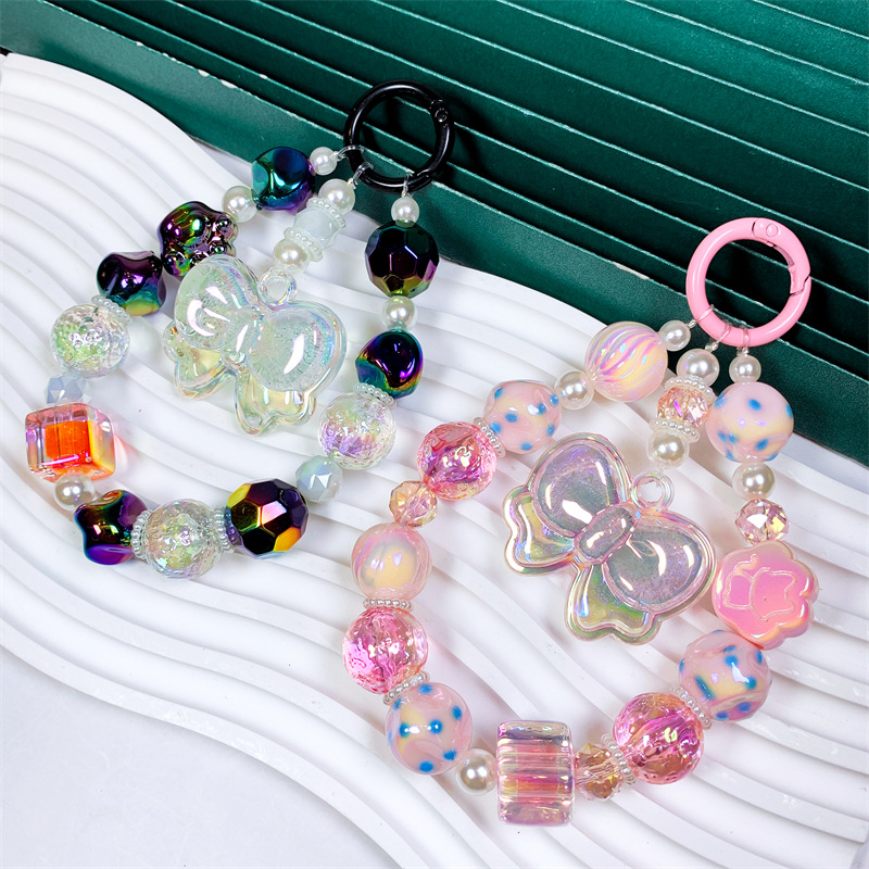 韩国东大门小红书串珠卡通幻珠蝴蝶结手机链手机壳挂绳包包挂件