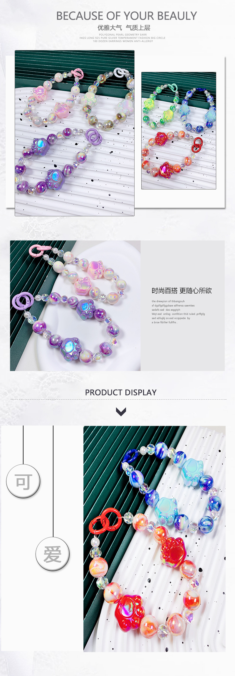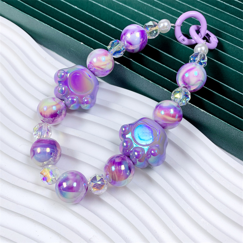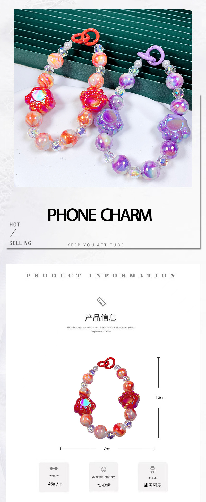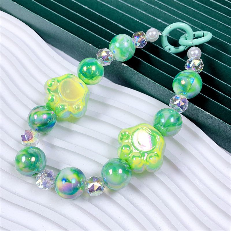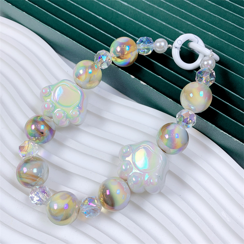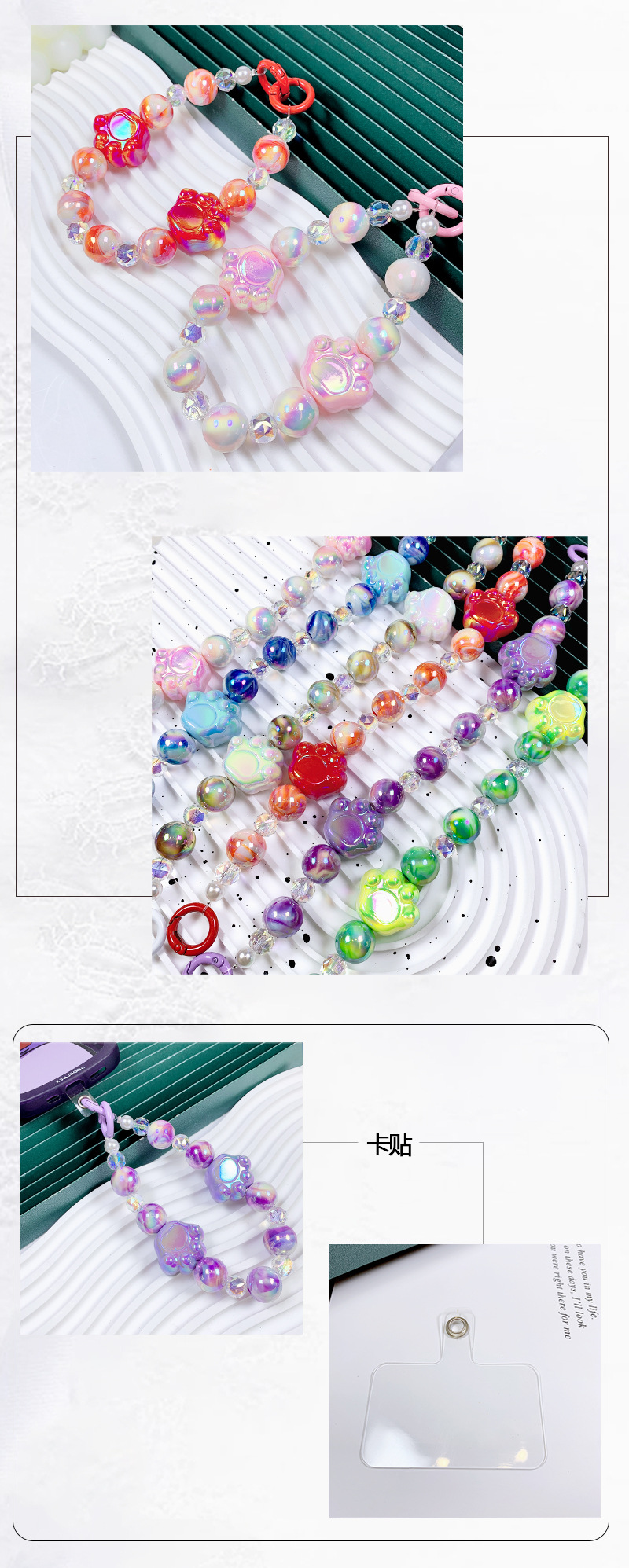 韩国东大门小红书串珠卡通幻彩珠猫爪手机链手机壳挂绳包包挂饰