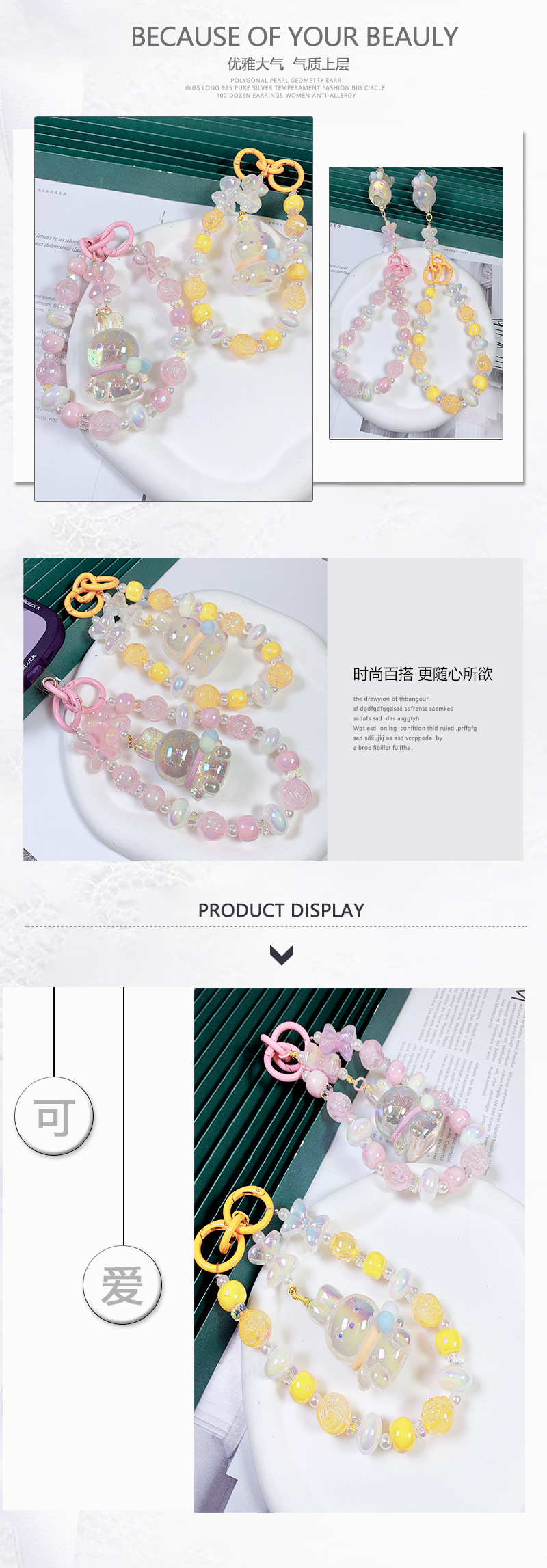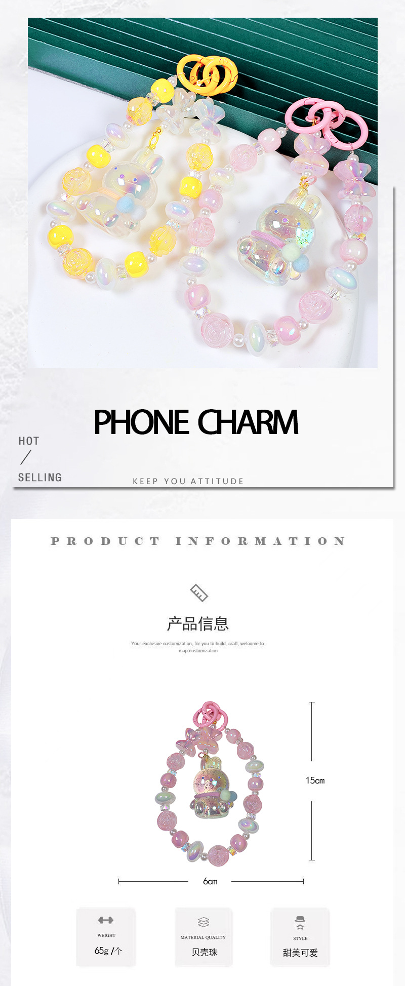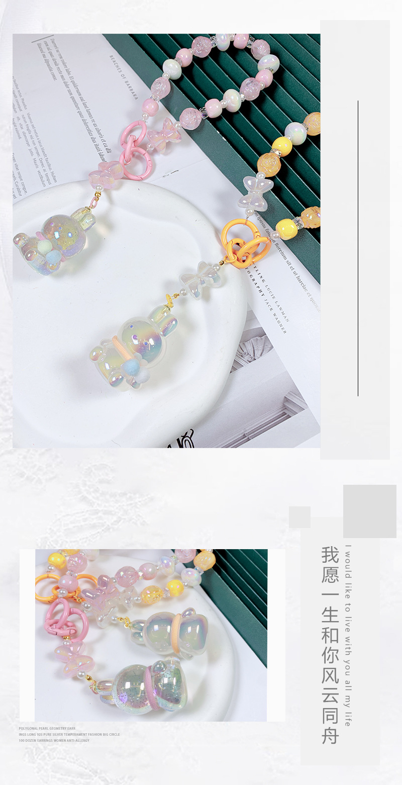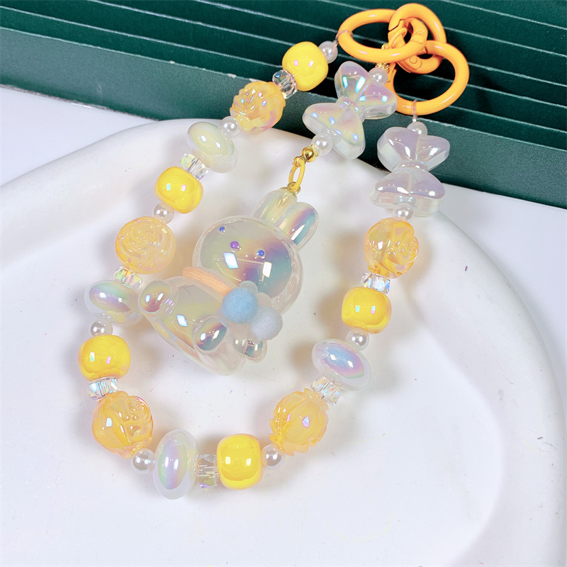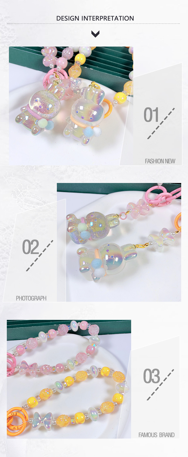 韩国东大门小红书爆款串珠AB彩兔子手机链手机壳挂绳包包挂饰