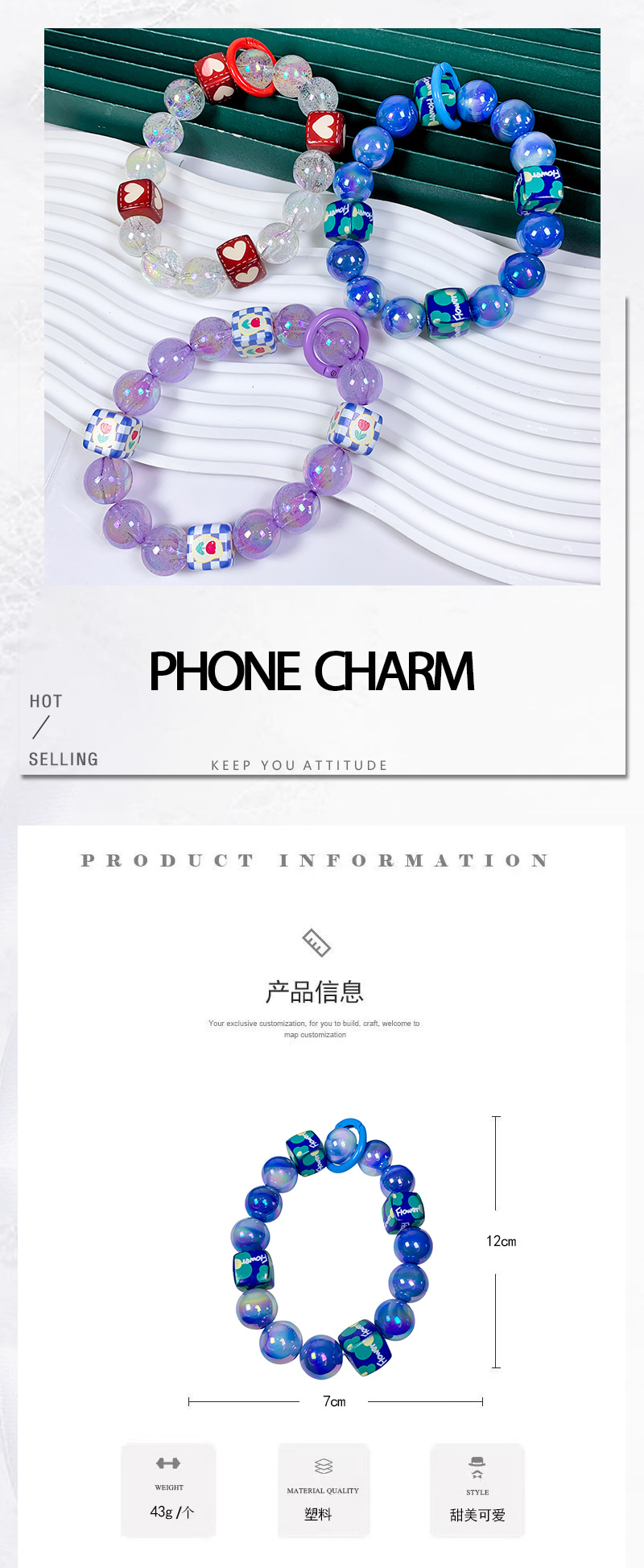 韩国东大门小红书手工串珠气泡珠骰子手机链手机壳挂绳包包挂件
