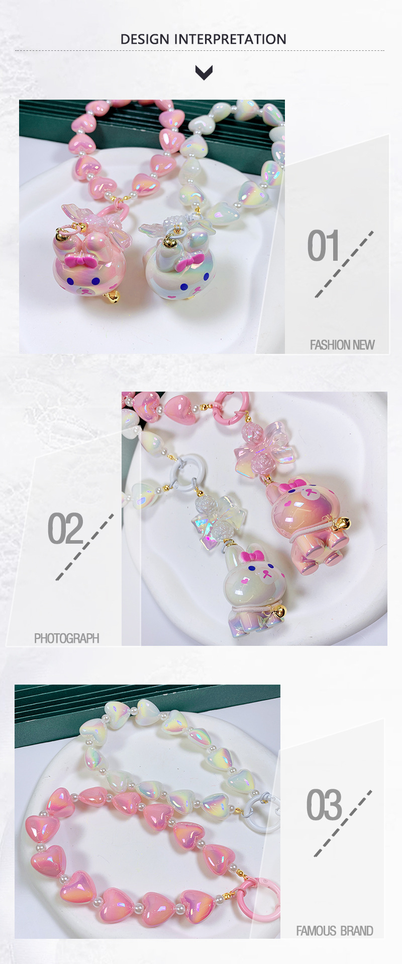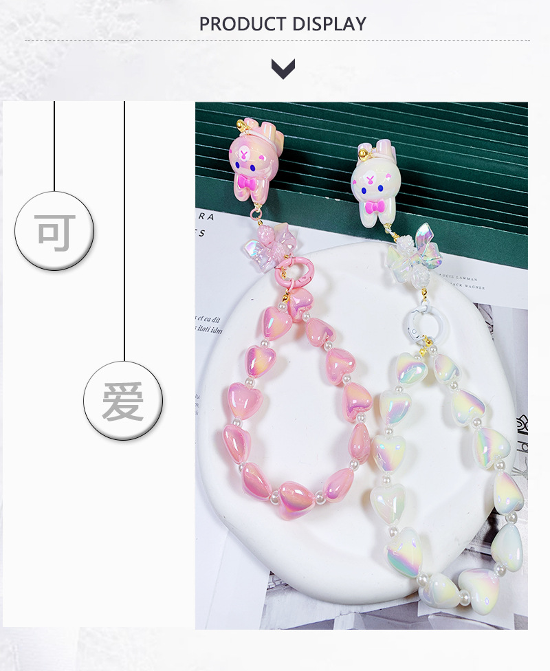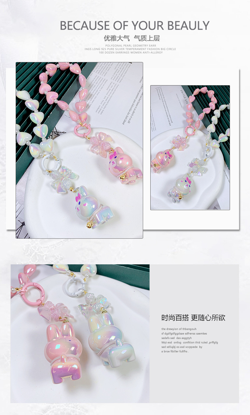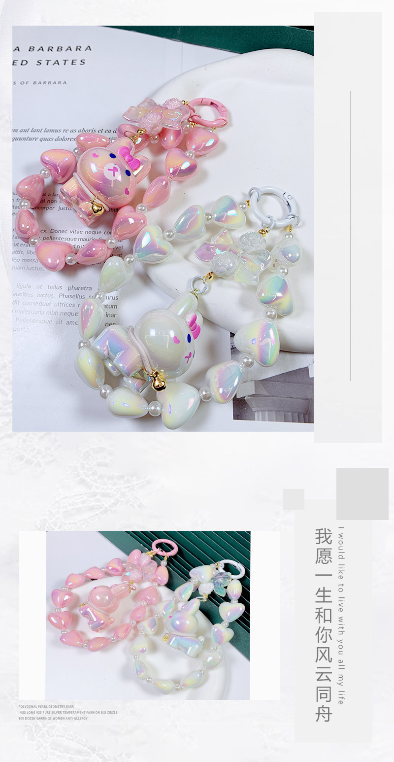 韩国东大门小红书爆款串珠AB彩爱心兔子手机链手机壳挂绳包包挂饰