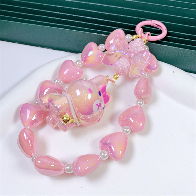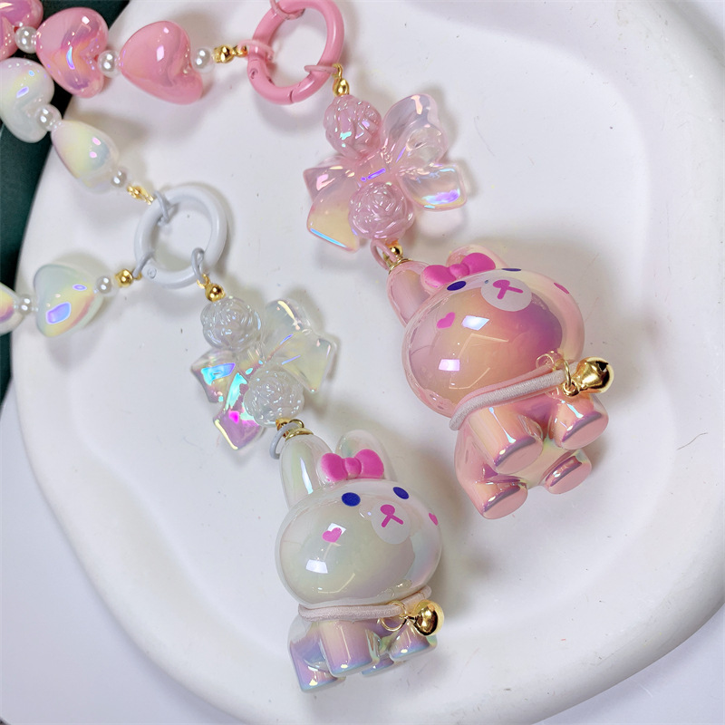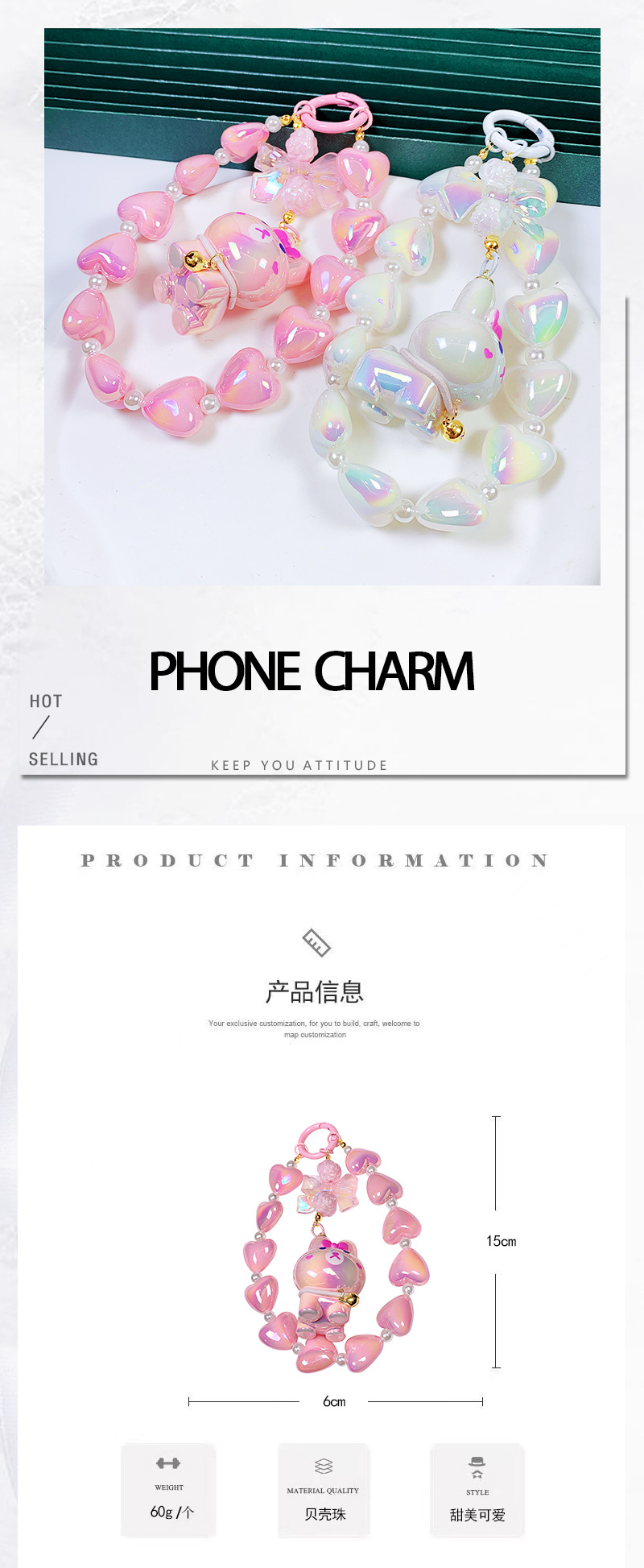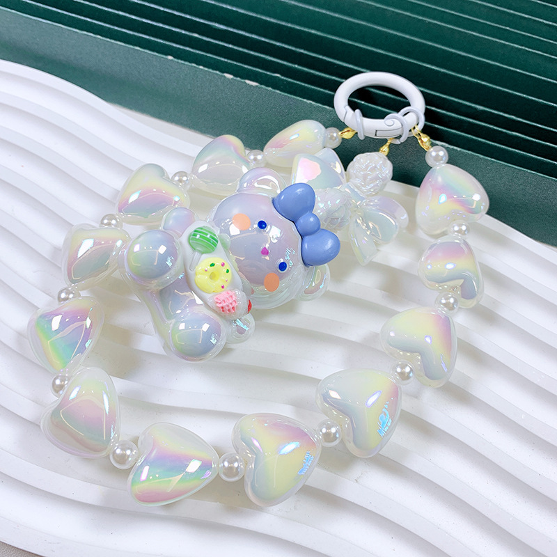 韩国东大门小红书爆款串珠AB彩爱心兔子手机链手机壳挂绳包包挂饰