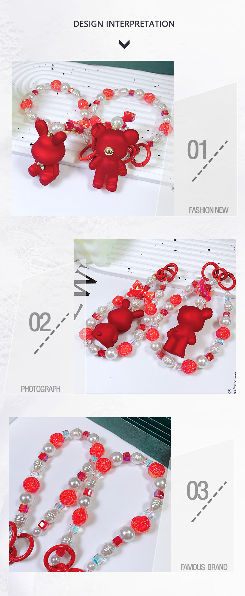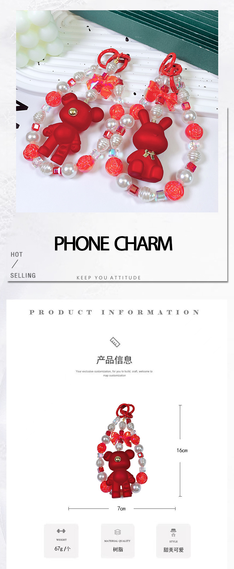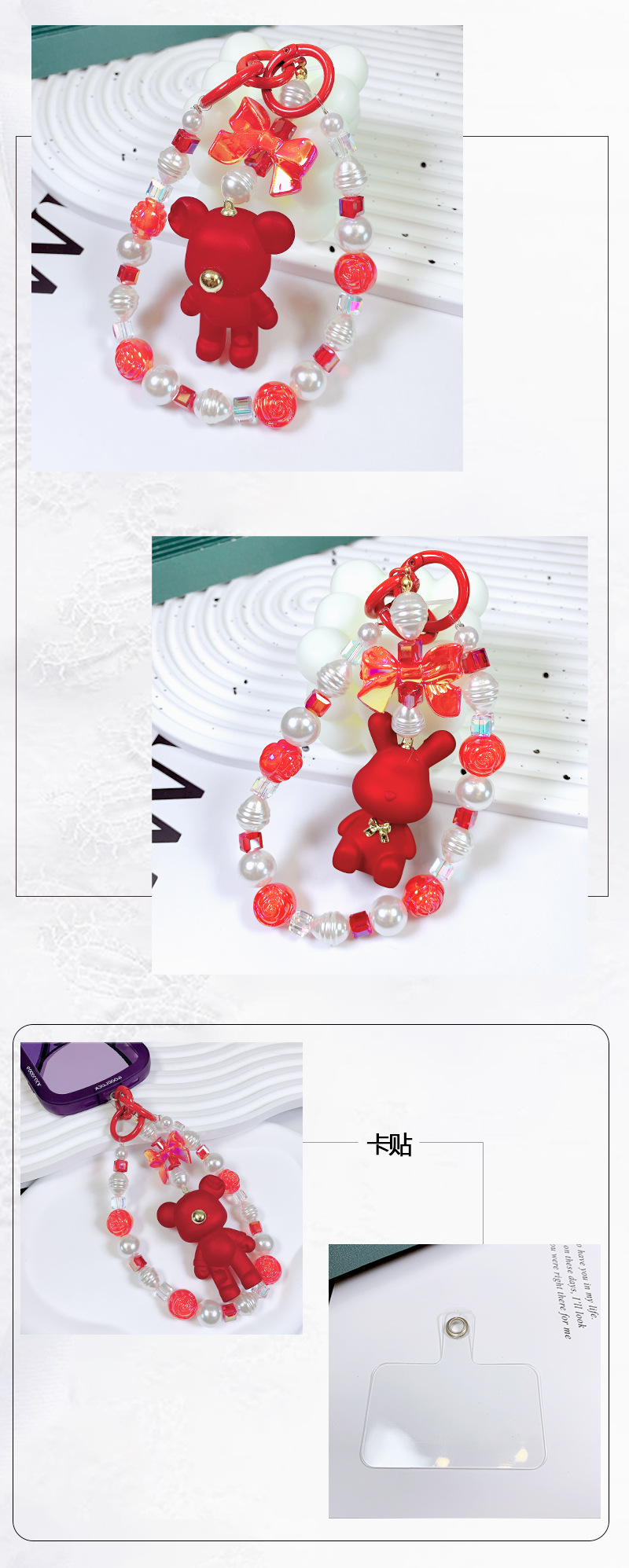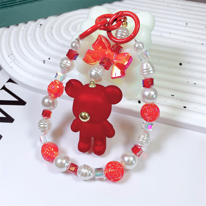 韩国东大门小红书爆款串珠卡通吉祥熊手机链手机壳挂绳包包挂饰