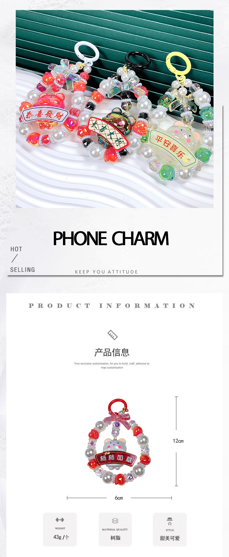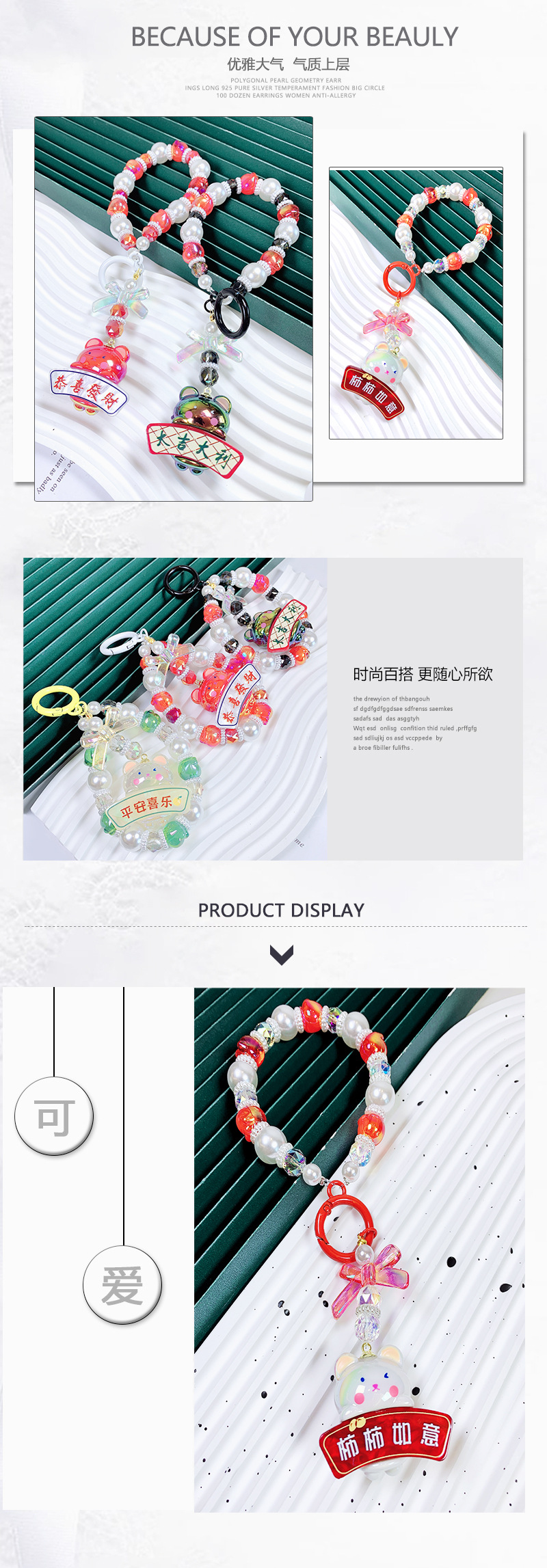 韩国东大门小红书串珠卡通小熊五角星手机链手机壳挂绳包包挂件