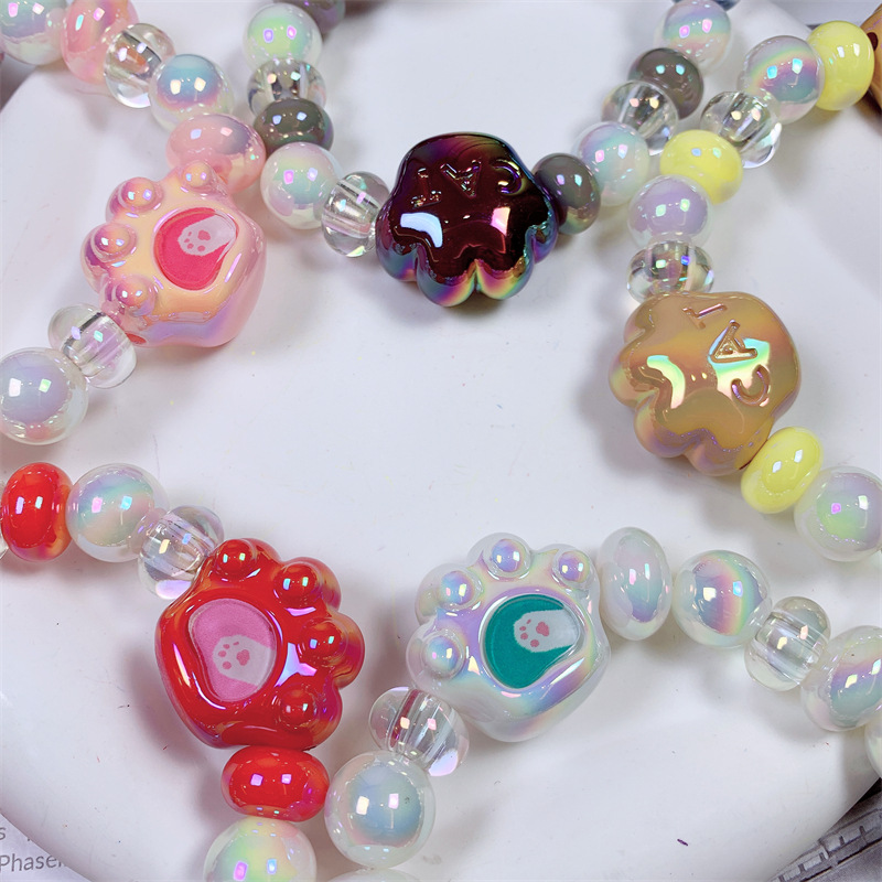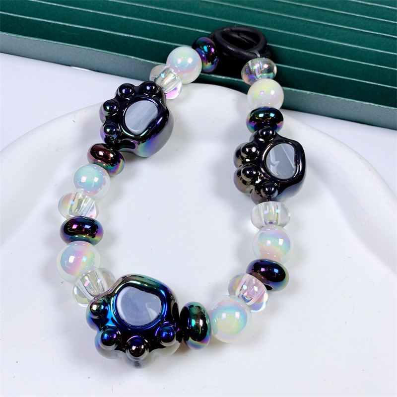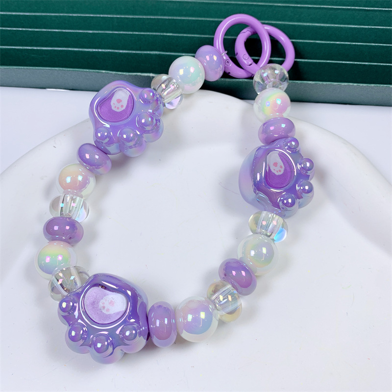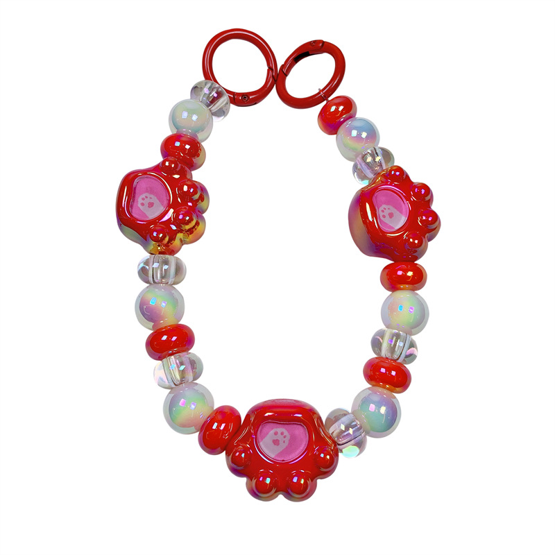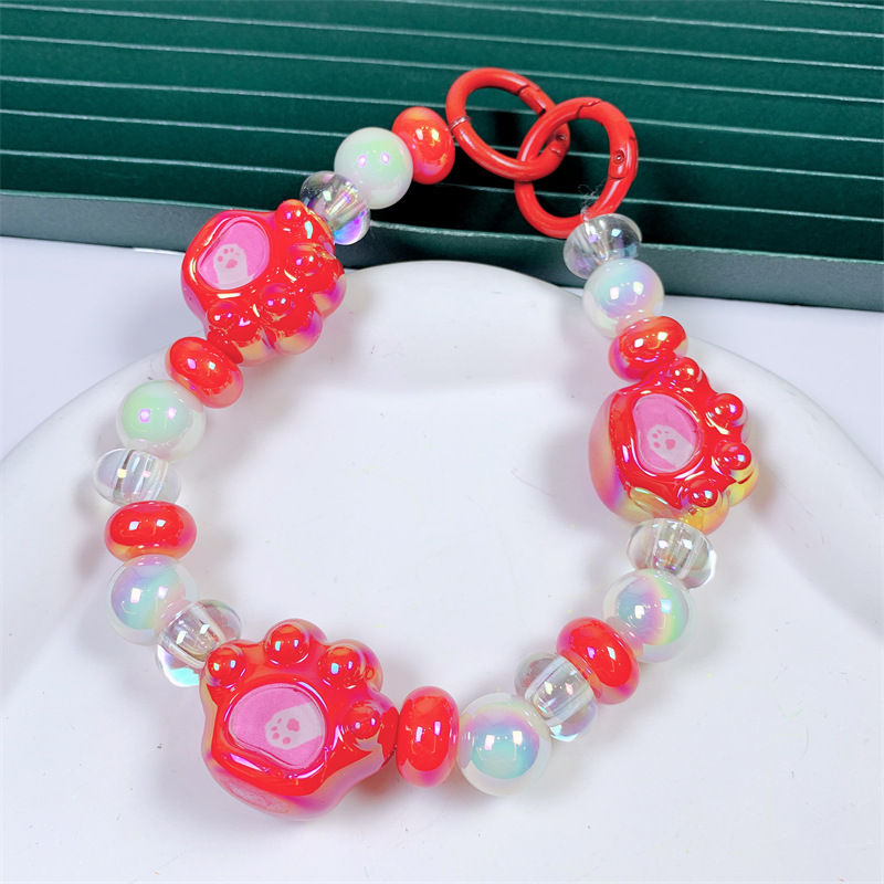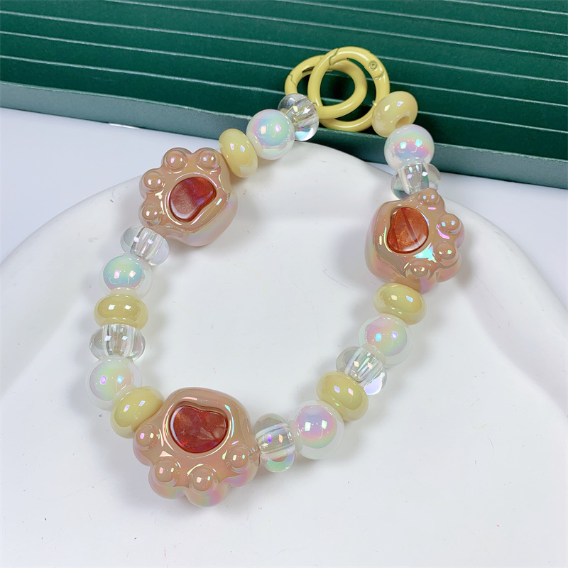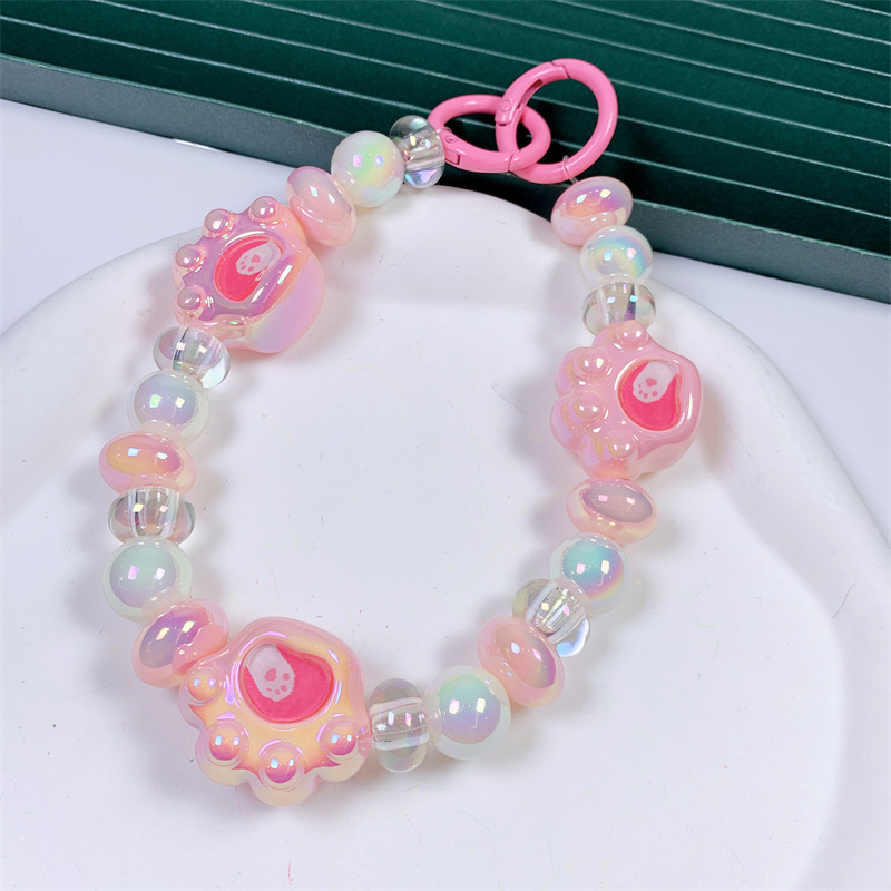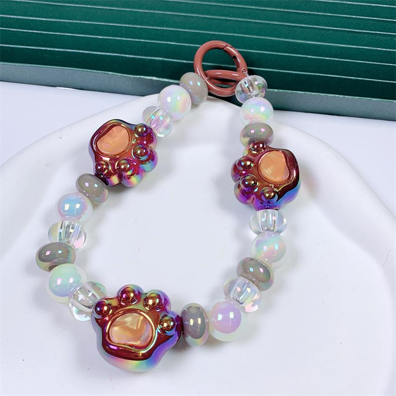 韩国东大门小红书爆款串珠AB彩大号猫爪手机链手机壳挂绳包包挂饰