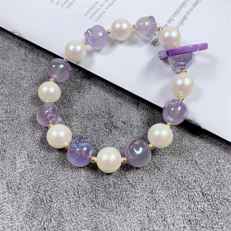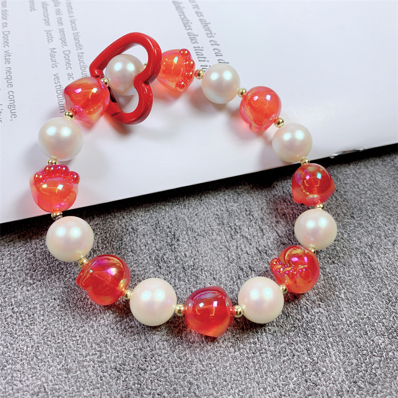 韩国东大门小红书爆款夜光珠卡通猫爪手机链手机壳挂绳包包挂件