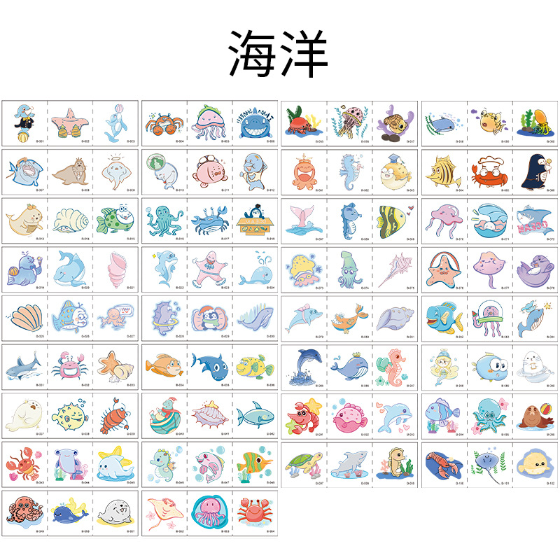 严选卡通纹身贴儿童动物纹身贴幼儿卡通公主独角兽美人鱼纹