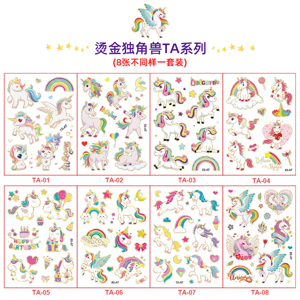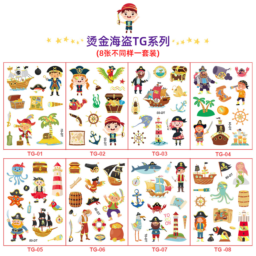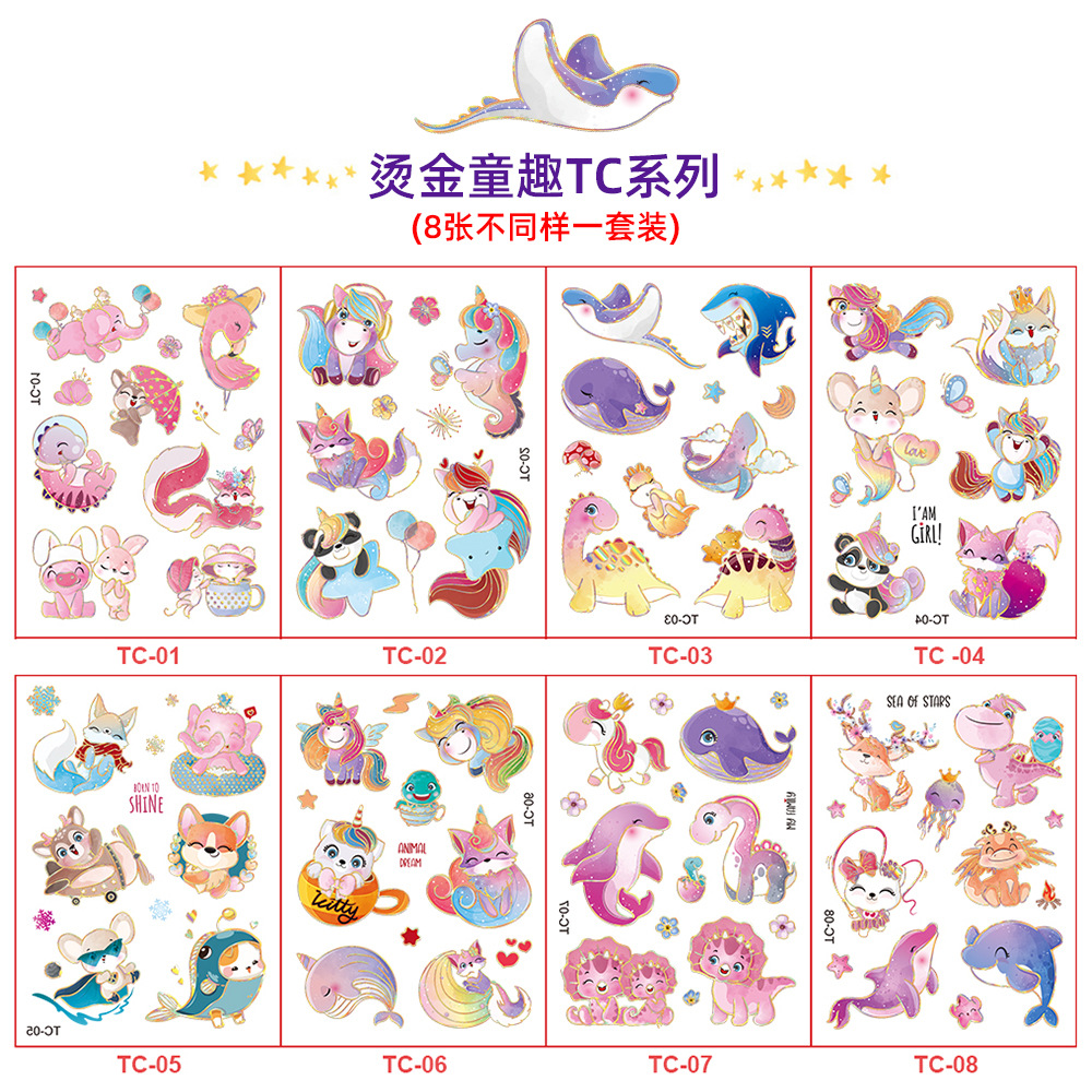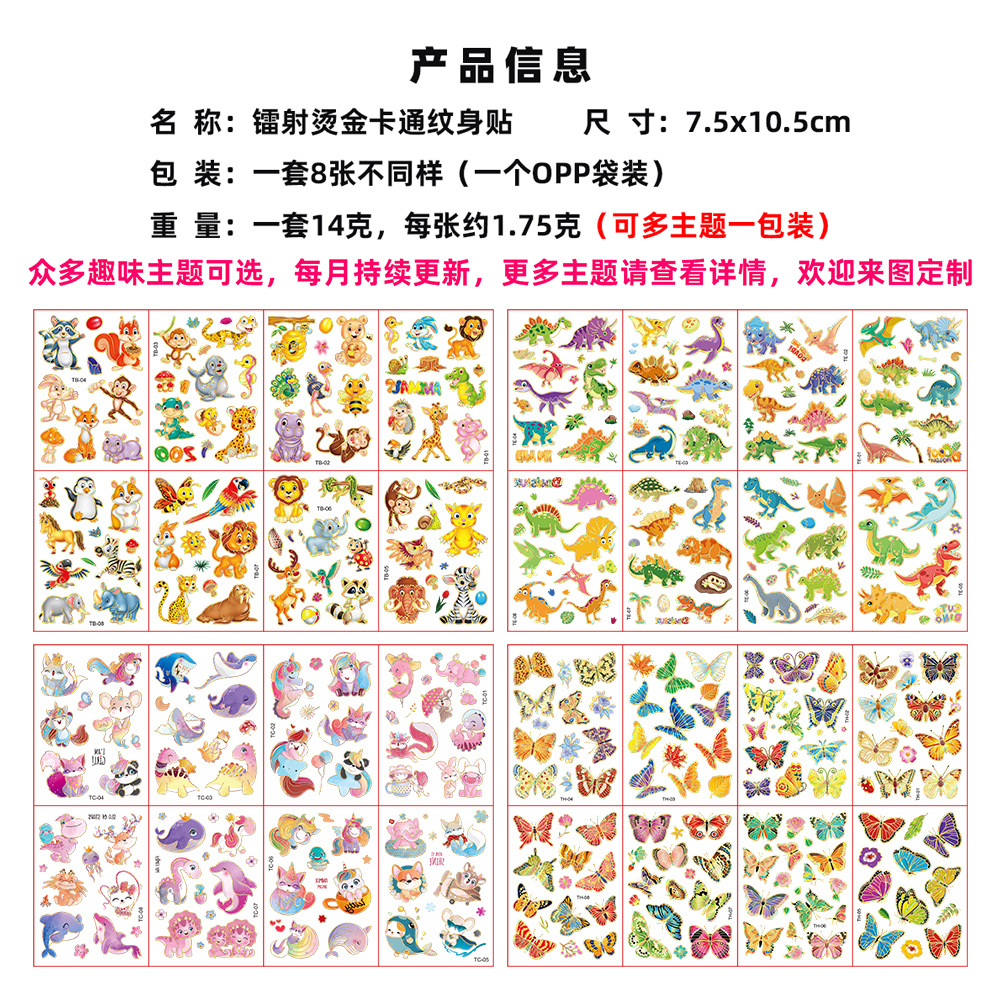 跨境新款儿童卡通镭射烫金纹身贴活动礼品节日聚会派对临时贴纸