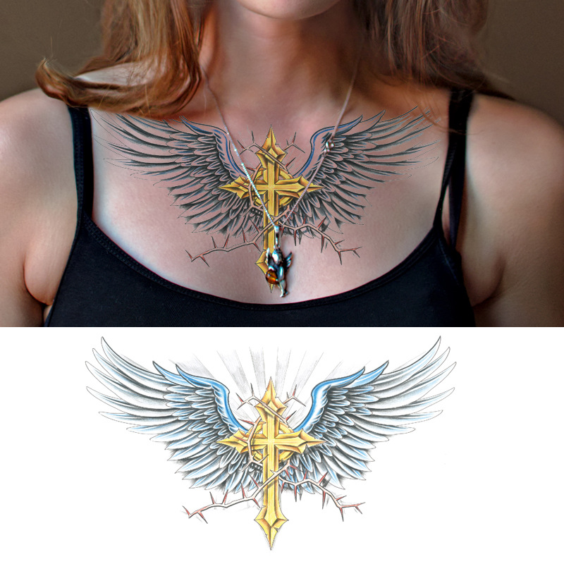2023新款现货批发纹身贴胸前防水女外贸亚马逊供货胸部背部纹身贴