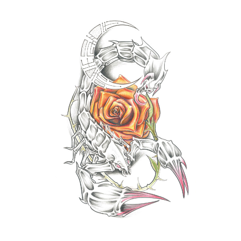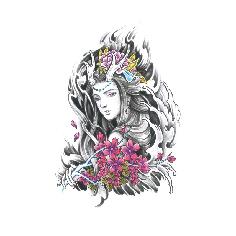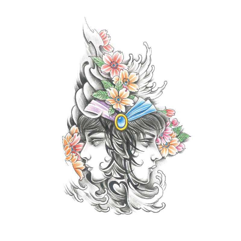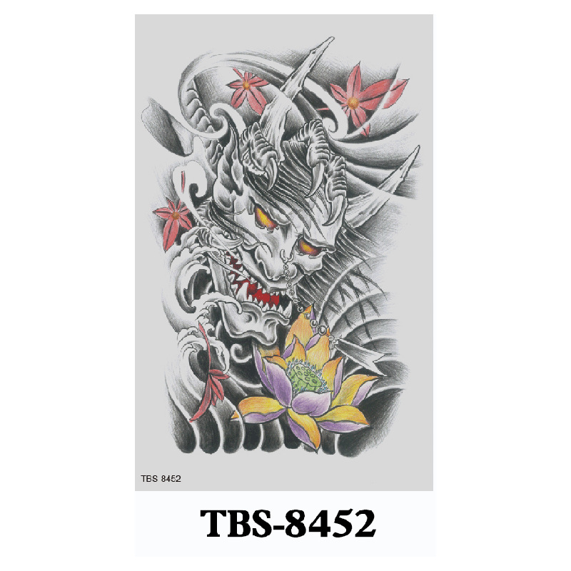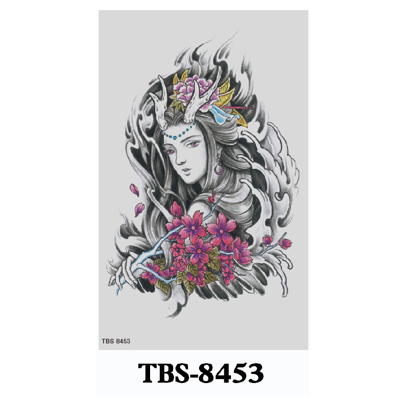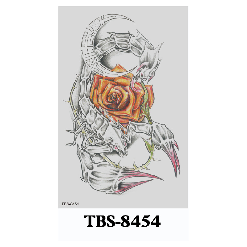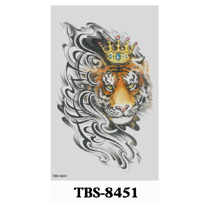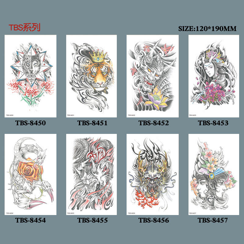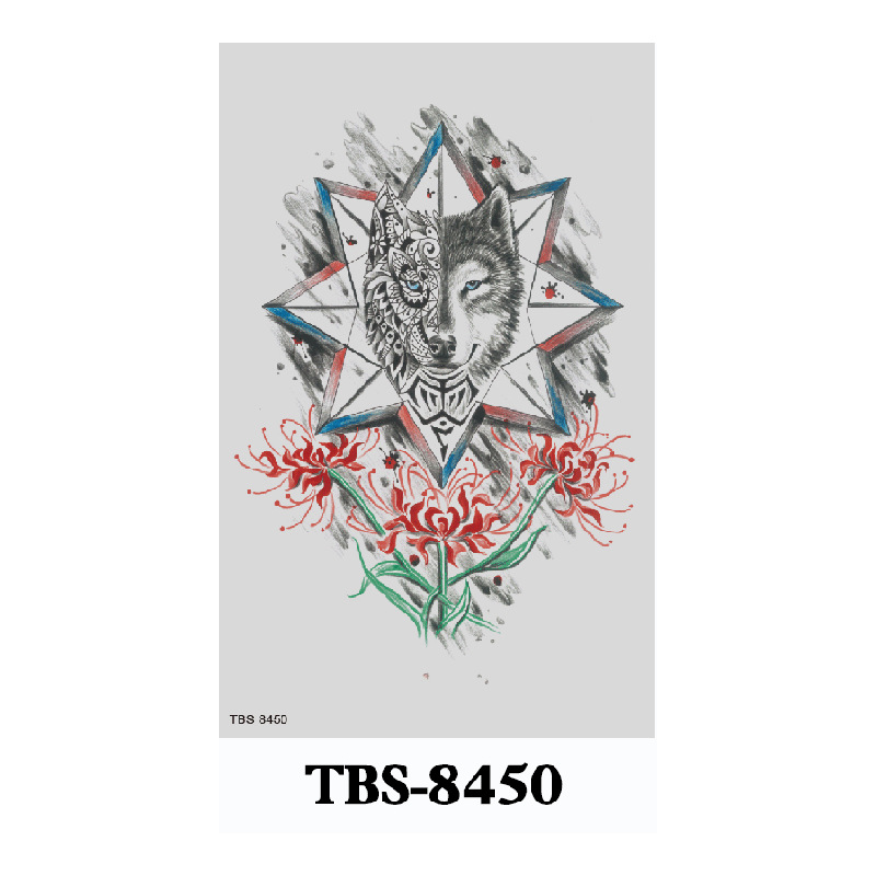 新款跨境现货批发纹身贴彩色水墨定制狼头彩绘防水小全臂临时贴纸