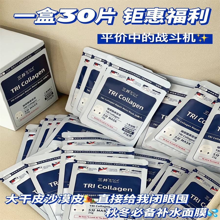 正品日本TRIWELL三井玻尿酸面膜批发补水修复保湿美白提亮护肤