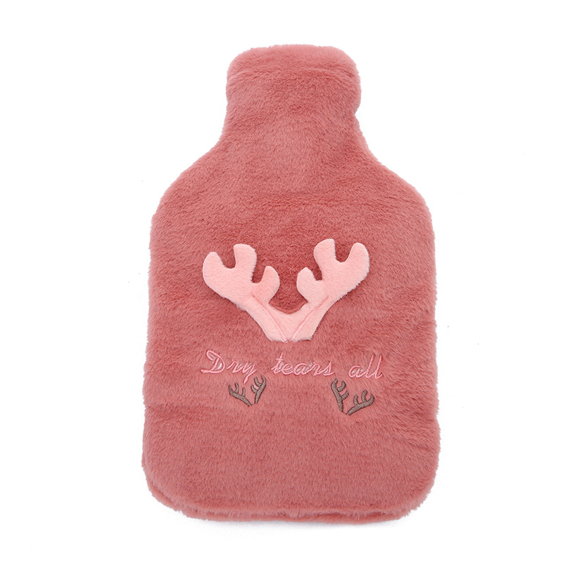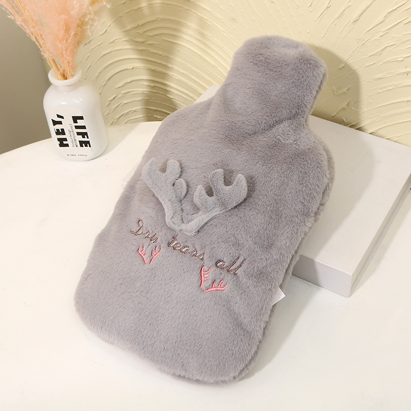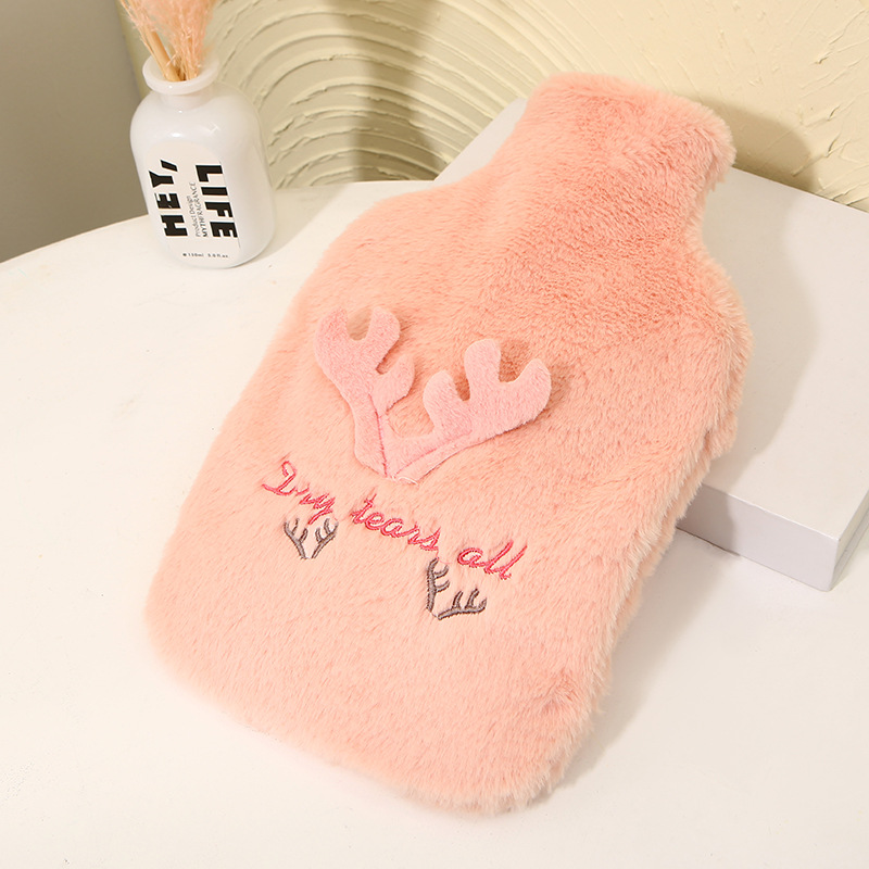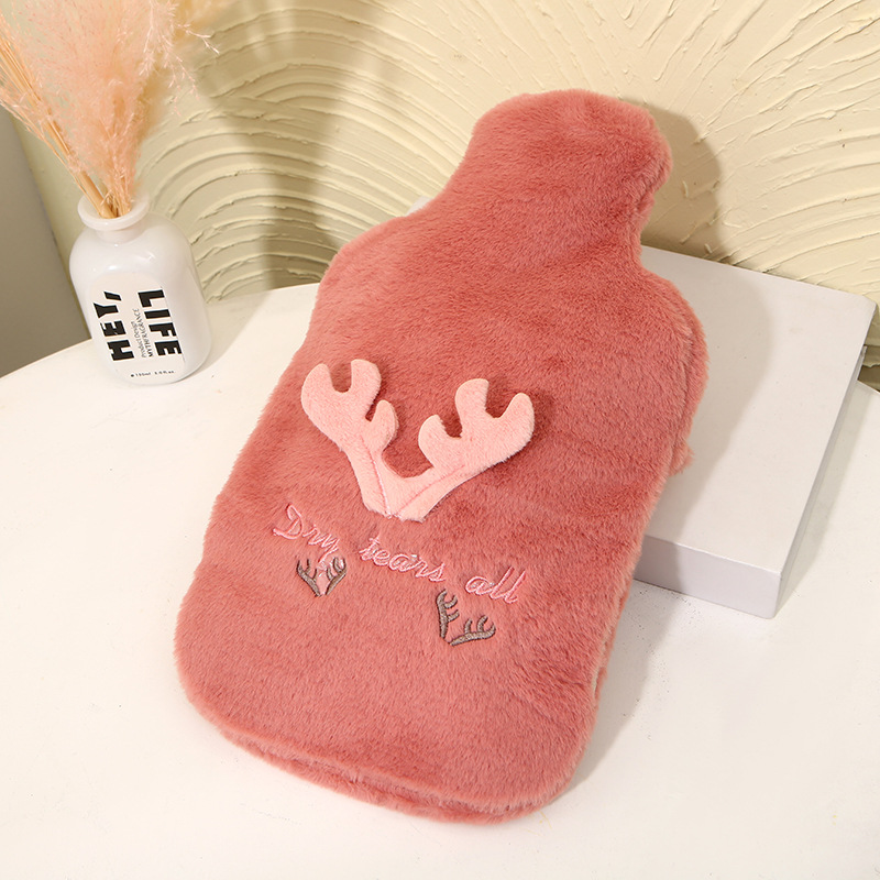 跨境批发防爆热水袋注水式学生暖手宝毛绒卡通鹿角便携式可拆洗