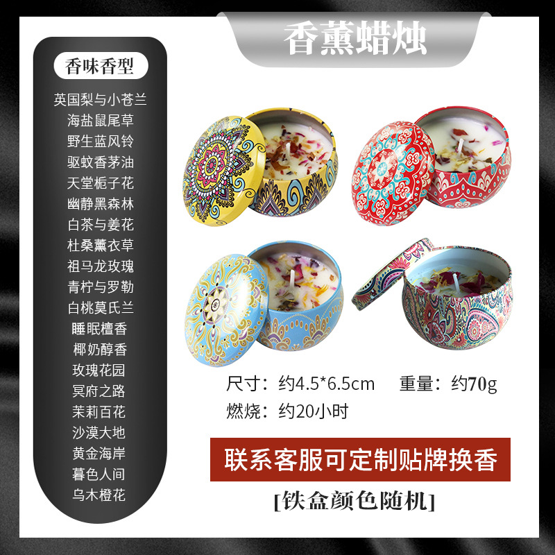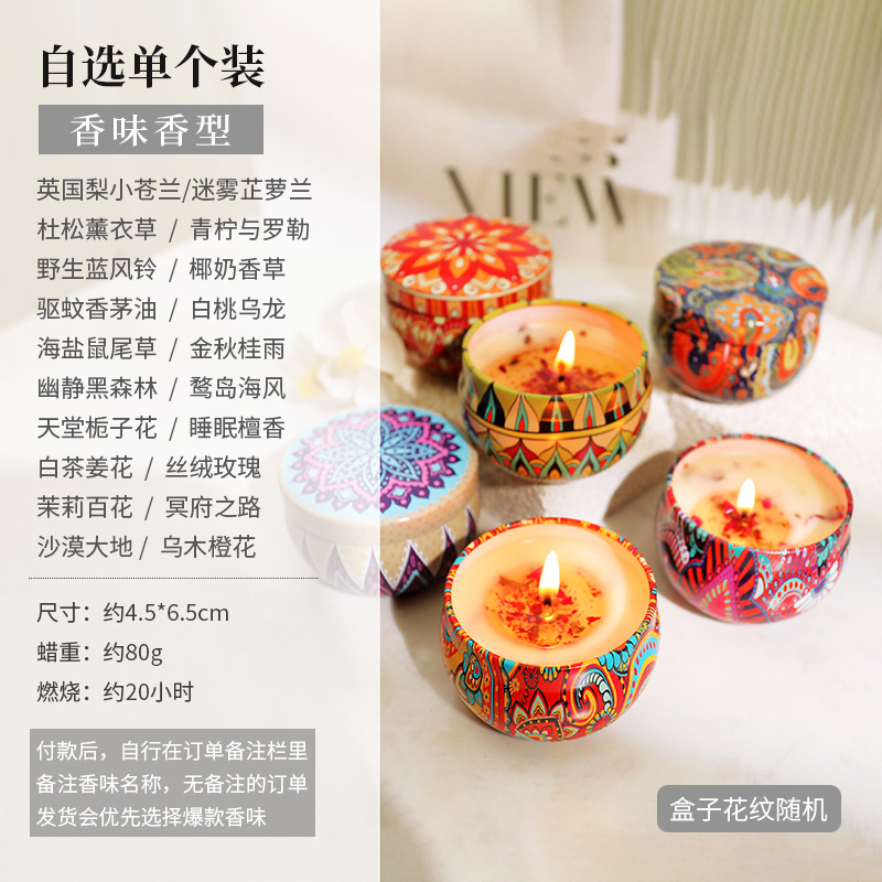 民族风铁盒香薰蜡烛批发卧室精油熏香助睡眠香氛蜡烛礼物伴手礼盒