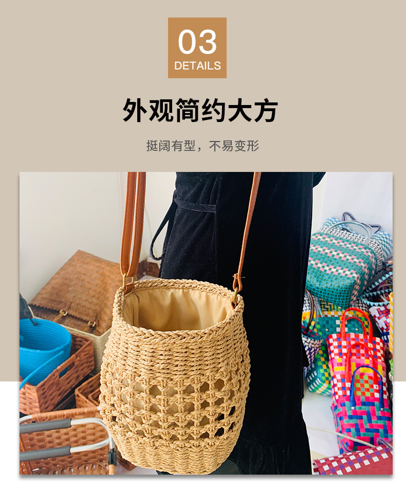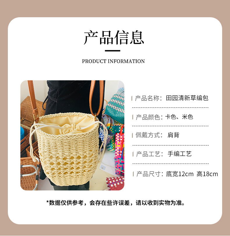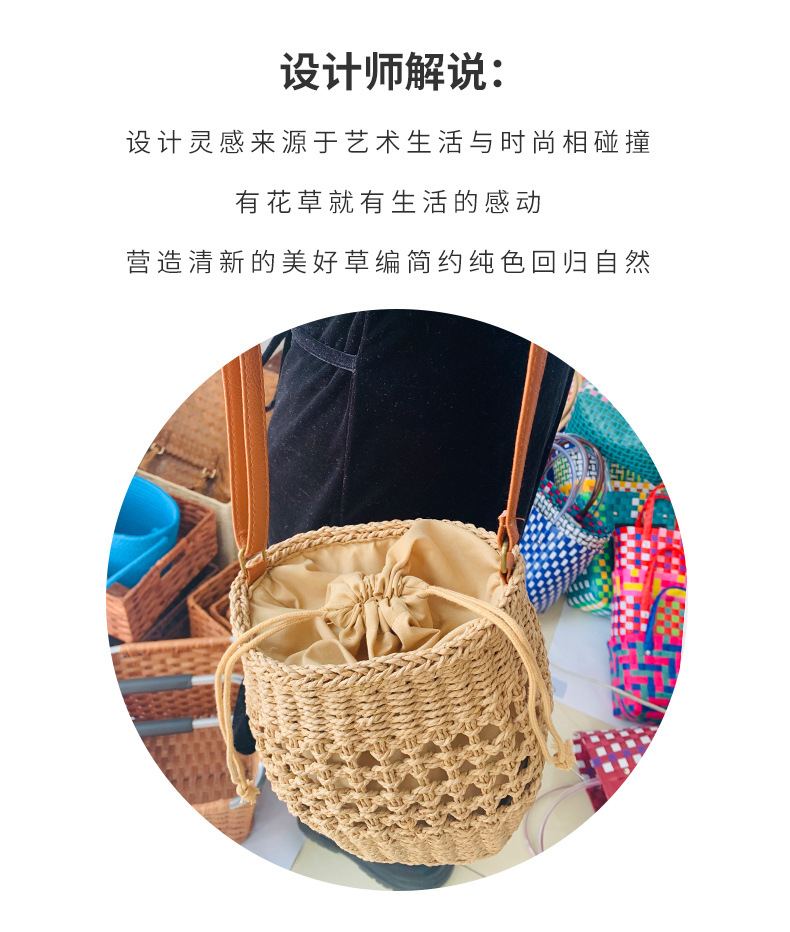 厂家批发 新款单肩斜挎手工编织包时尚ins水桶包度假休闲沙滩女包