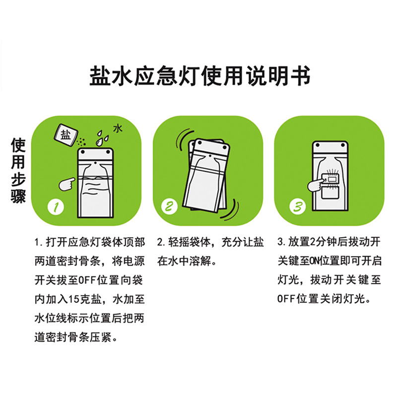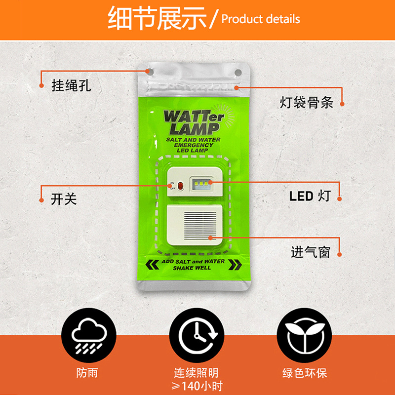 跨境野营户外照明警示灯 便携式盐水灯露营LED免充电应急盐水袋灯