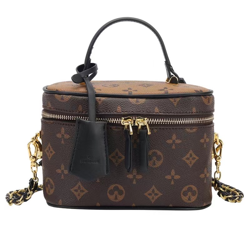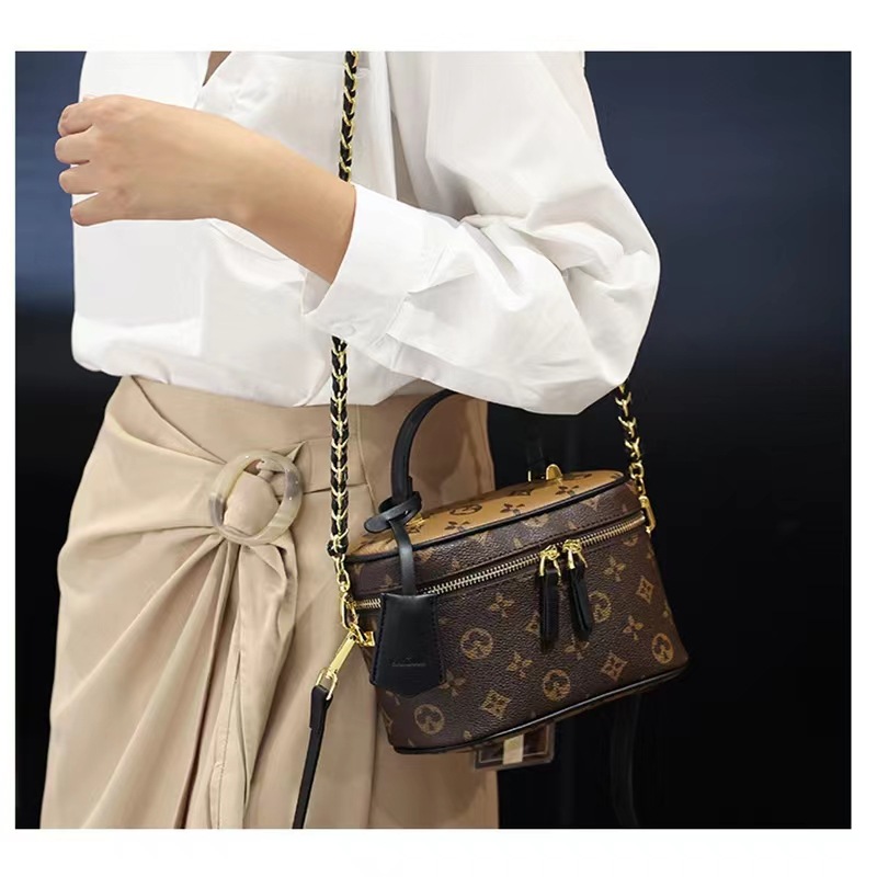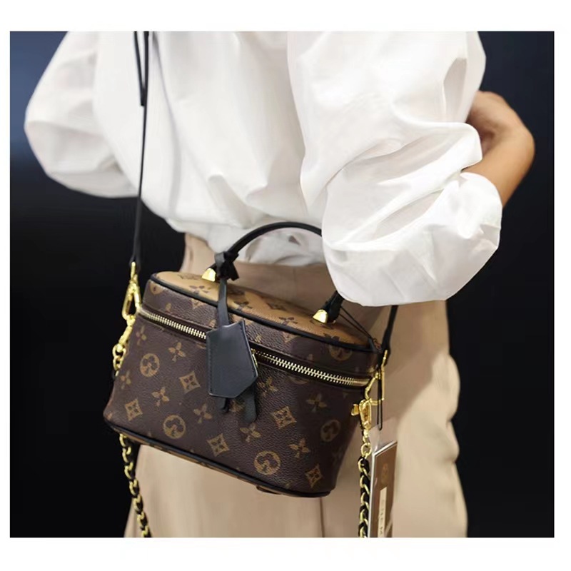 实物带LGOG高级感新款老花女包印花链条化妆包单肩斜跨中古盒子包
