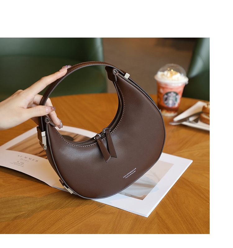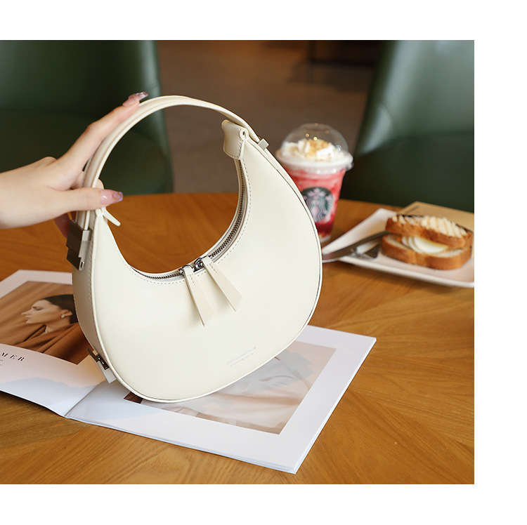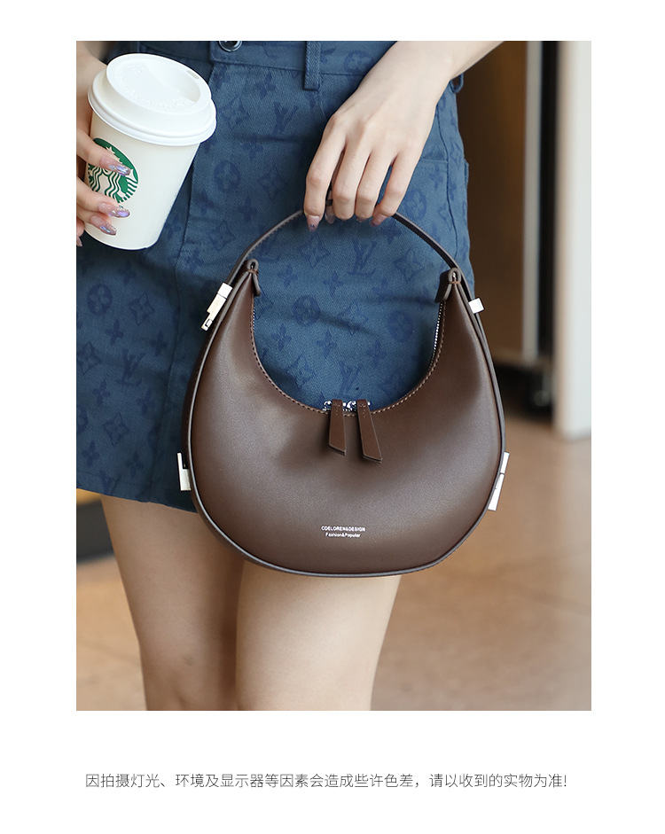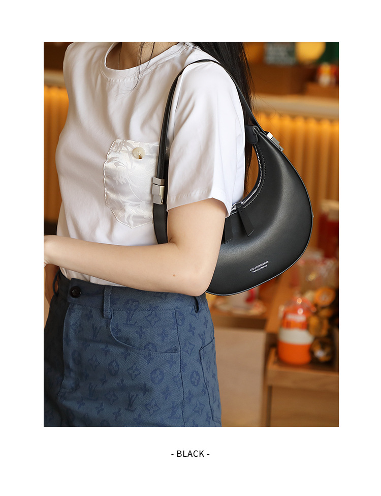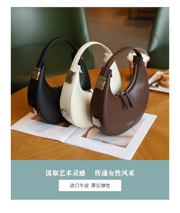 2022新款韩国小众牛皮月牙包腋下包半圆月亮包单肩手提女包