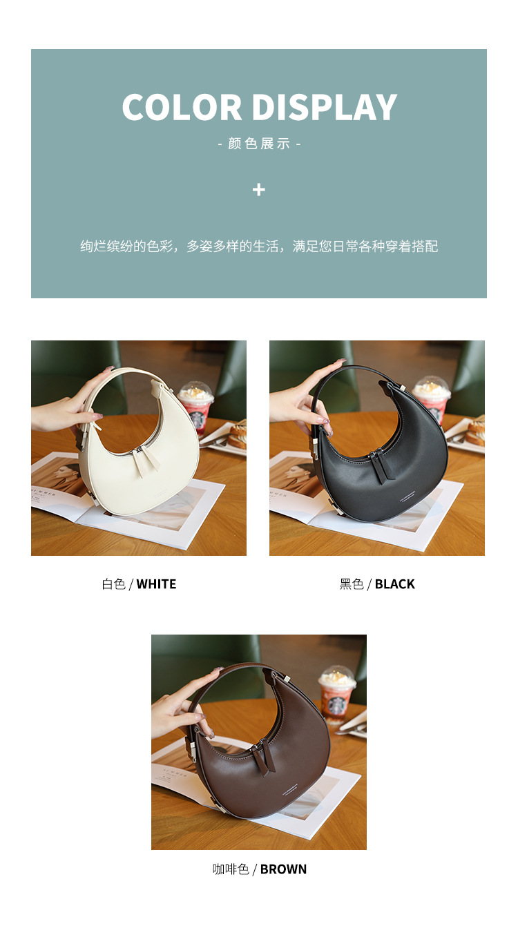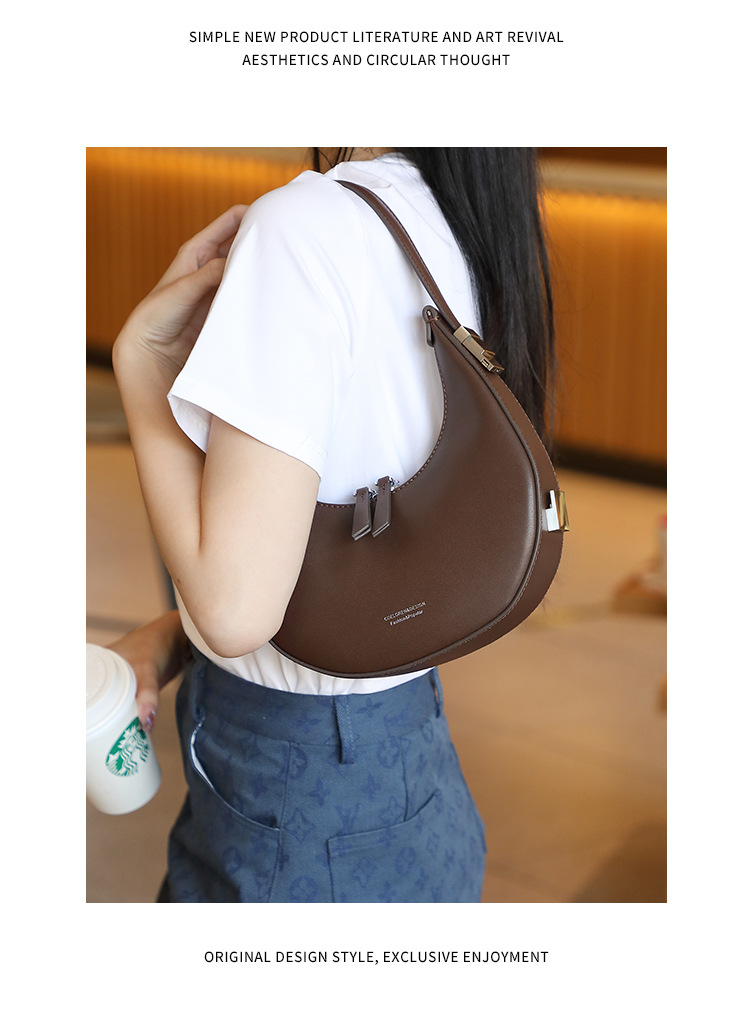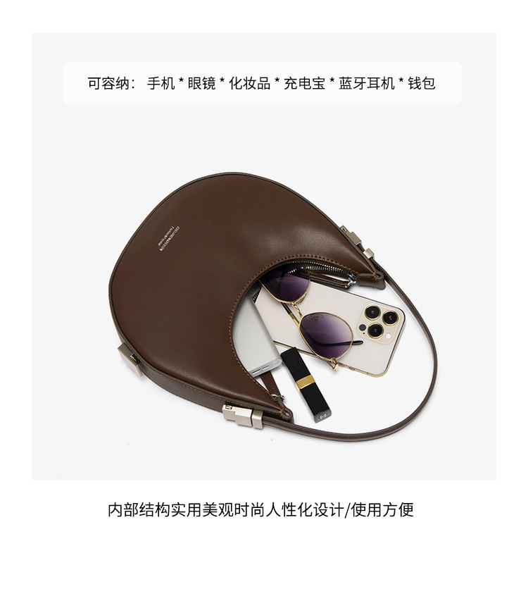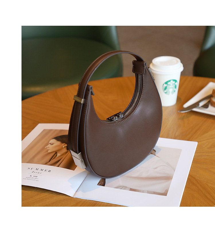 2022新款韩国小众牛皮月牙包腋下包半圆月亮包单肩手提女包