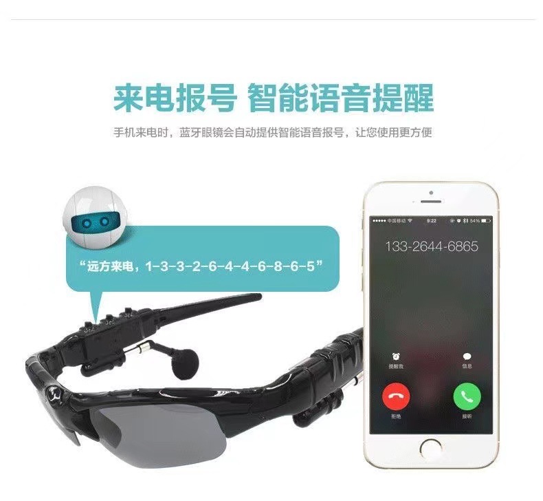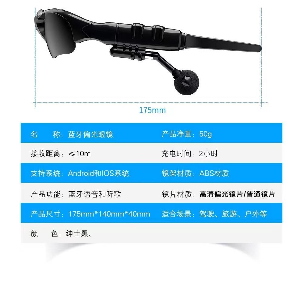 智能无线蓝牙眼镜耳机头戴式耳塞开车通话运动偏光太阳墨镜多功能
