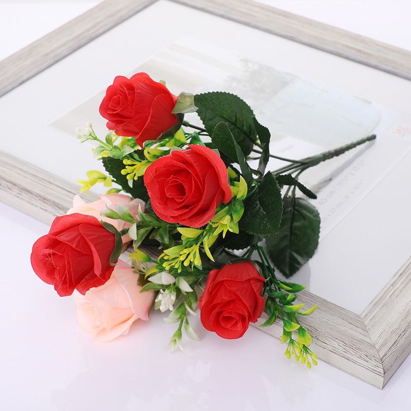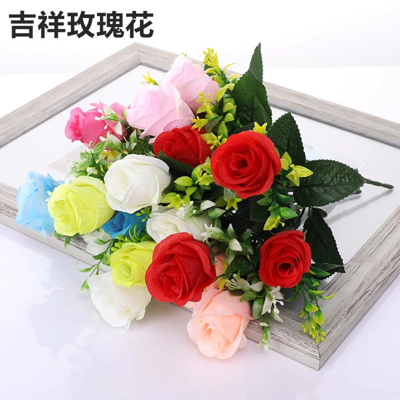 单支假花仿真花束塑料花装饰摆设小把花束布艺插花室外绢布花