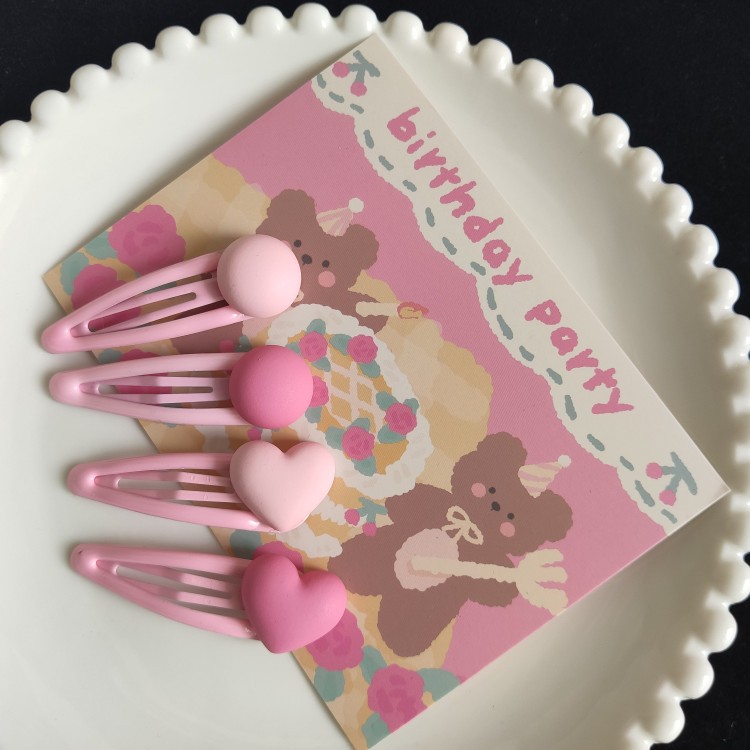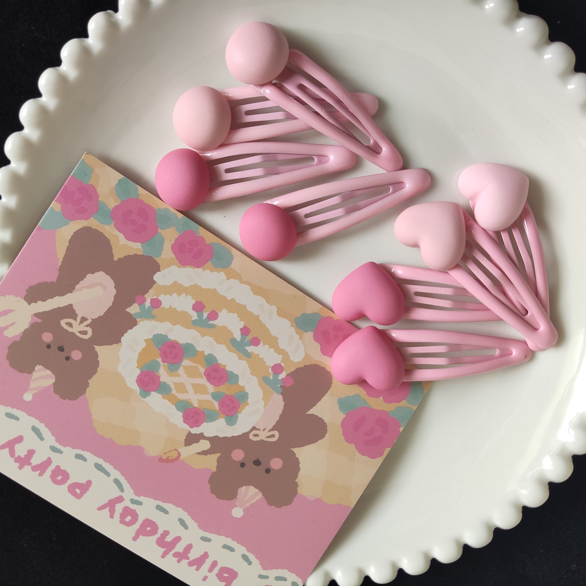 粉色可爱甜美少女心bb夹磨砂爱心小圆球小短夹ins风发卡夹子饰品