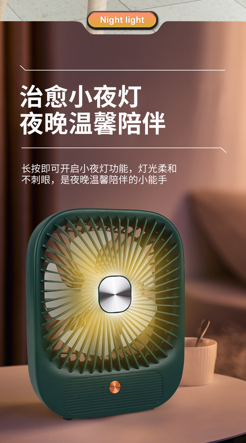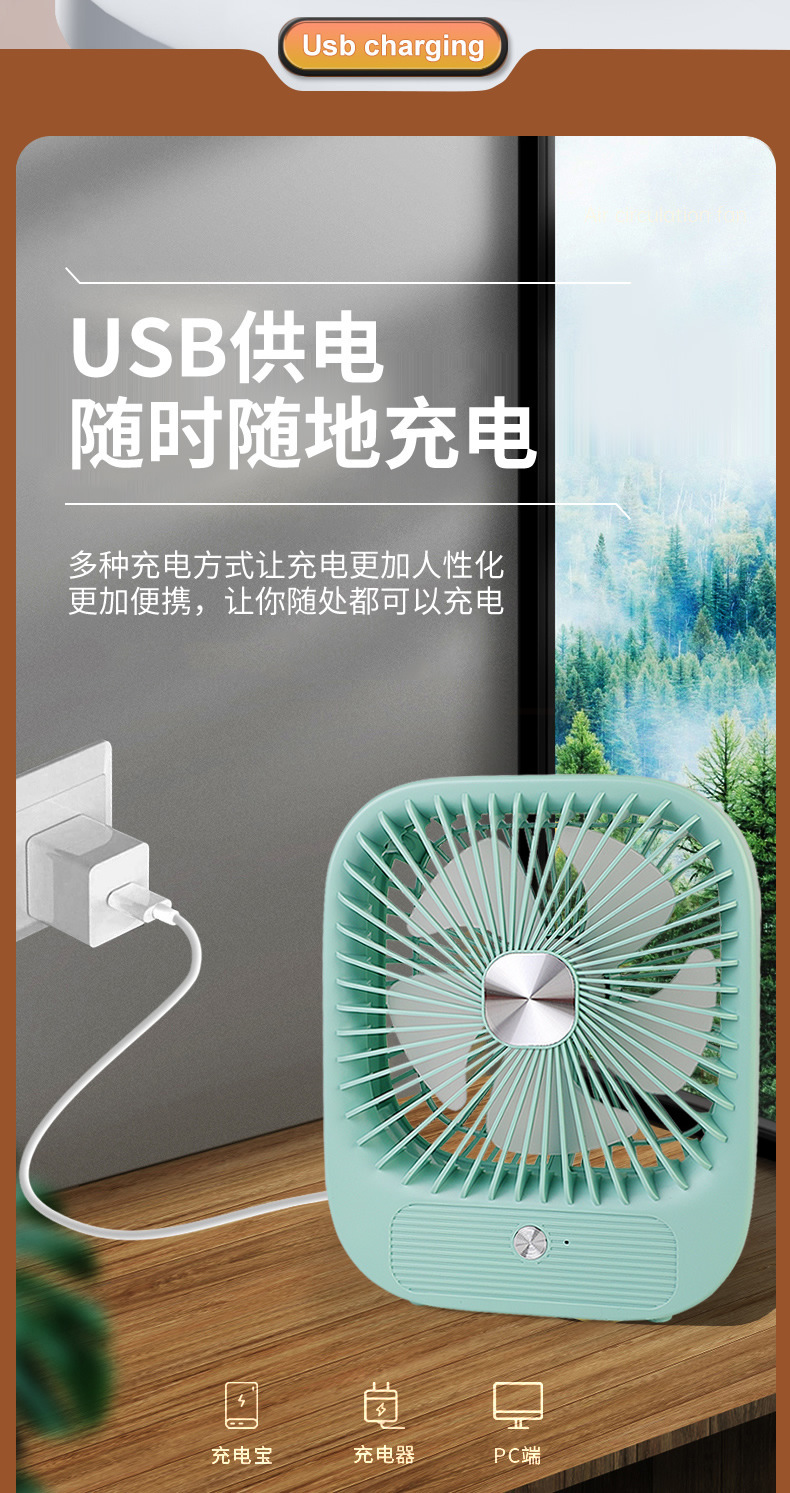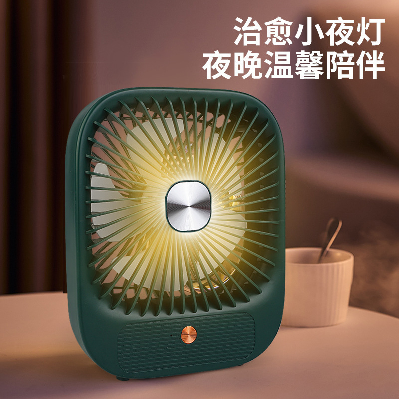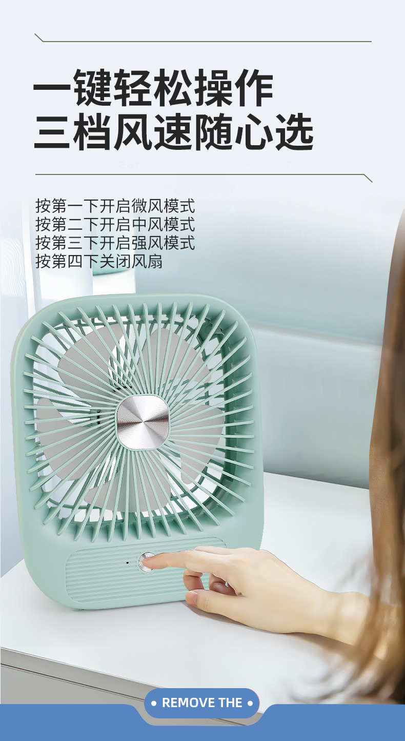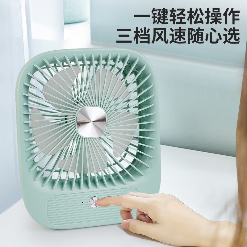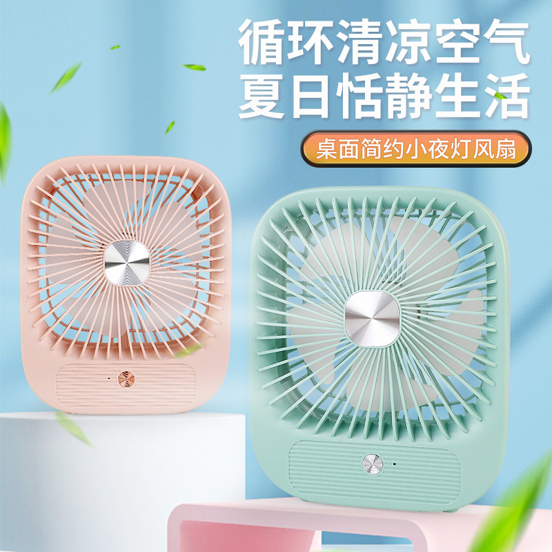 简约台式方形小风扇 USB充电三档电风扇 宿舍床头充电灯光小风扇