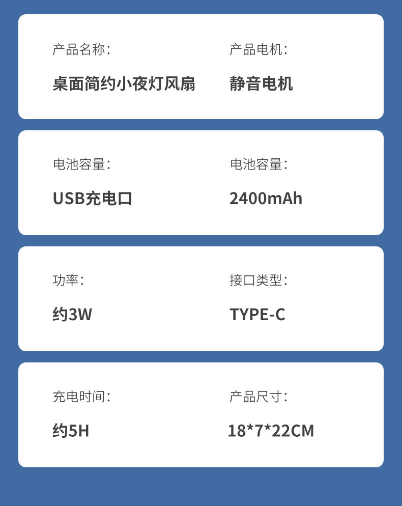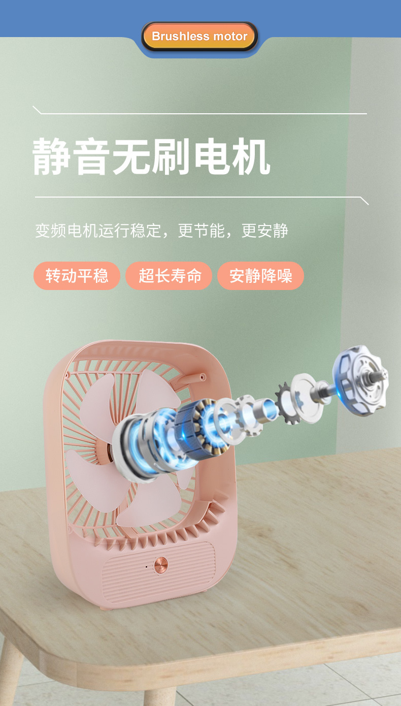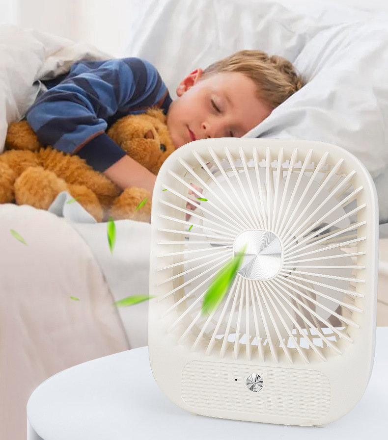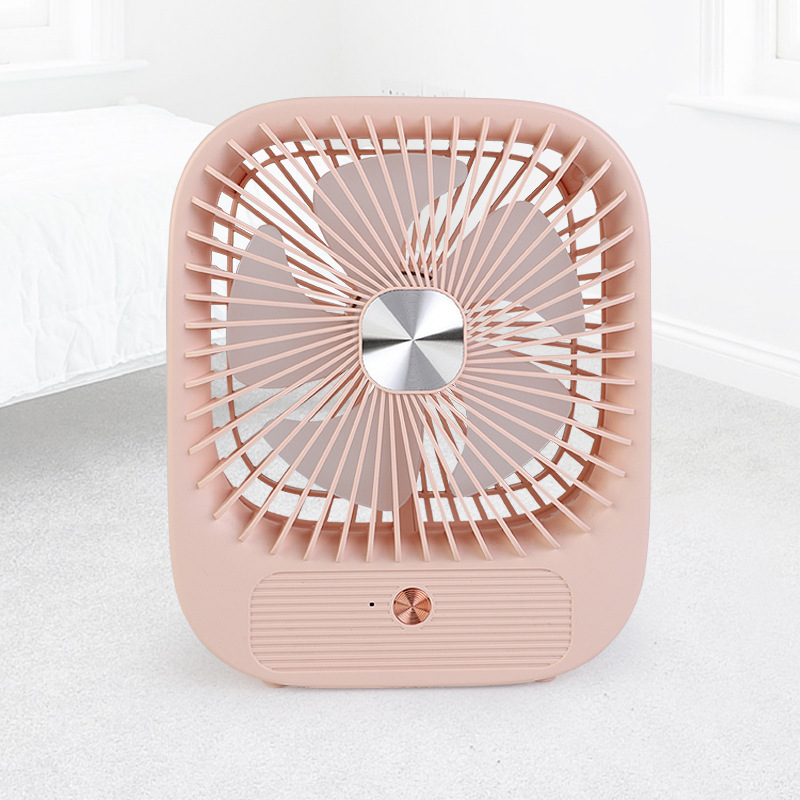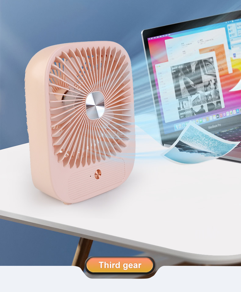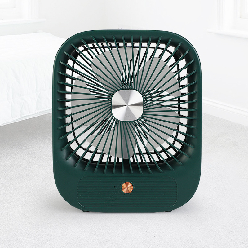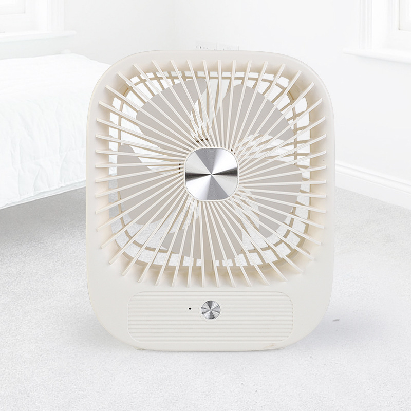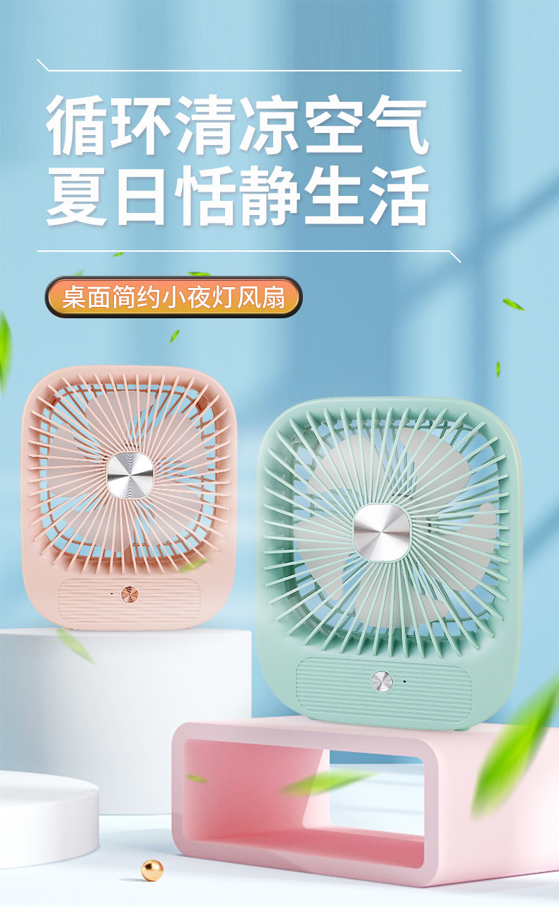 简约台式方形小风扇 USB充电三档电风扇 宿舍床头充电灯光小风扇