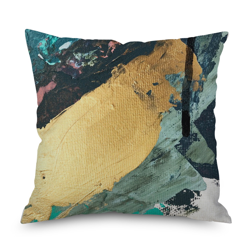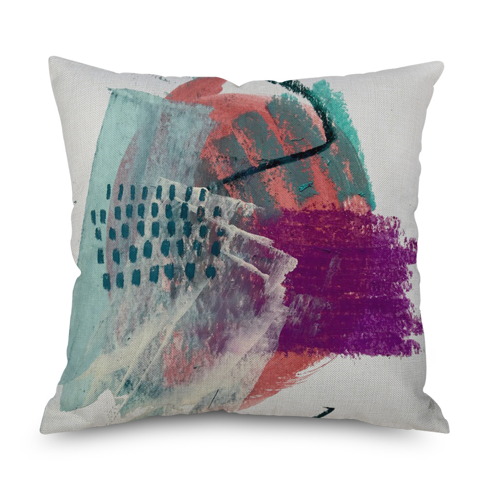 时尚亚麻抱枕套水彩靠垫艺术喷墨靠枕创意简约风汽车沙发靠垫套