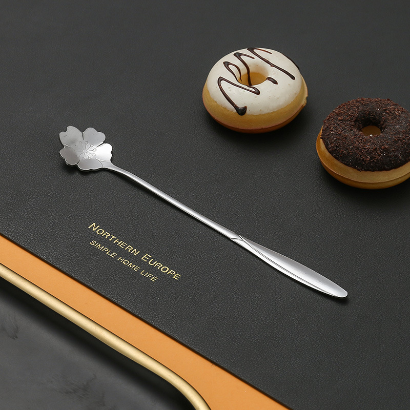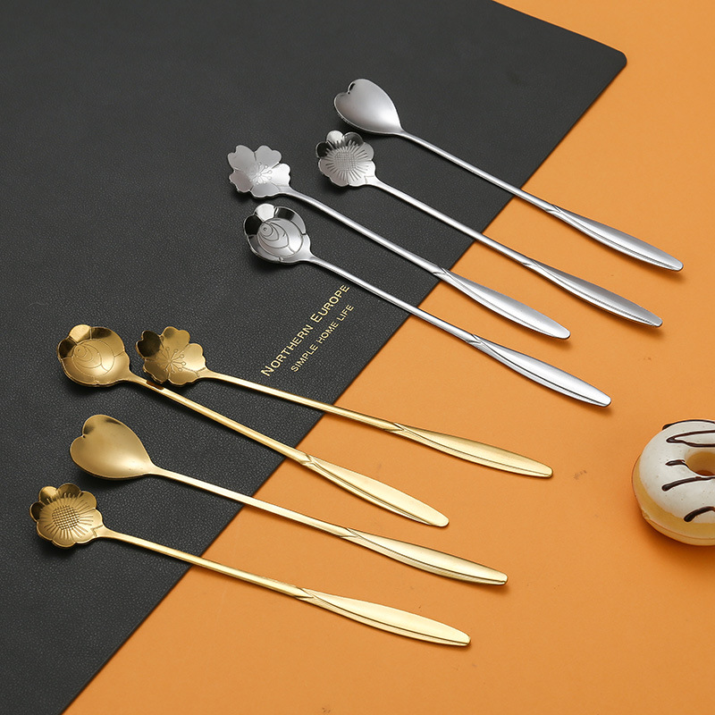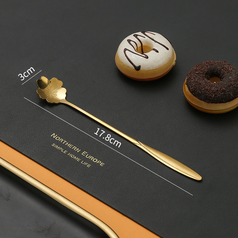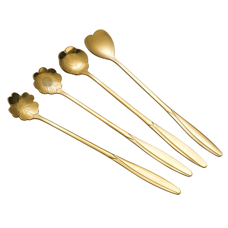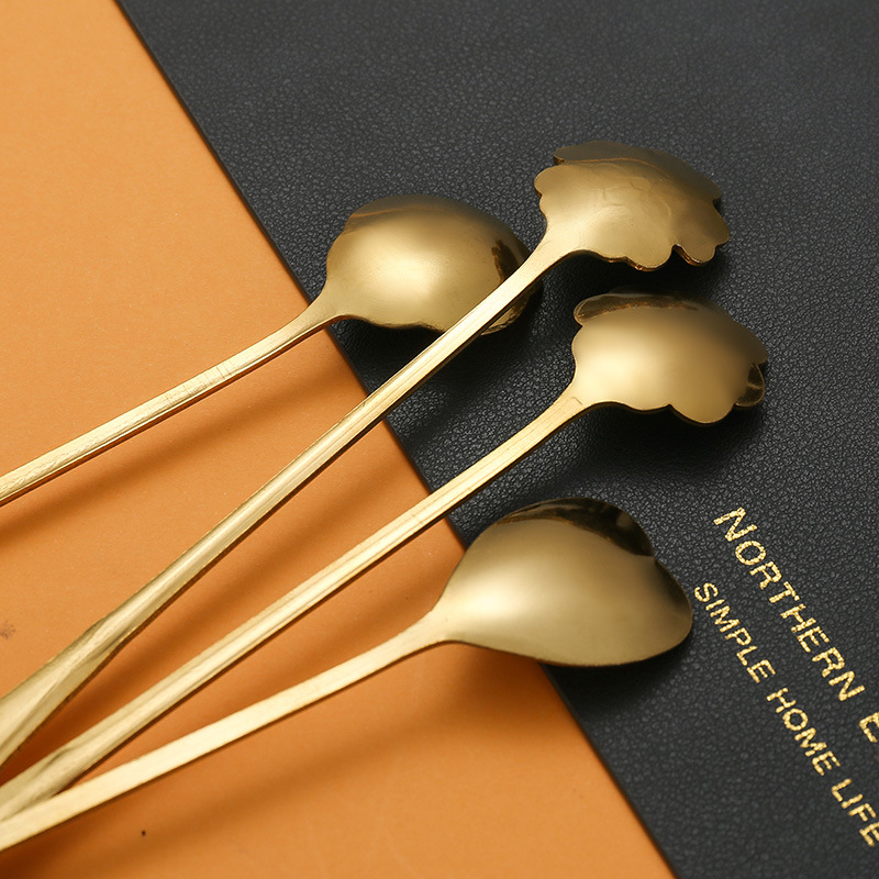 不锈钢樱花勺子长柄心形勺创意花瓣甜品勺金色咖啡搅拌勺