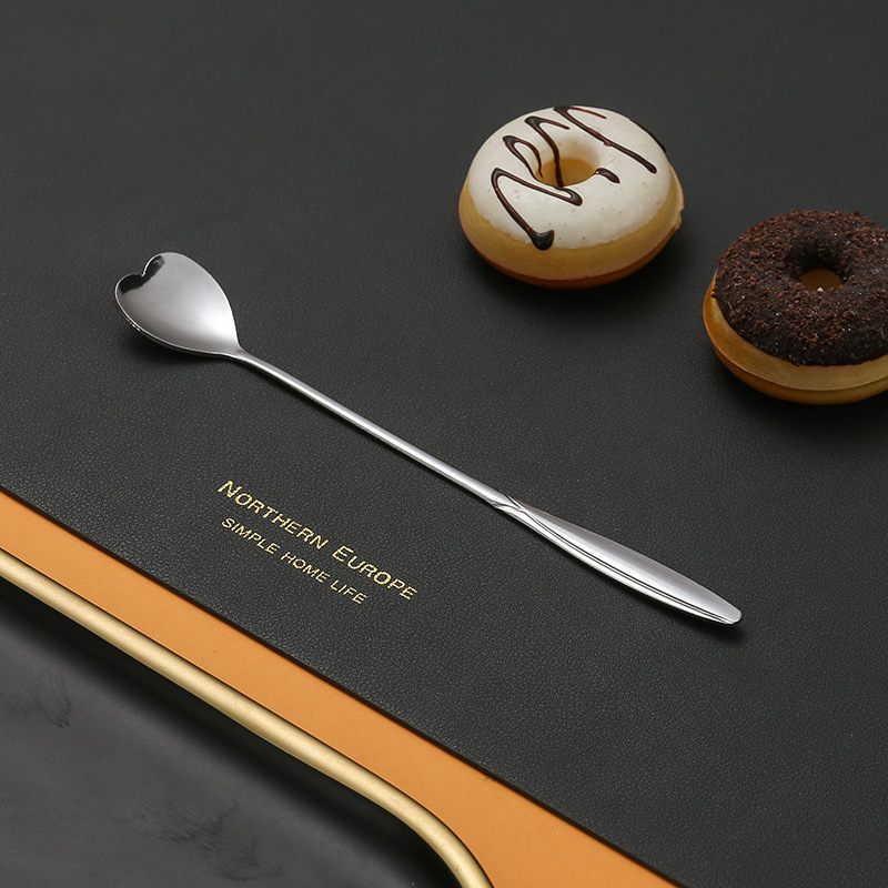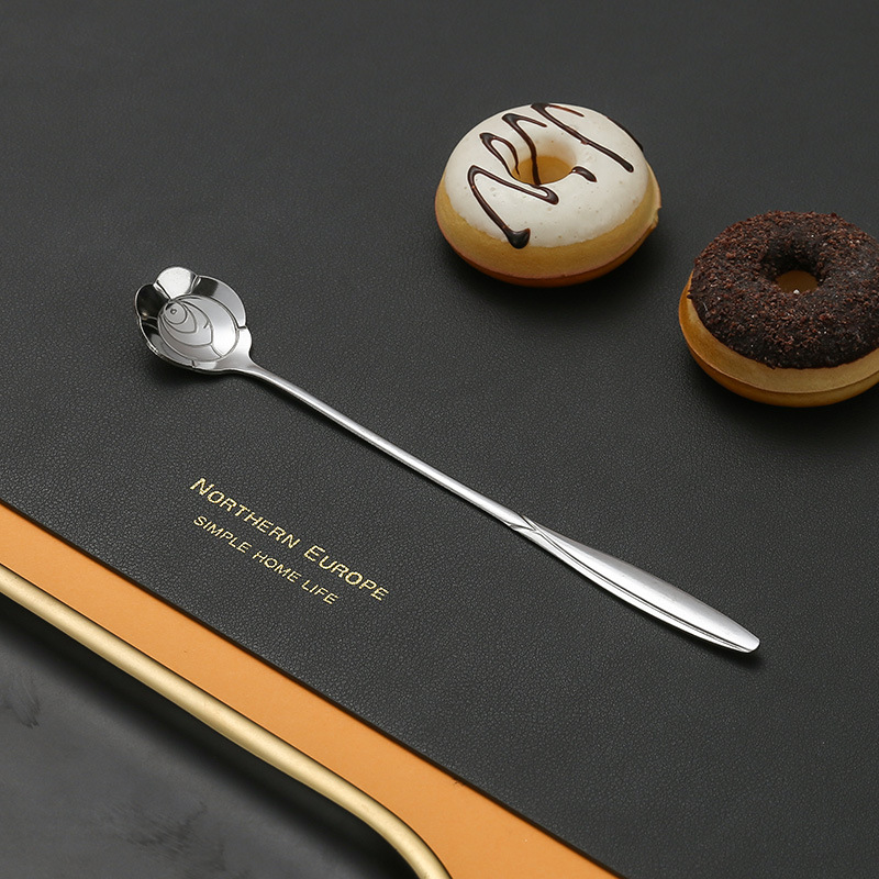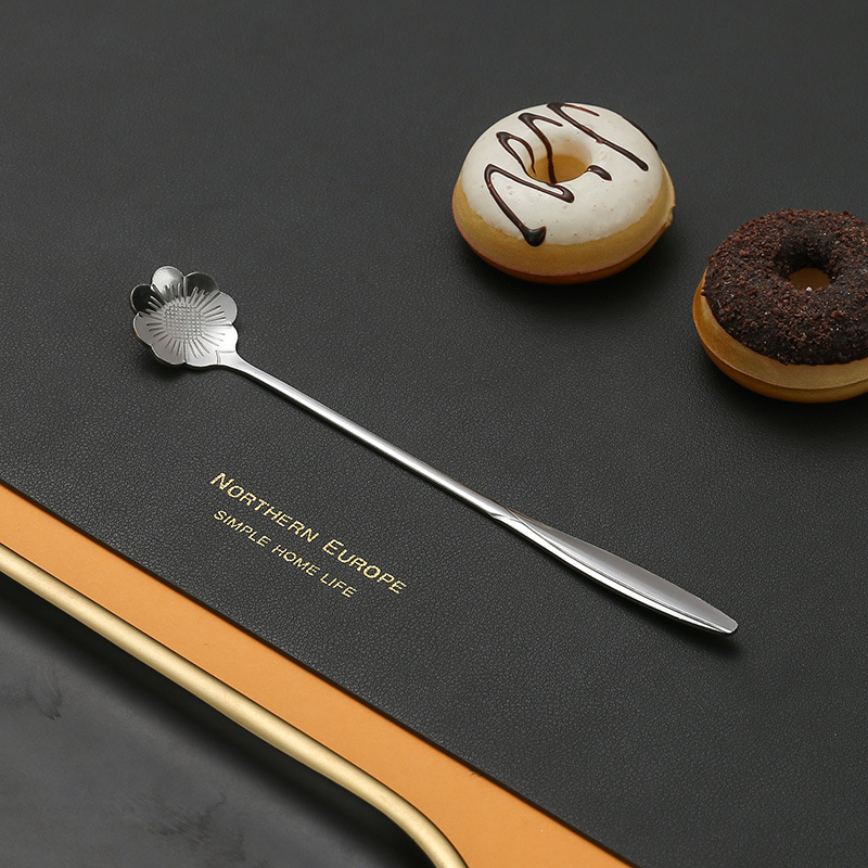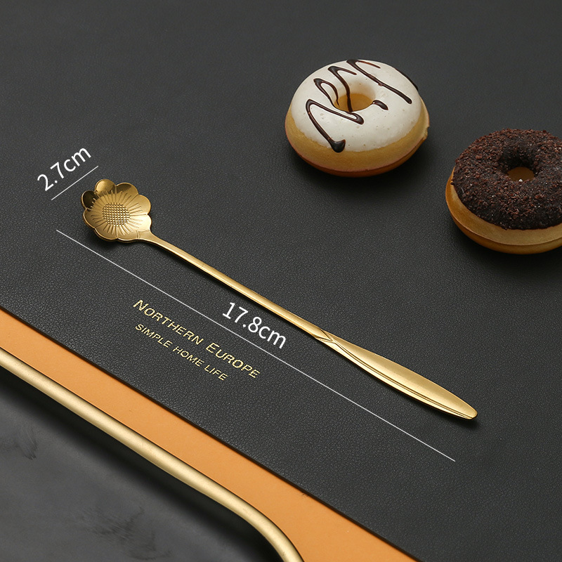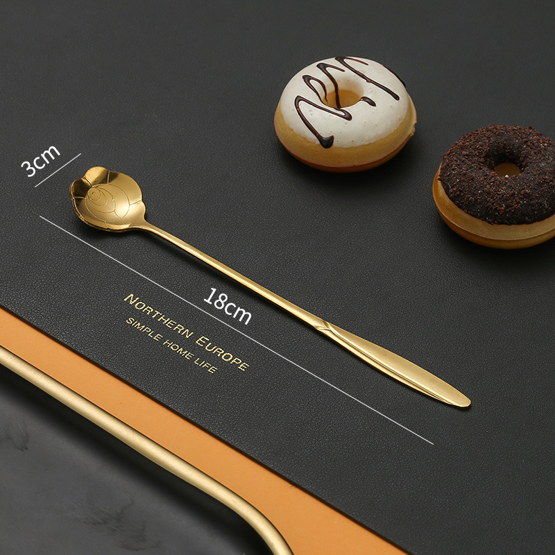 不锈钢樱花勺子长柄心形勺创意花瓣甜品勺金色咖啡搅拌勺