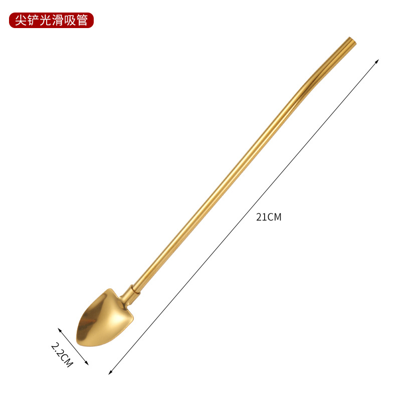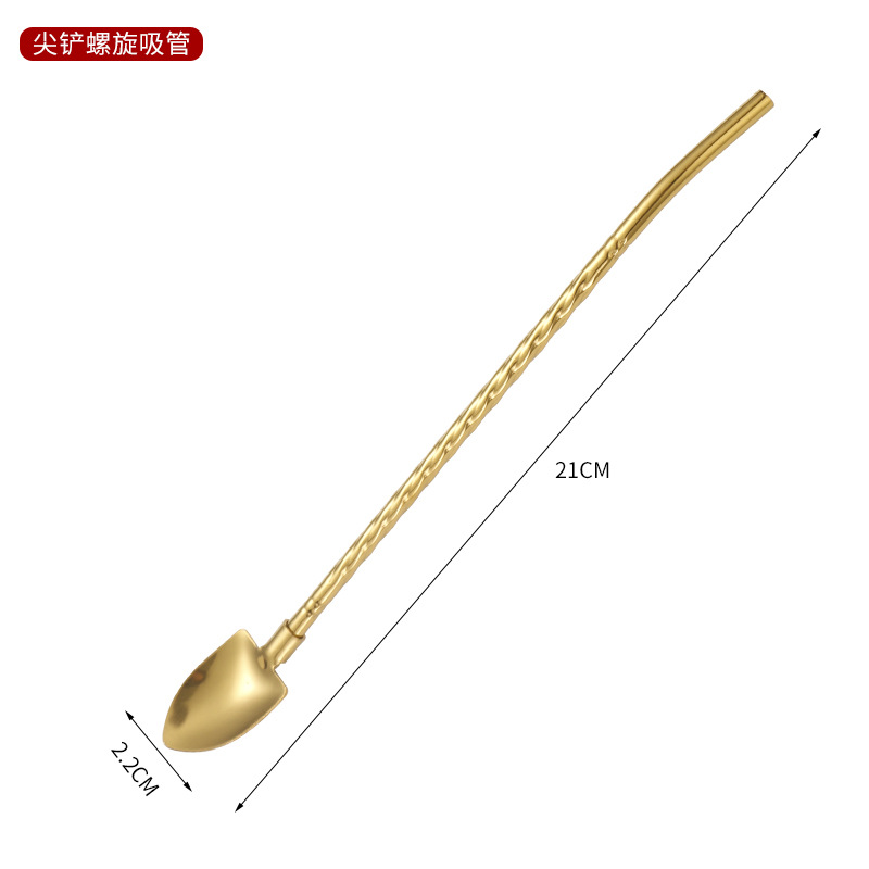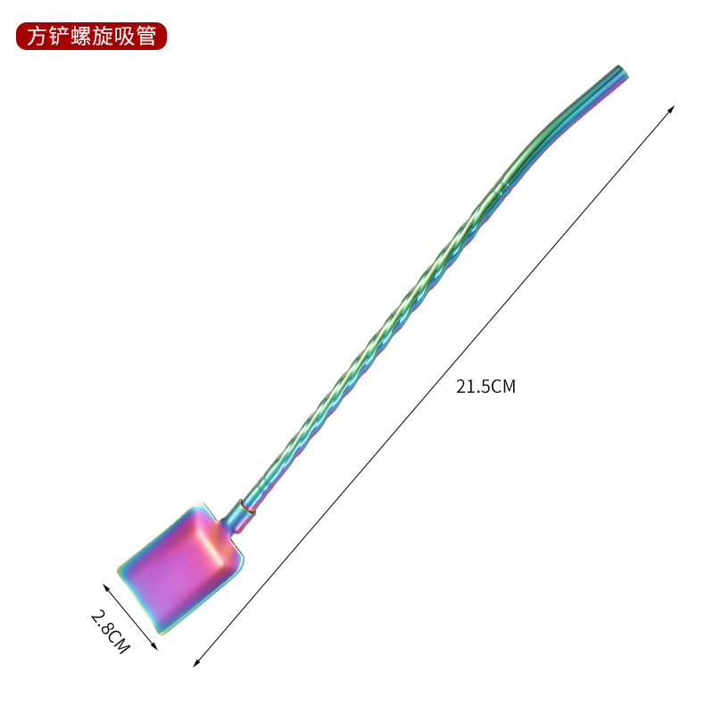 304不锈钢吸管勺 创意螺纹西瓜勺铁锹吸管勺饮料咖啡搅拌勺甜品勺