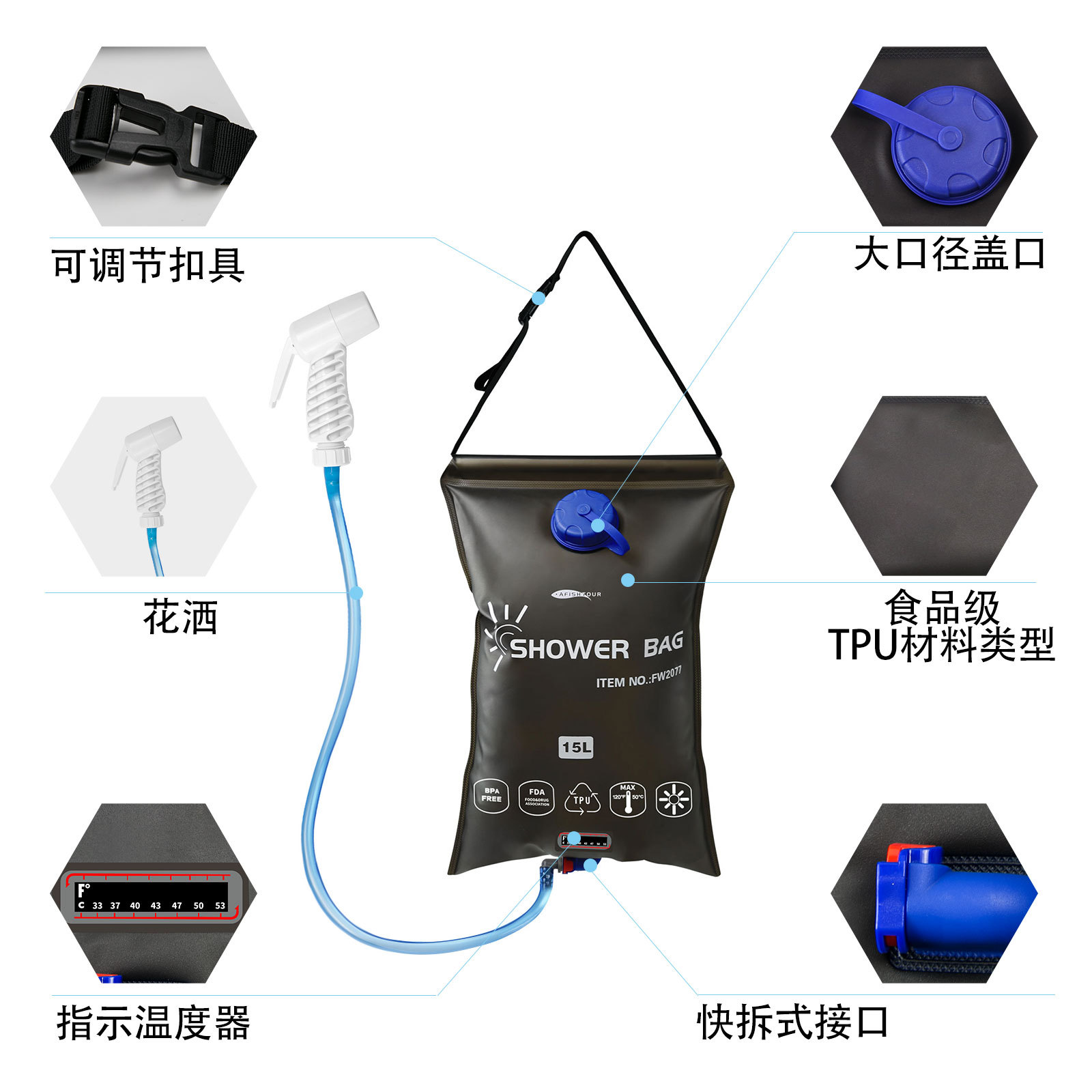 新款亚马逊热销淋浴袋晒水袋太阳能沐浴袋洗澡袋夏季洗澡神器冲凉
