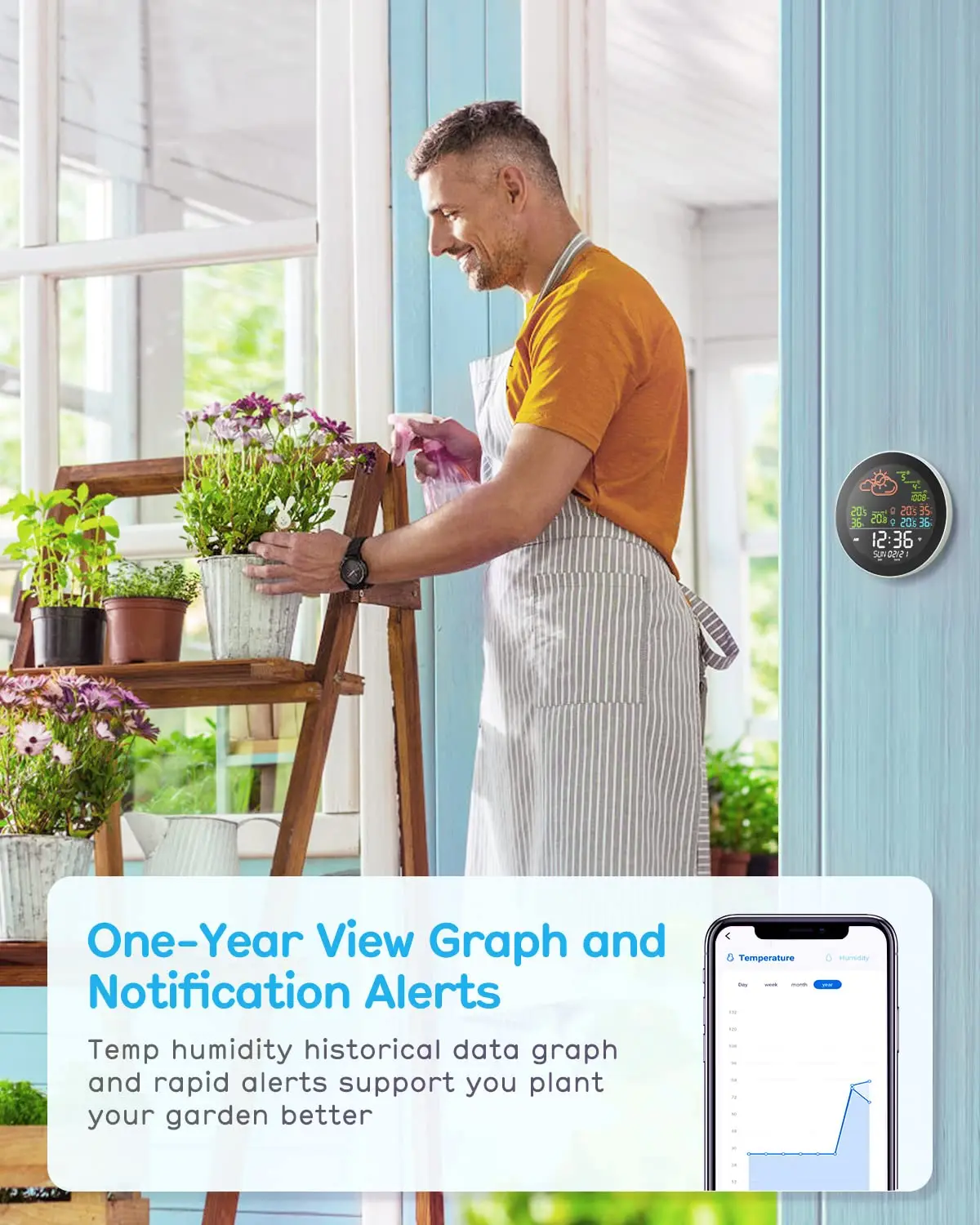 还可以通过手机进行配置和控制,并检查室内/室外的天气数据