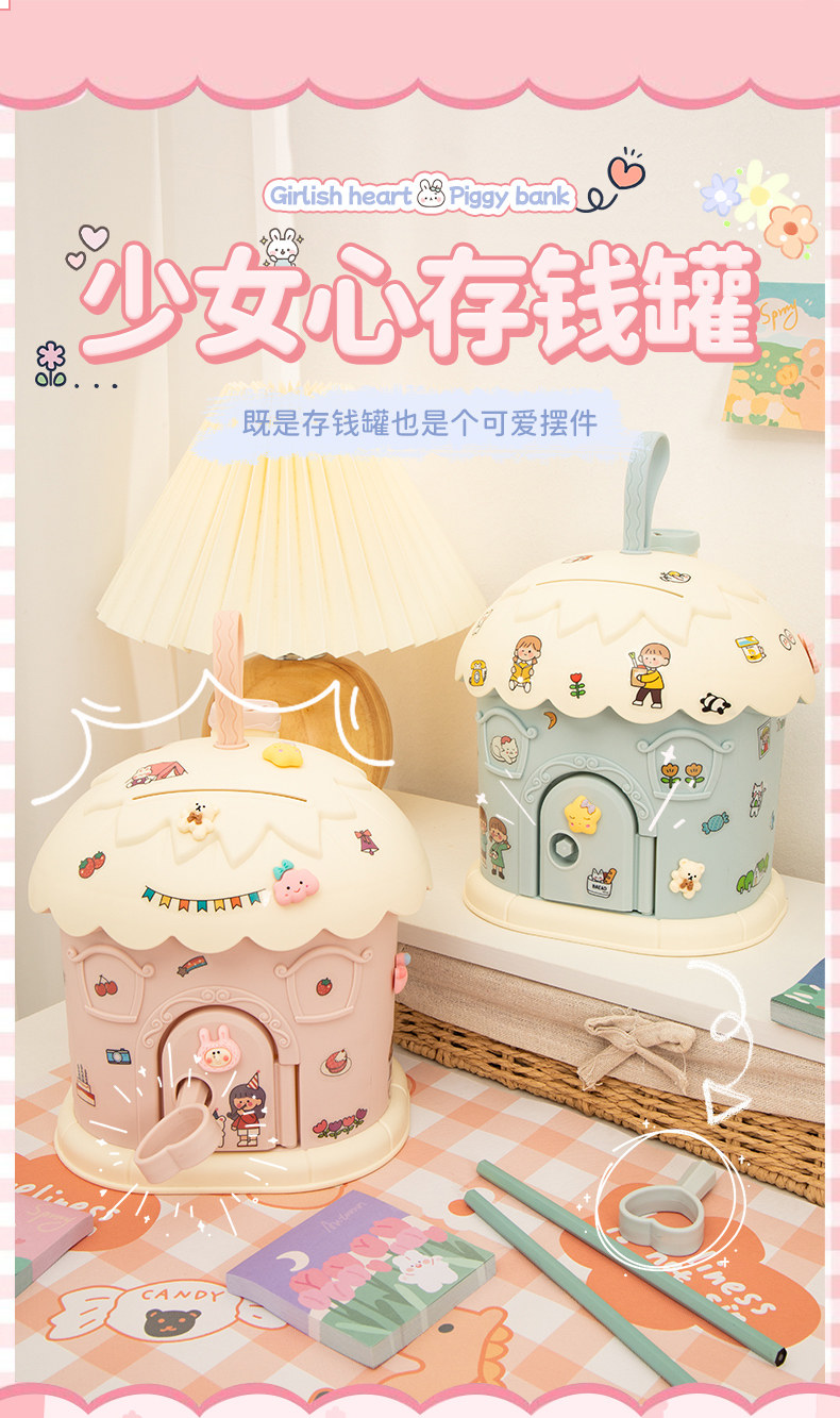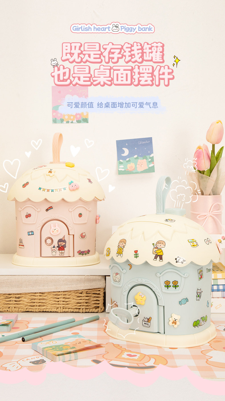 儿童存钱罐ins高颜值小房子可存可取带锁储蓄罐男女孩少女心礼物