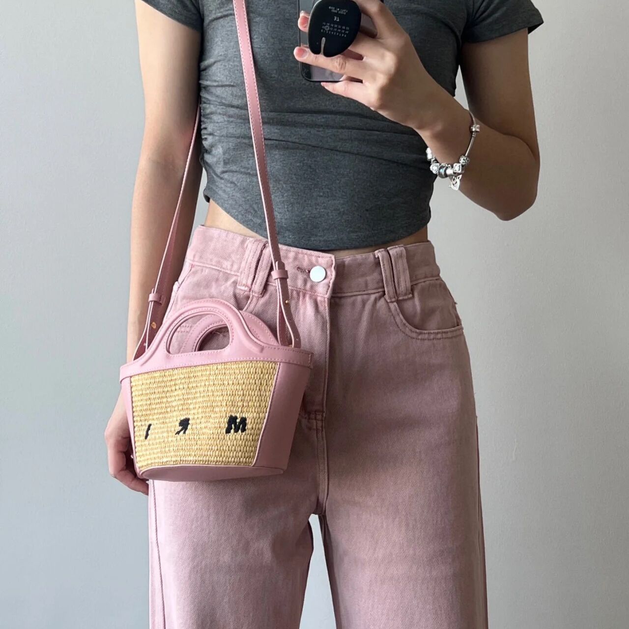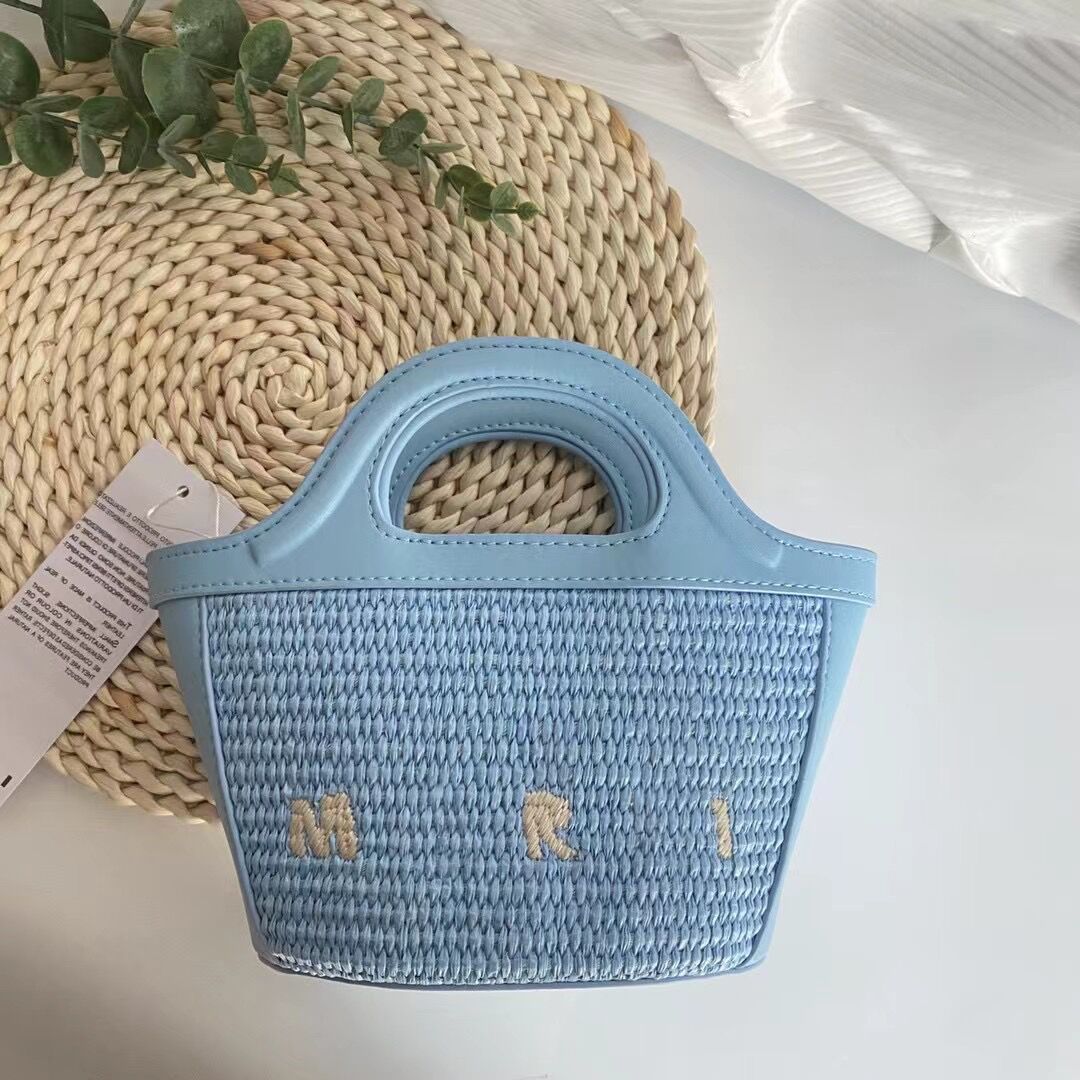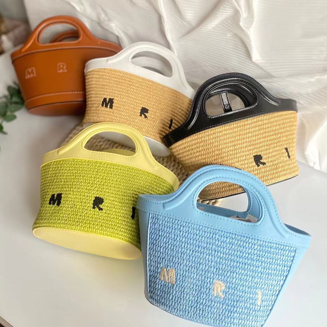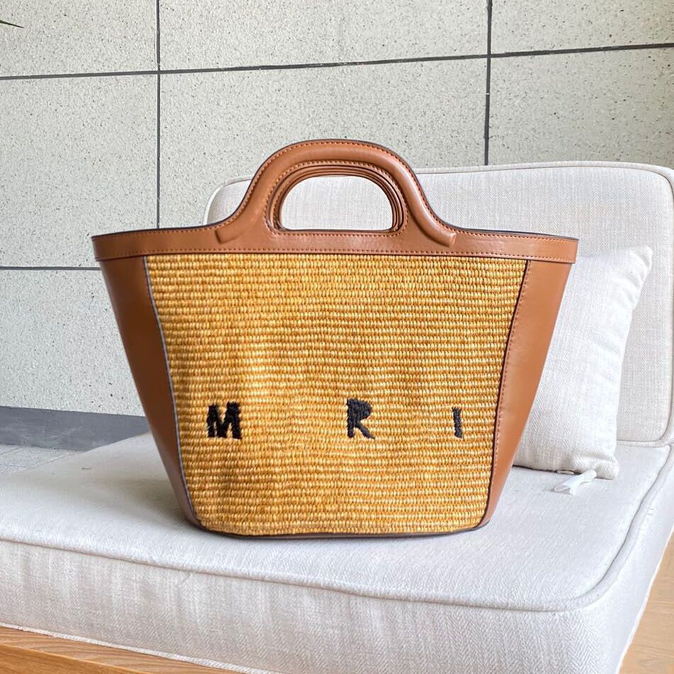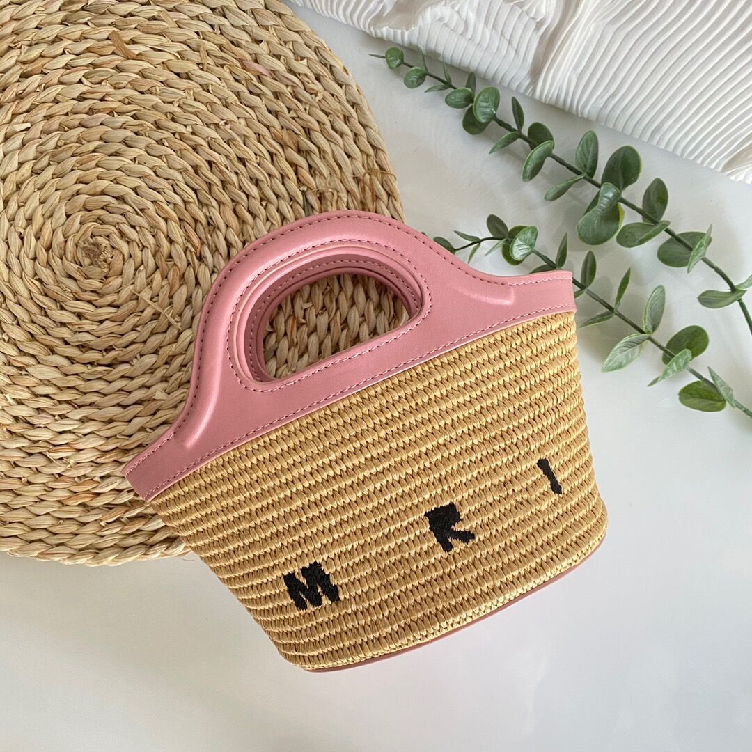 2023夏新款玛尼编织包草编菜篮子沙滩包百搭手提斜挎女包拼接牛皮