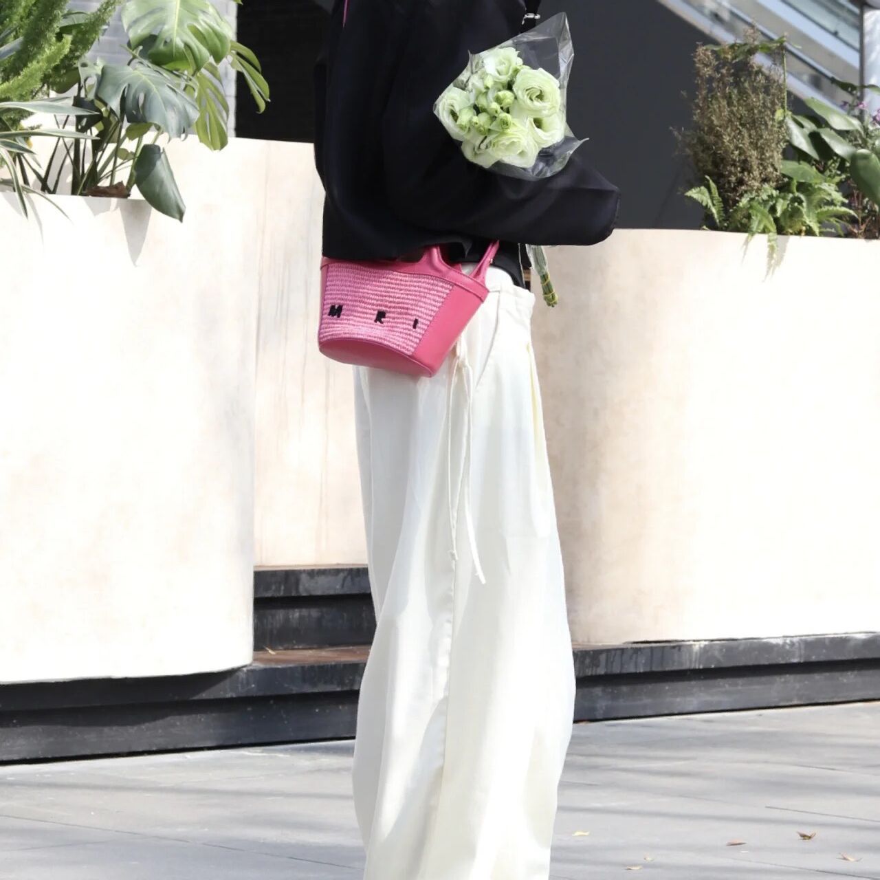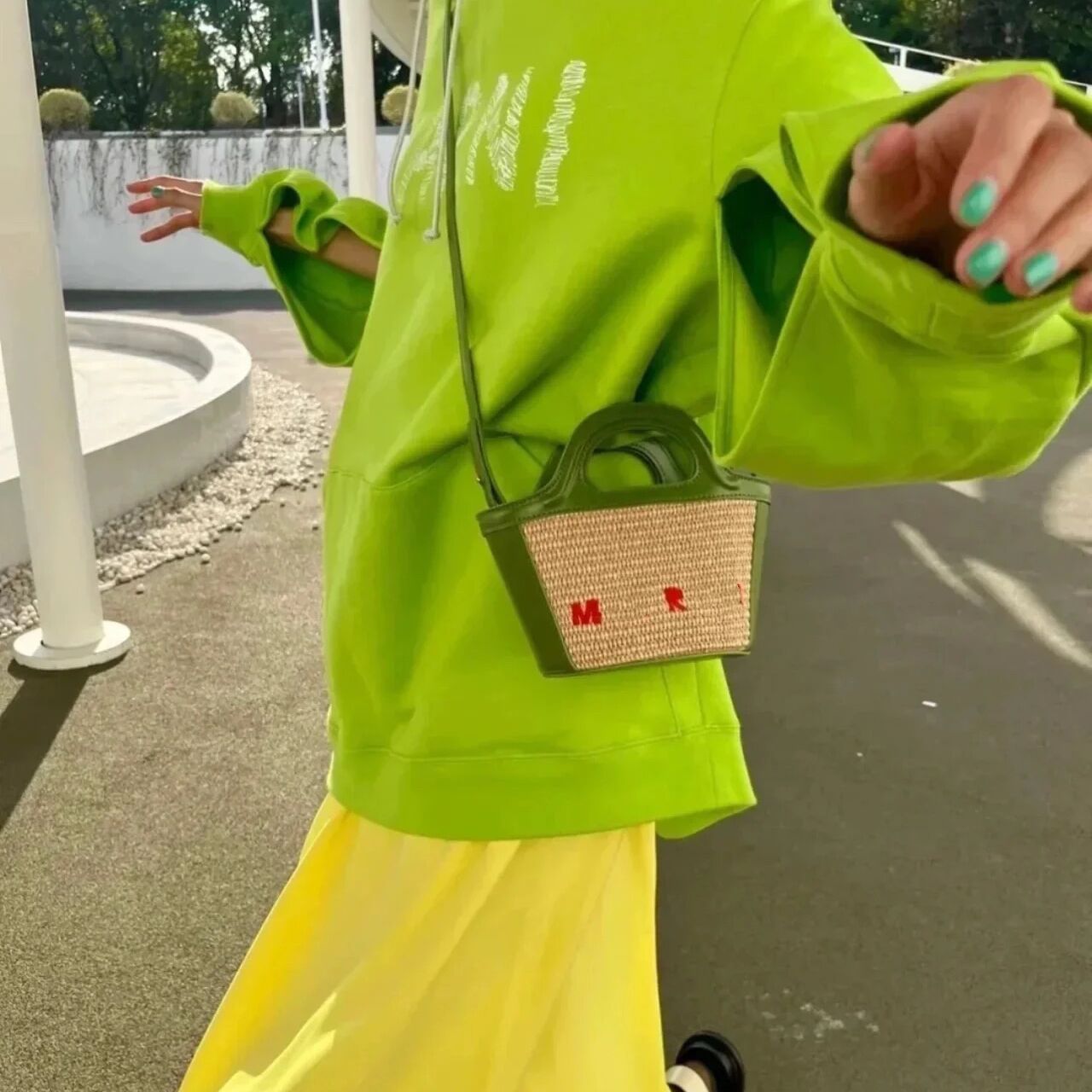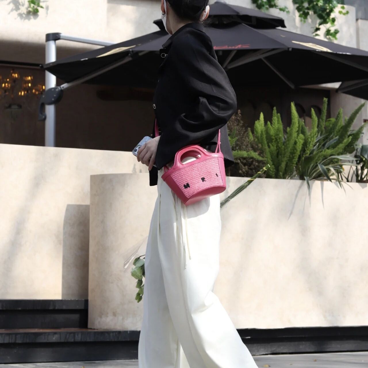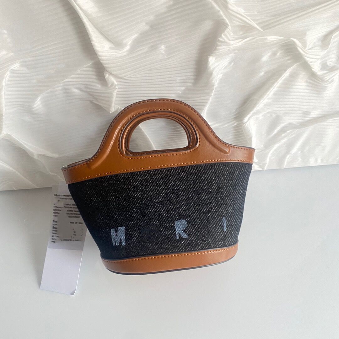 2023夏新款玛尼编织包草编菜篮子沙滩包百搭手提斜挎女包拼接牛皮