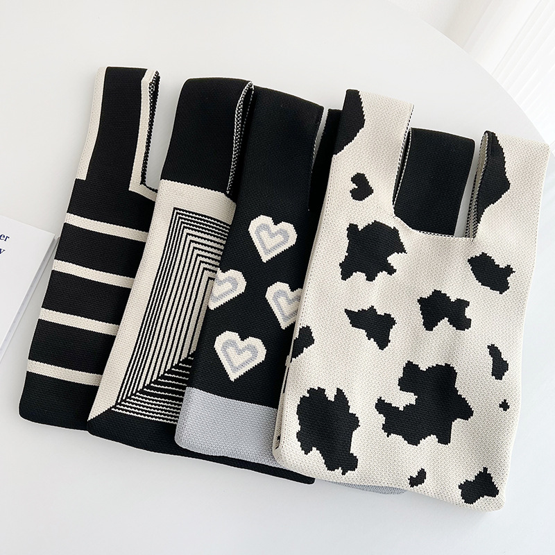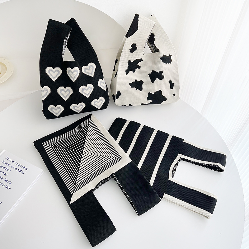 背心包马甲包休闲针织手拎包手提包包棋盘格撞色韩国轻奢风手挽包